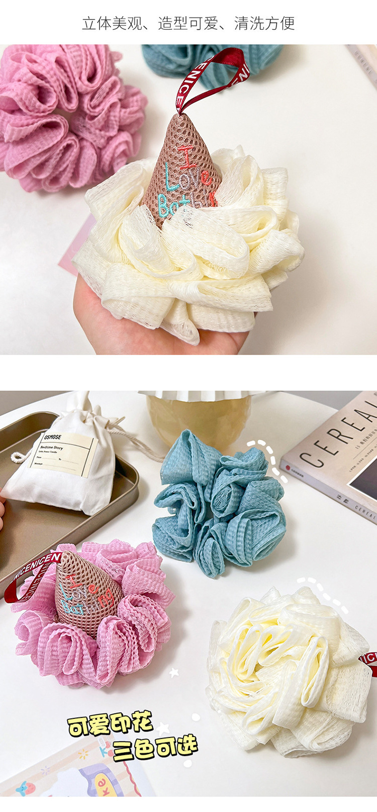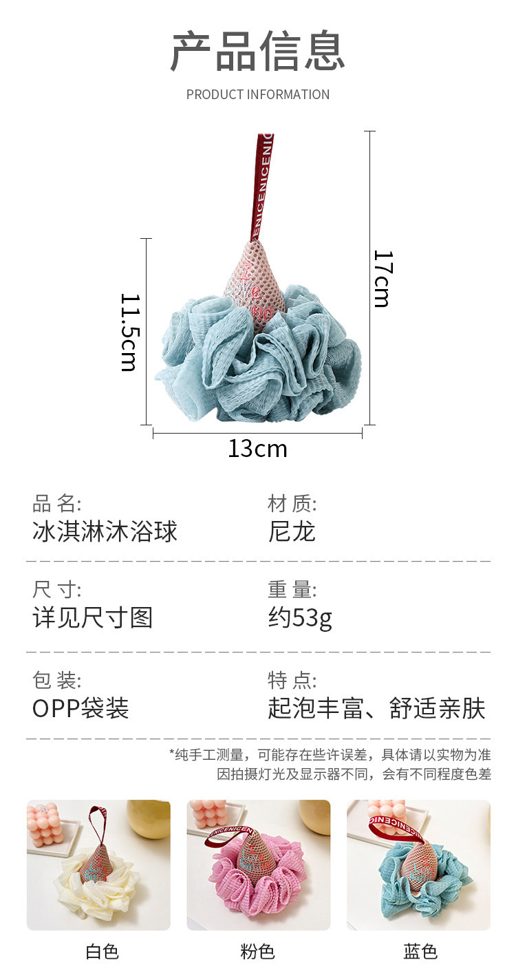 创意冰激凌浴球搓澡巾可爱柔软不散浴花球不散花耐用洗澡沐浴球