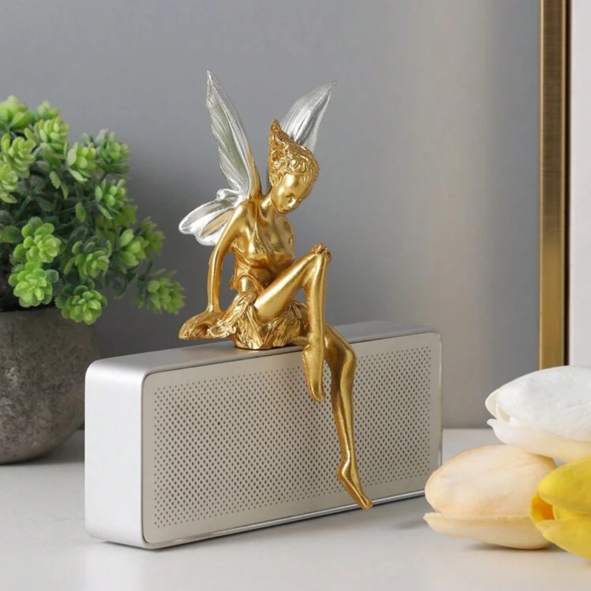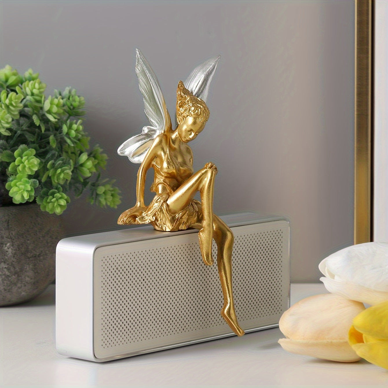 跨境爆款独立花仙子天使翅膀树脂工艺品摆件园林办公室居家装饰