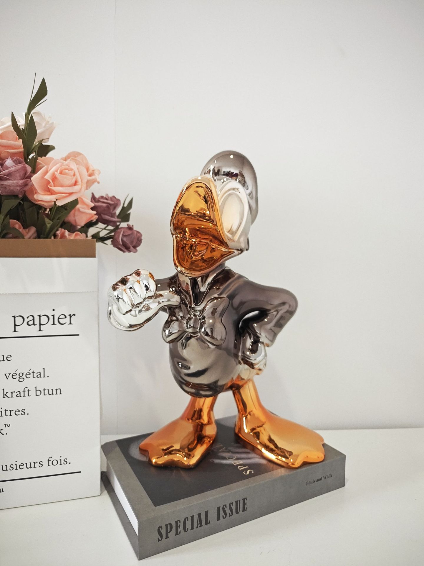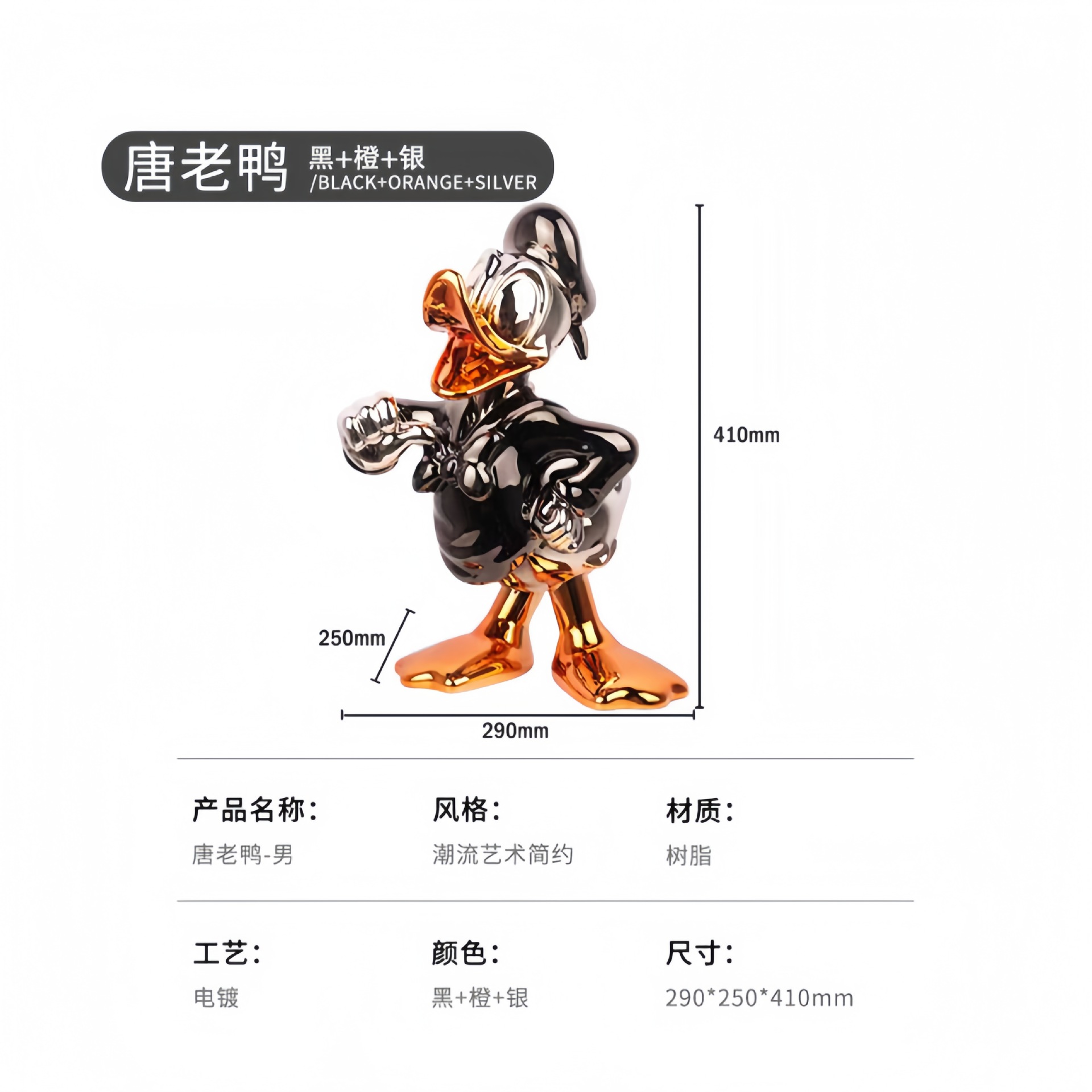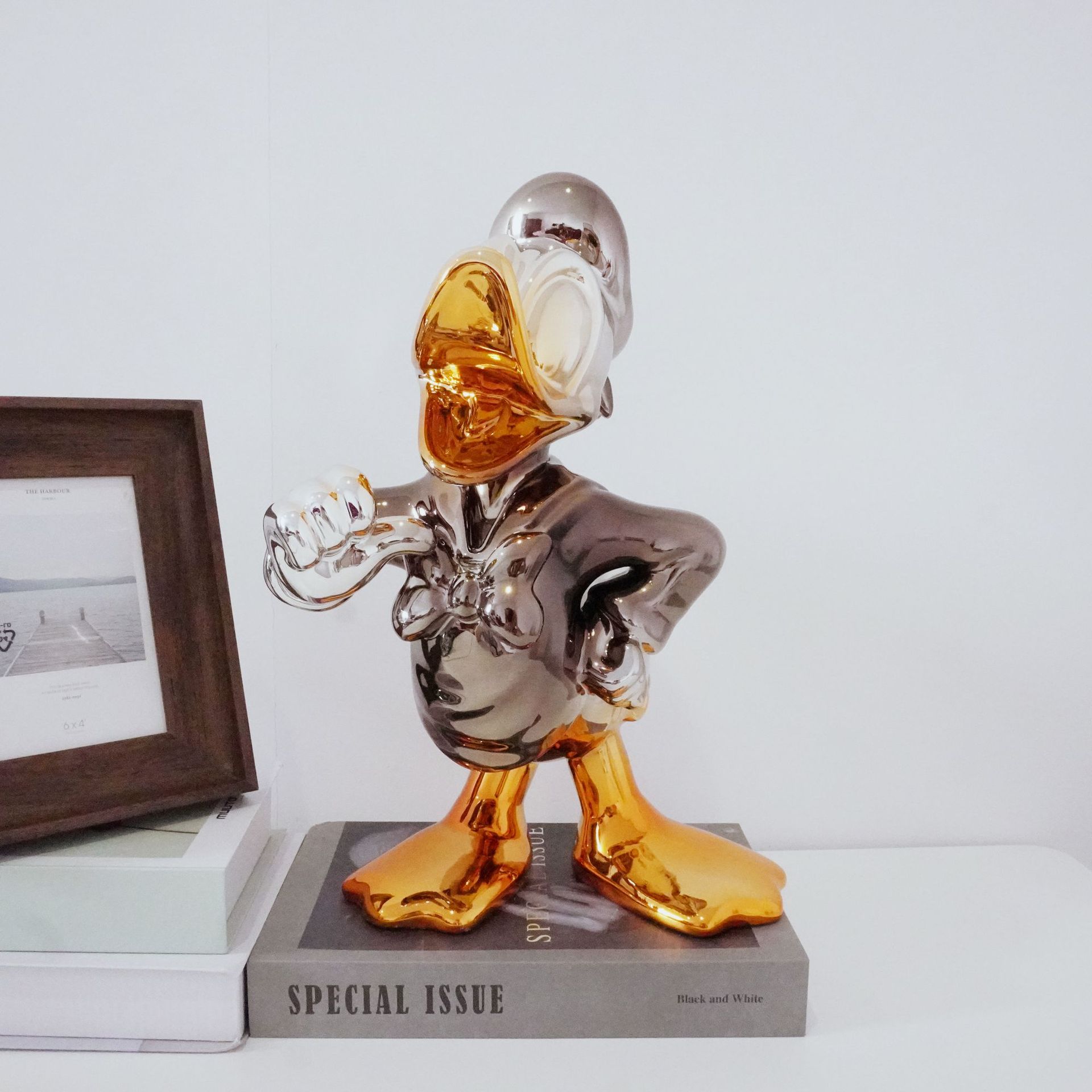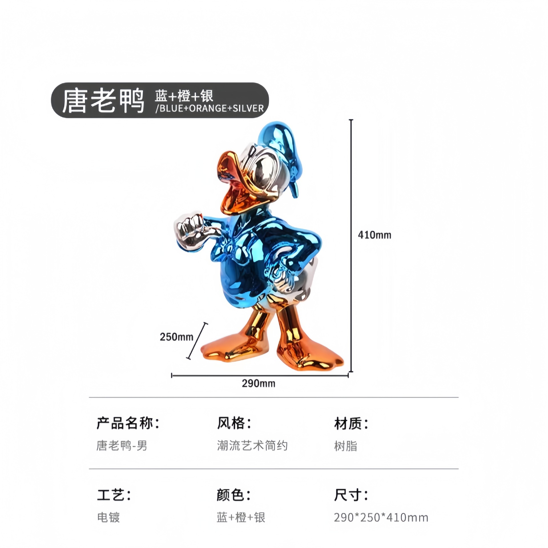爆款轻奢唐老鸭摆件卡通公仔客厅装饰电镀雕塑创意工艺乔迁礼潮玩