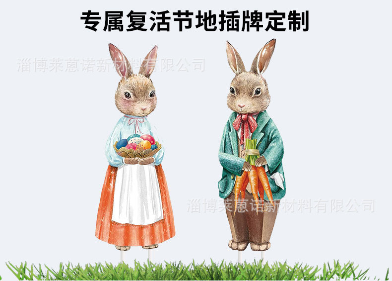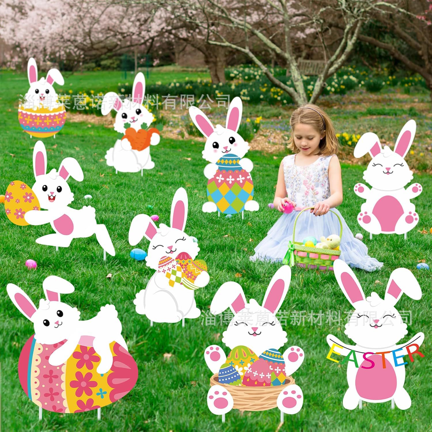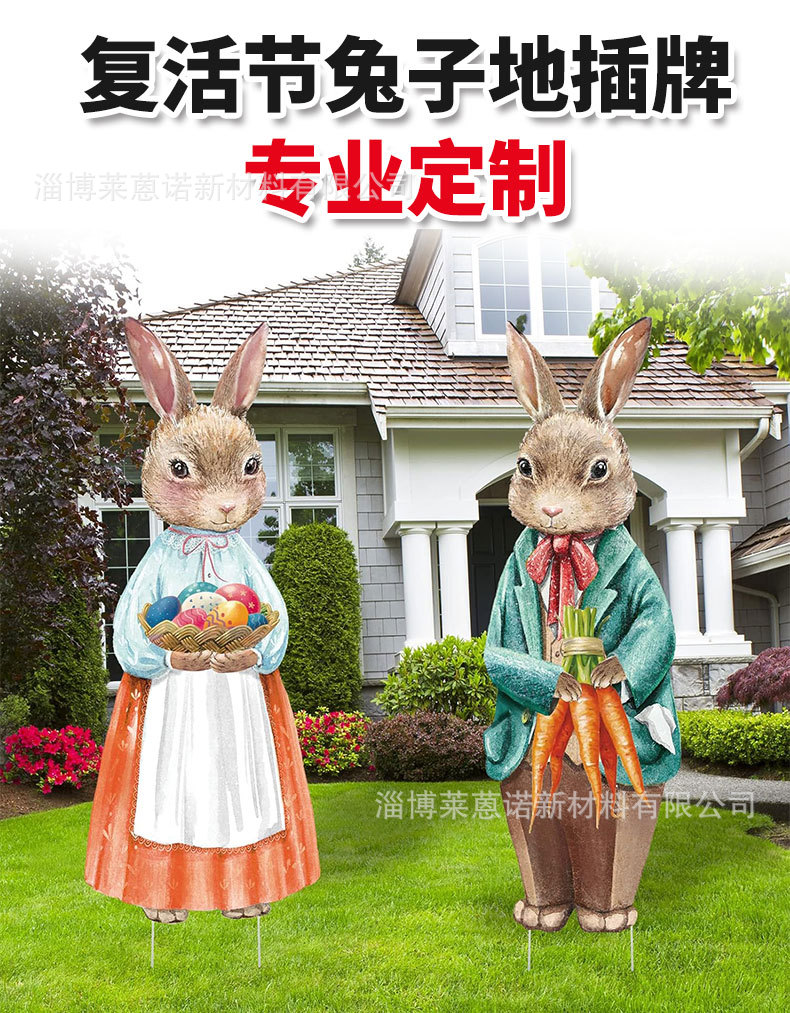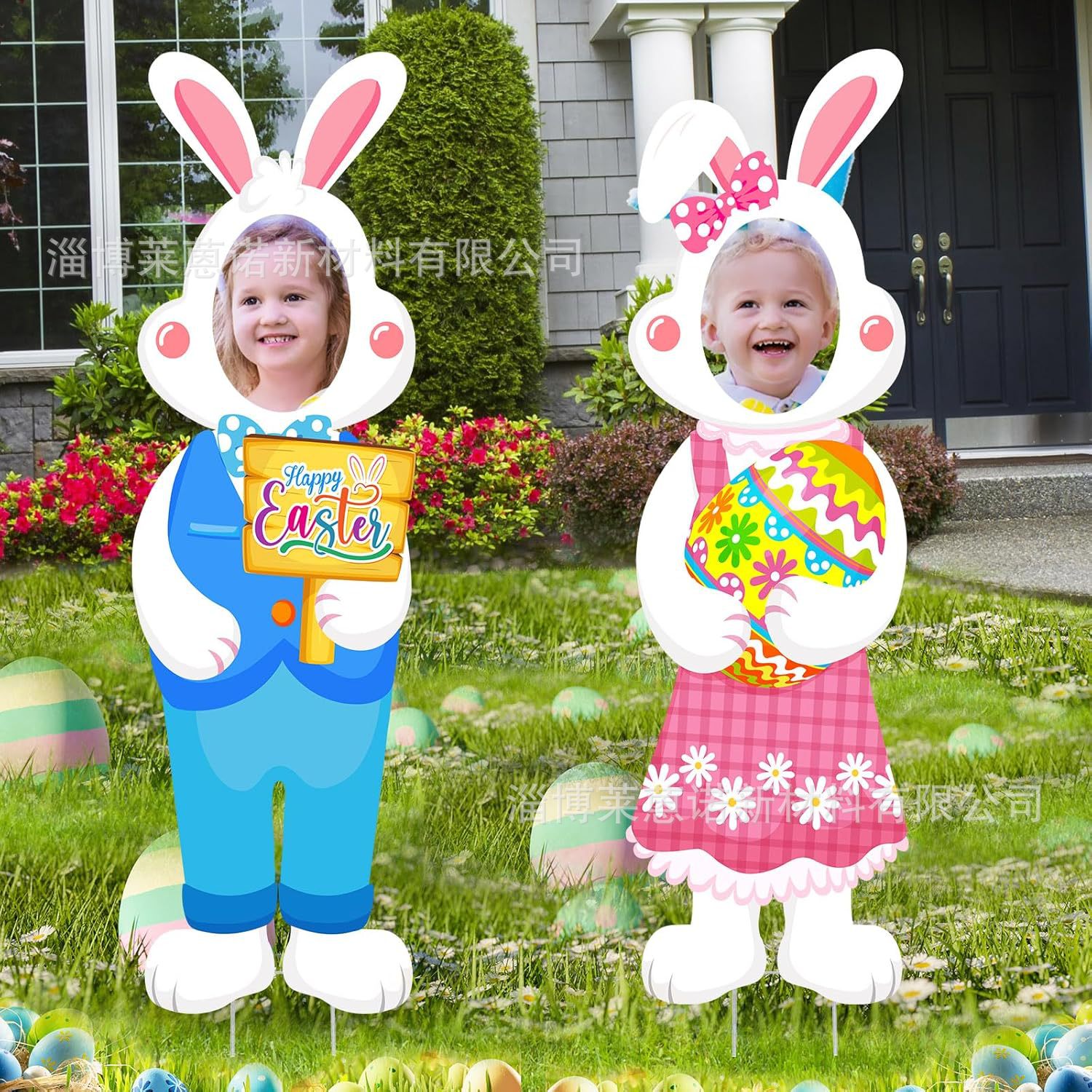 跨境复活节地插牌彩蛋兔子户外庭院标志防水防晒中空板插牌定制