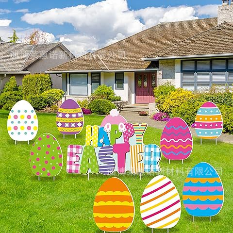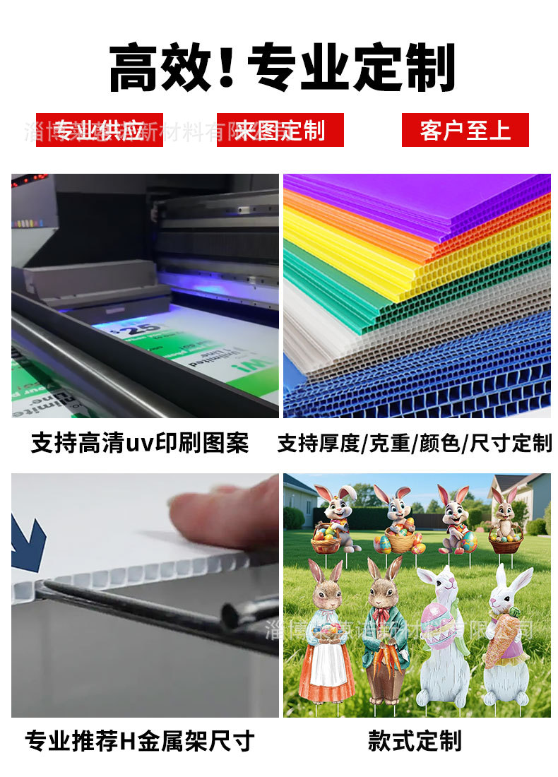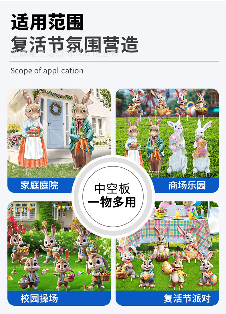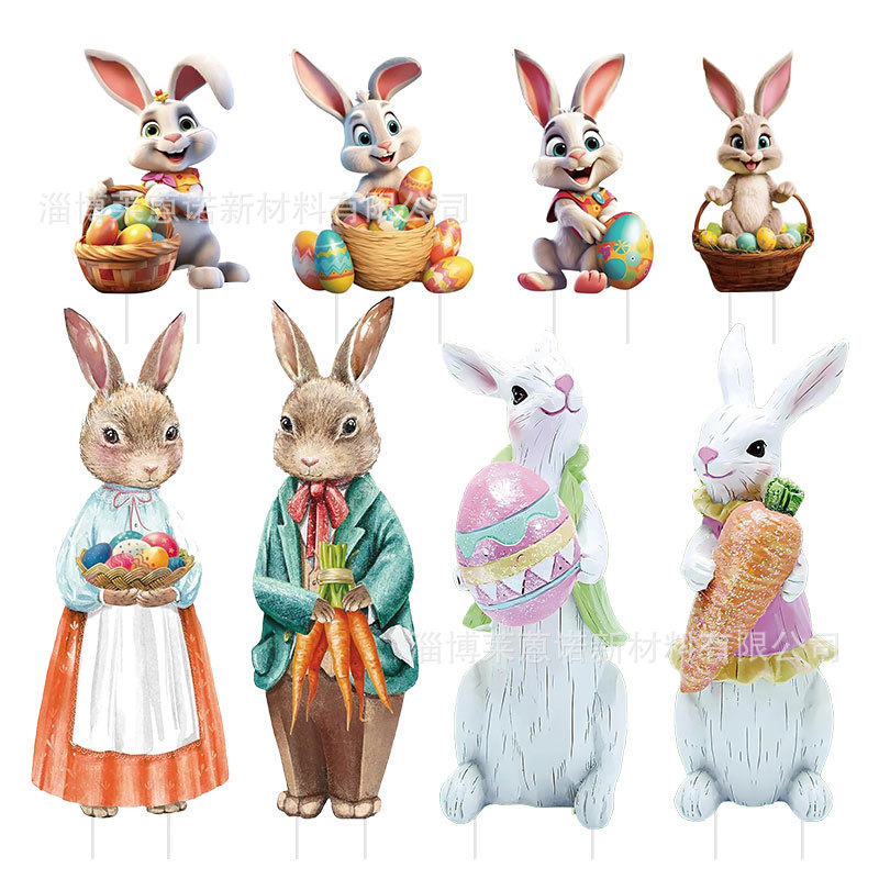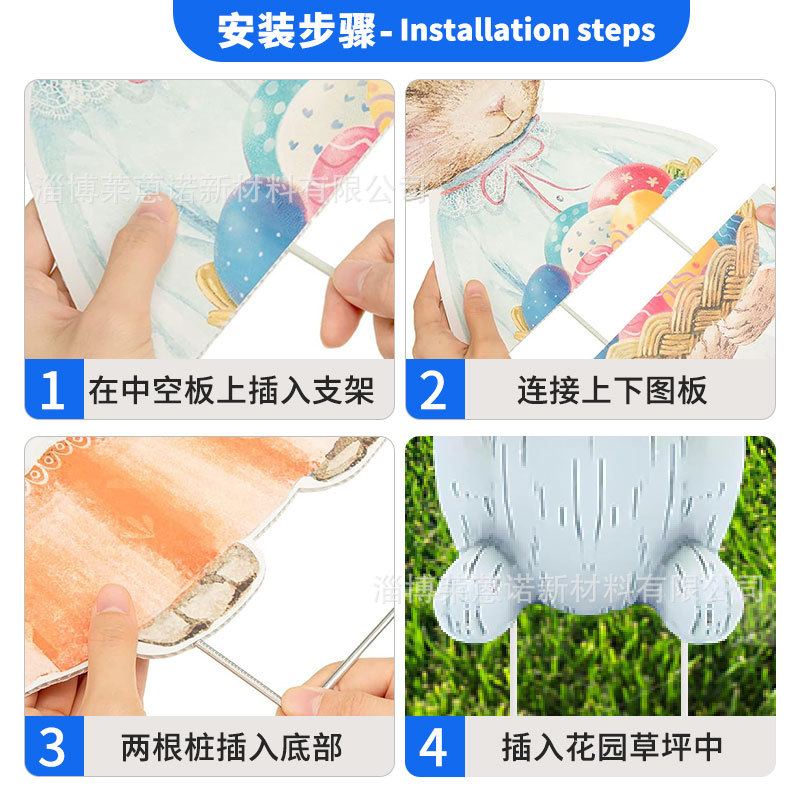 跨境复活节地插牌彩蛋兔子户外庭院标志防水防晒中空板插牌定制