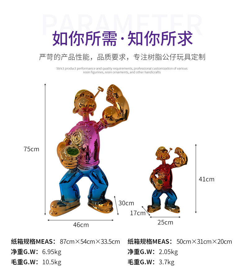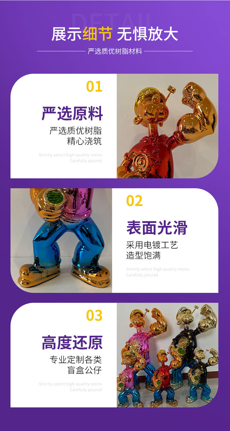跨境潮玩大力水手摆件创意高级感暴力熊家居树脂工艺品节日礼品