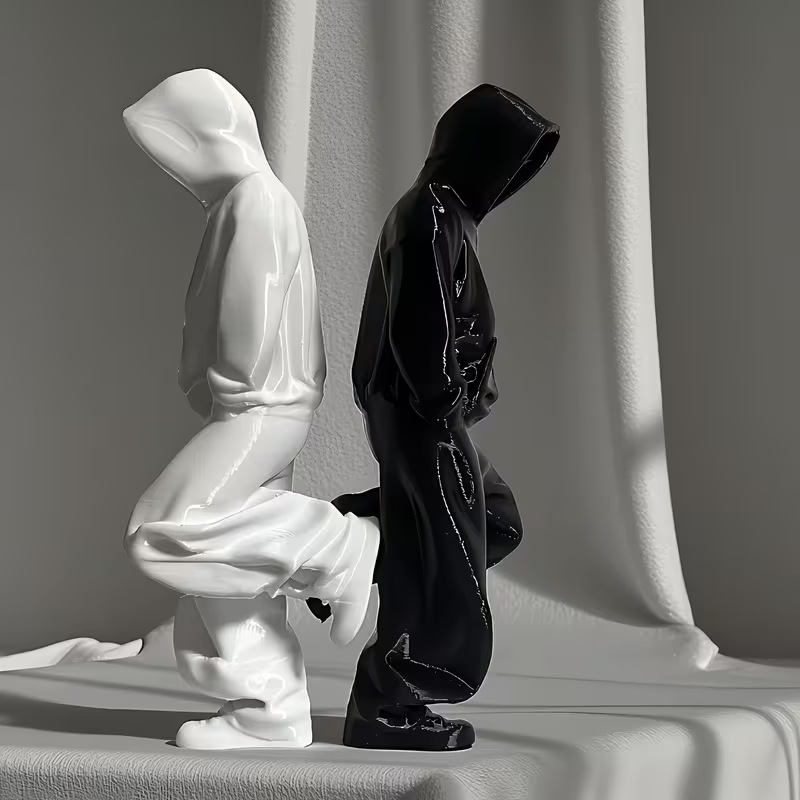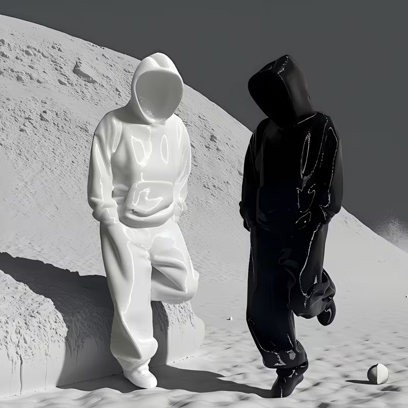 跨境新品黑白无脸思考者模型摆件玄关电脑桌面抽象虚拟人者摆装饰