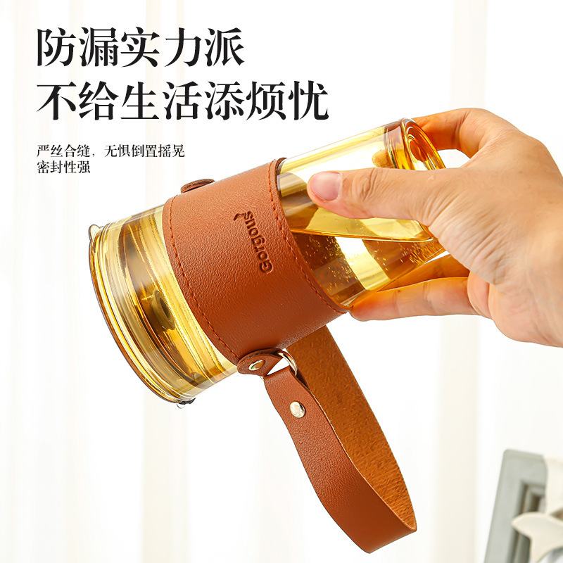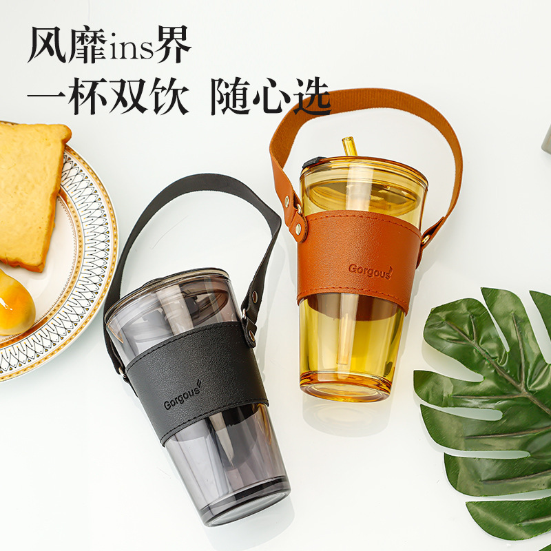 竹节双饮杯提手旅游随手咖啡杯批发网红流行玻璃杯带吸管喝水杯子