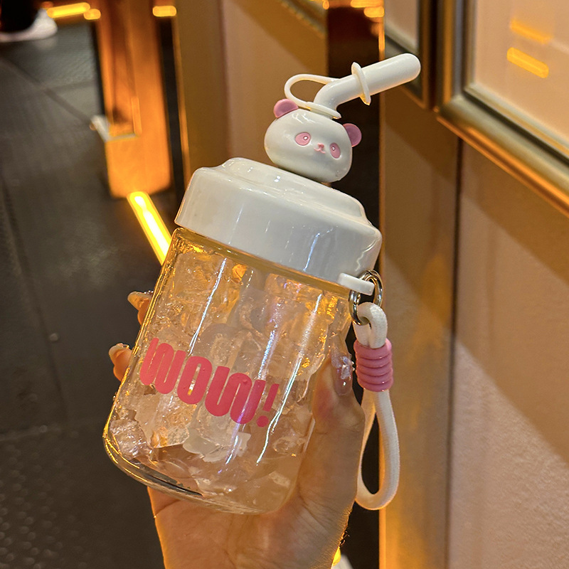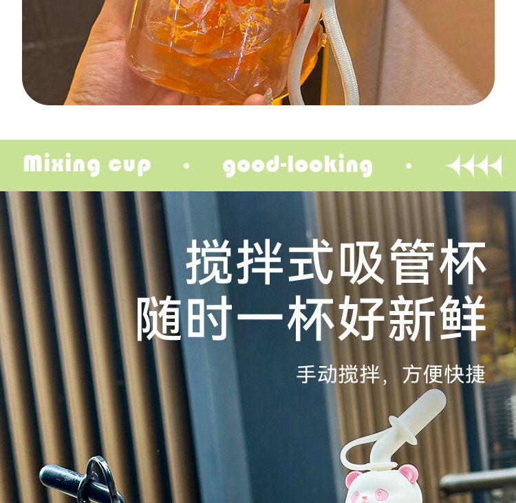 高颜值搅拌杯带吸管创意饮料杯咖啡饮料时尚潮流礼品杯玻璃水杯