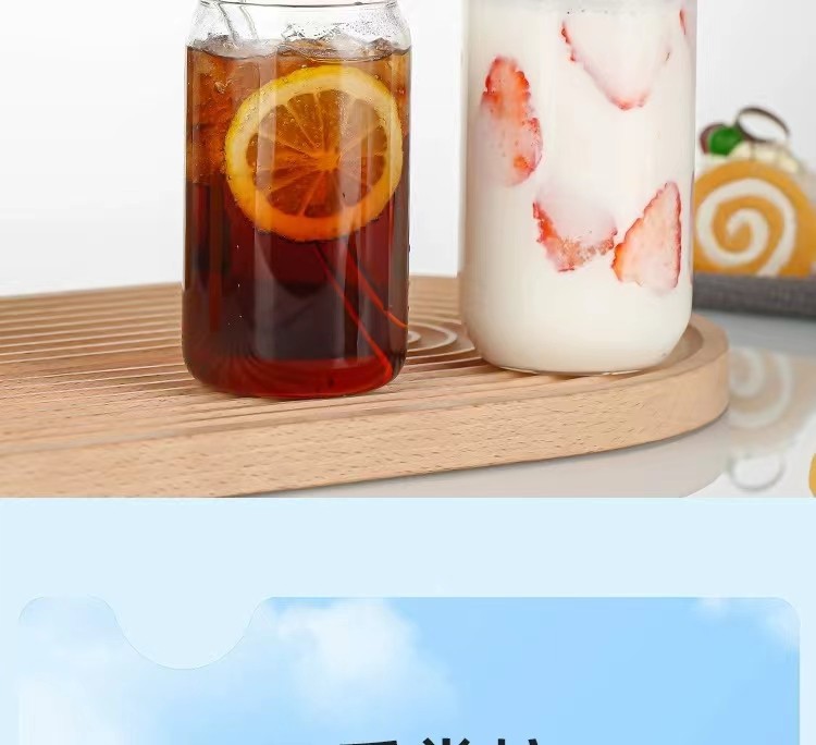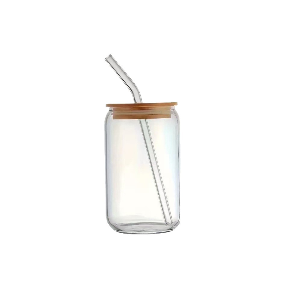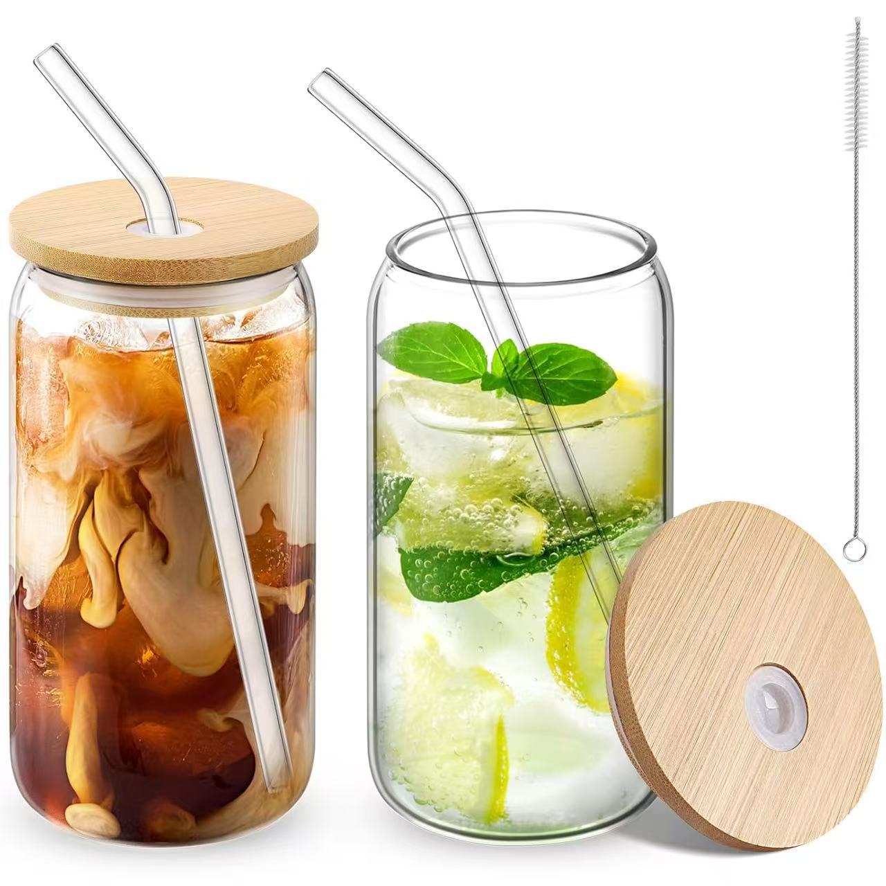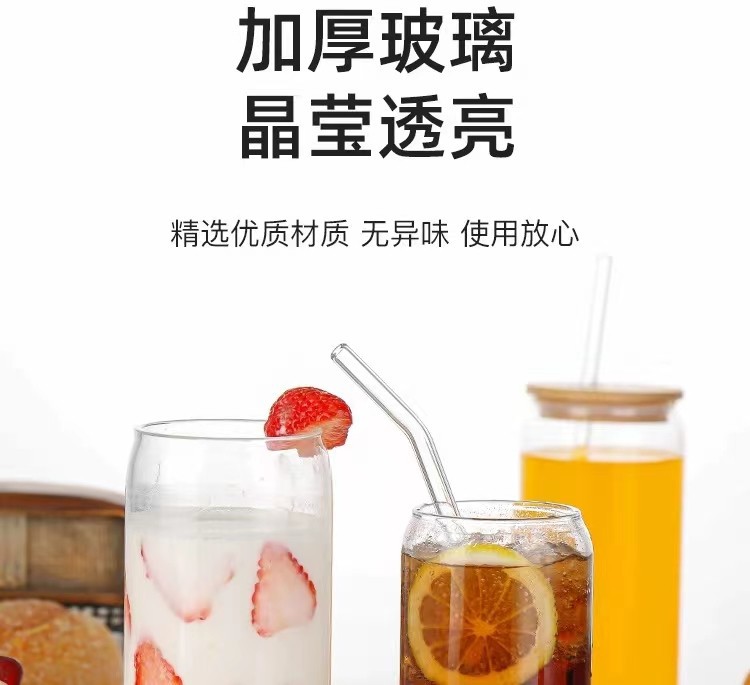 跨境亚马逊网红500ml可乐杯16oz梅森杯竹盖玻璃饮料果汁杯带吸管
