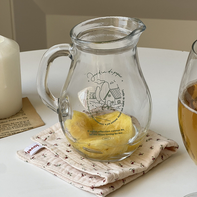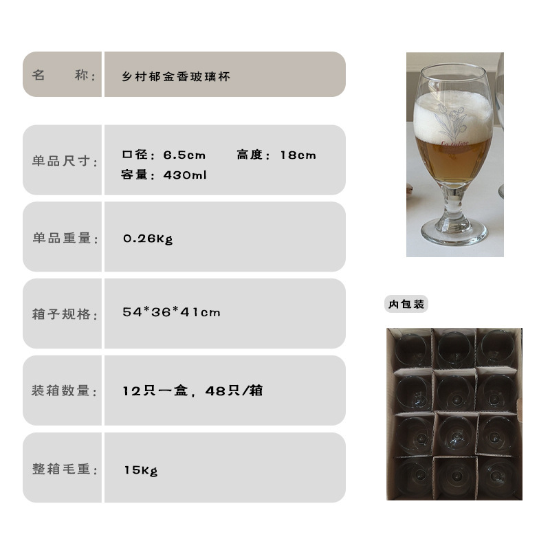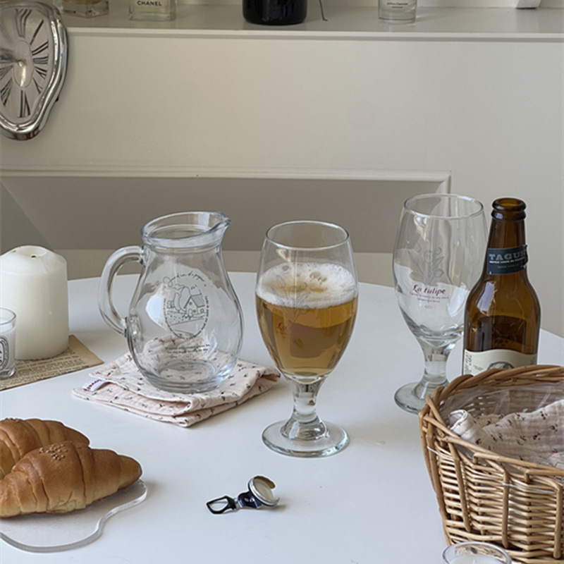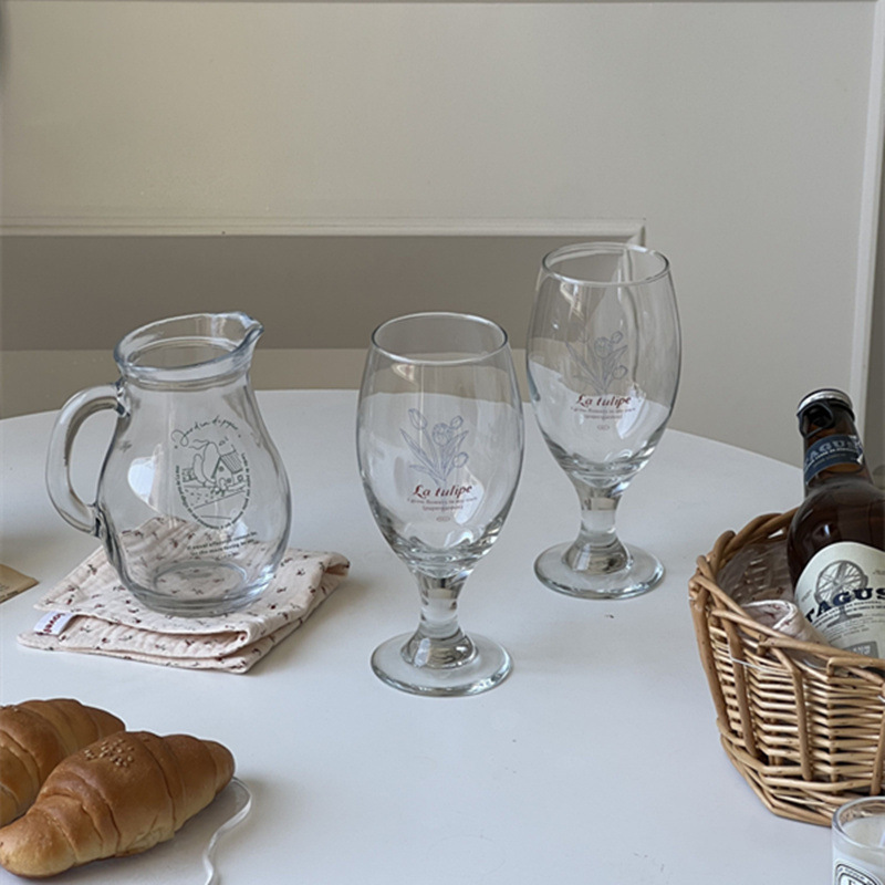 法式字母简约手绘郁金香玻璃杯小清新啤酒杯咖啡杯家用冷饮果汁杯