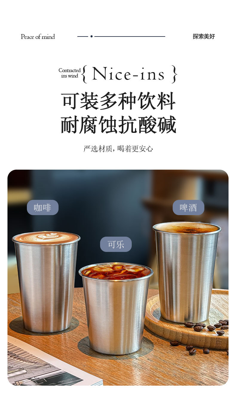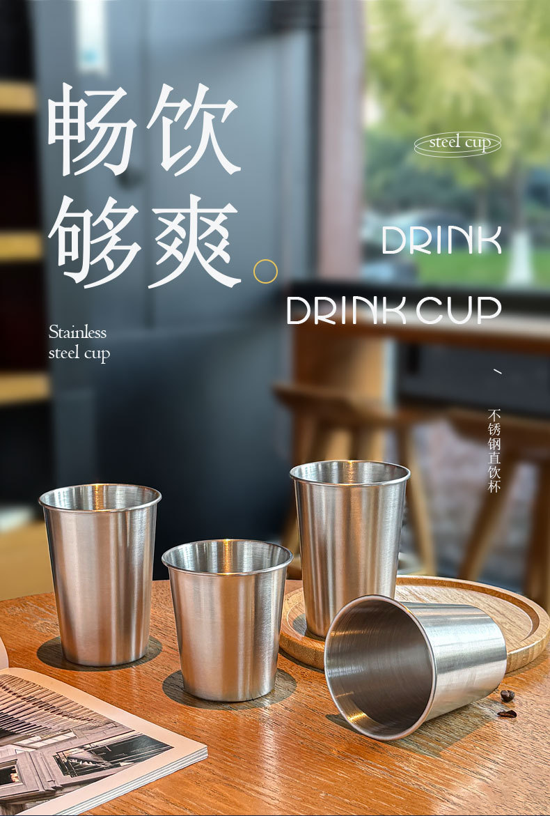 304不锈钢杯子啤酒杯户外杯防摔水杯儿童杯果汁咖啡杯logo 冷饮杯