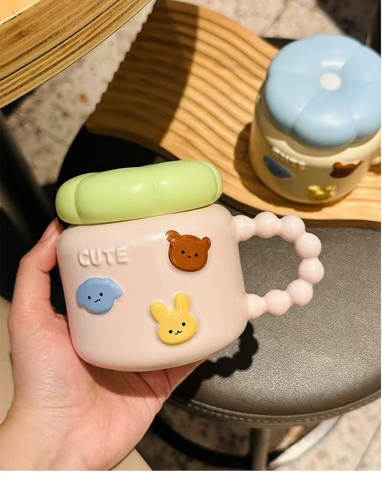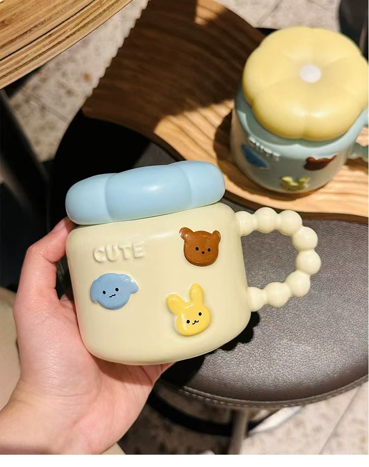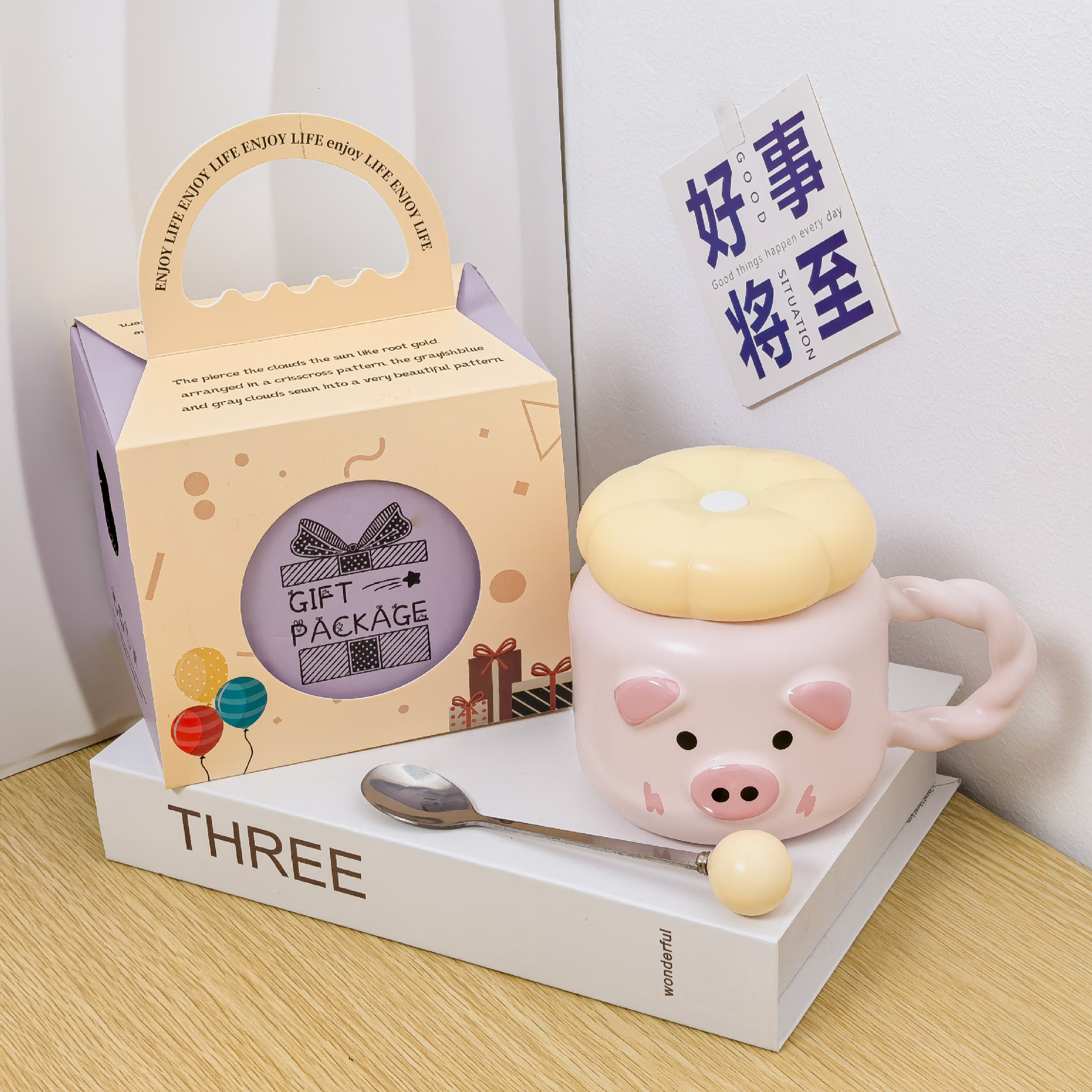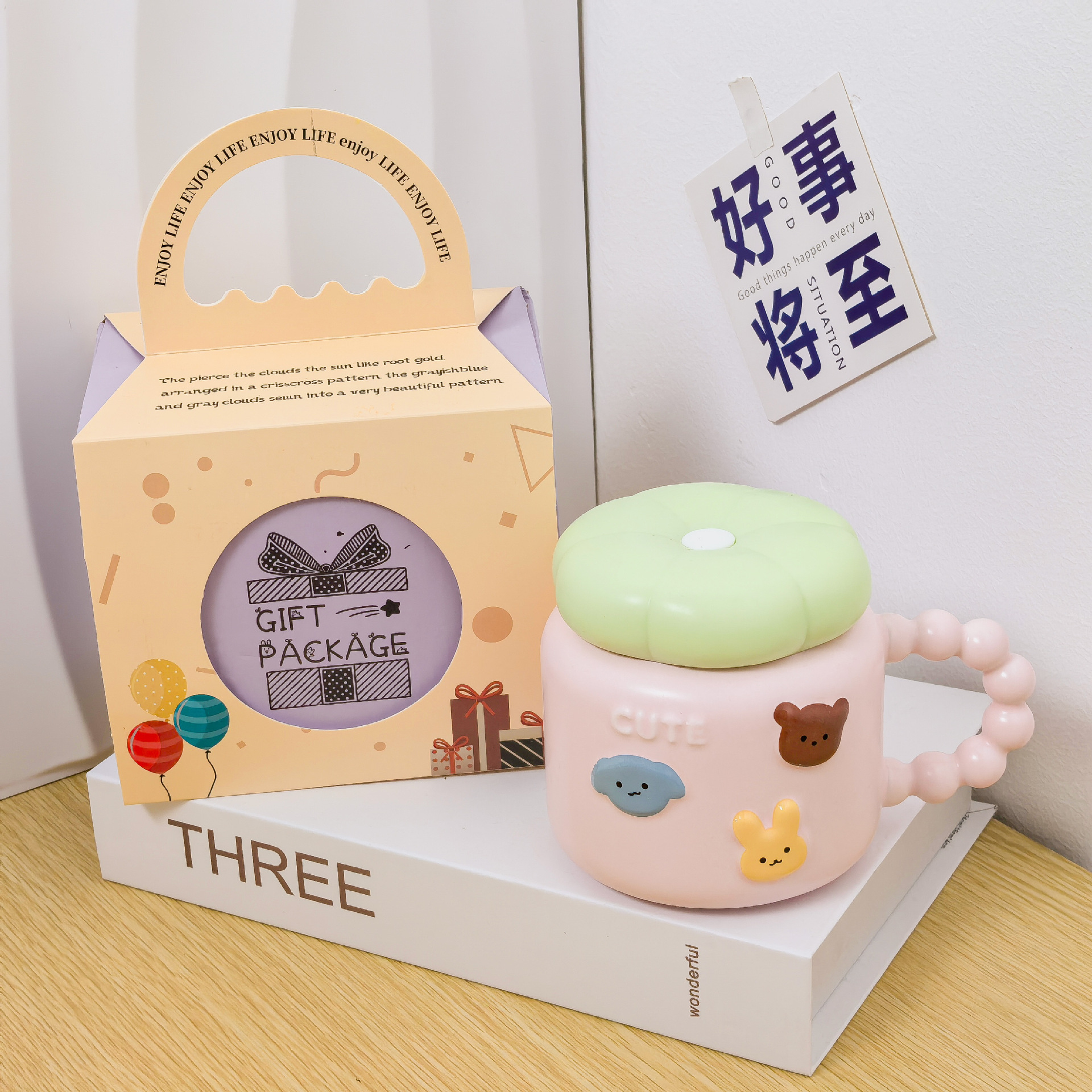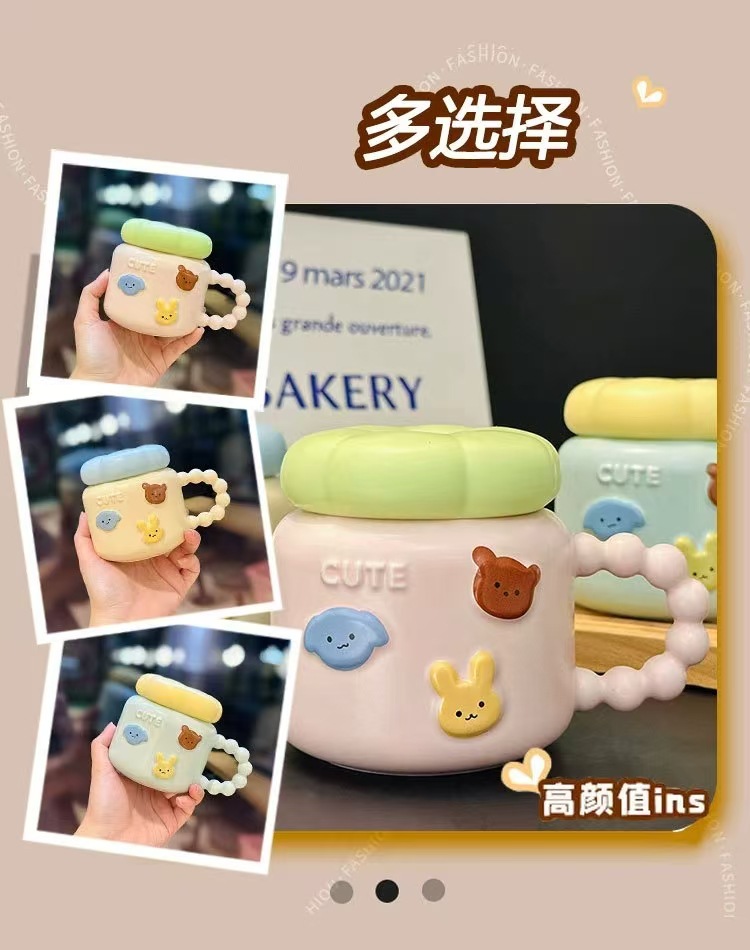 陶瓷马克杯可爱带盖勺女生杯子高颜值伴手礼生日礼物家用咖啡水杯