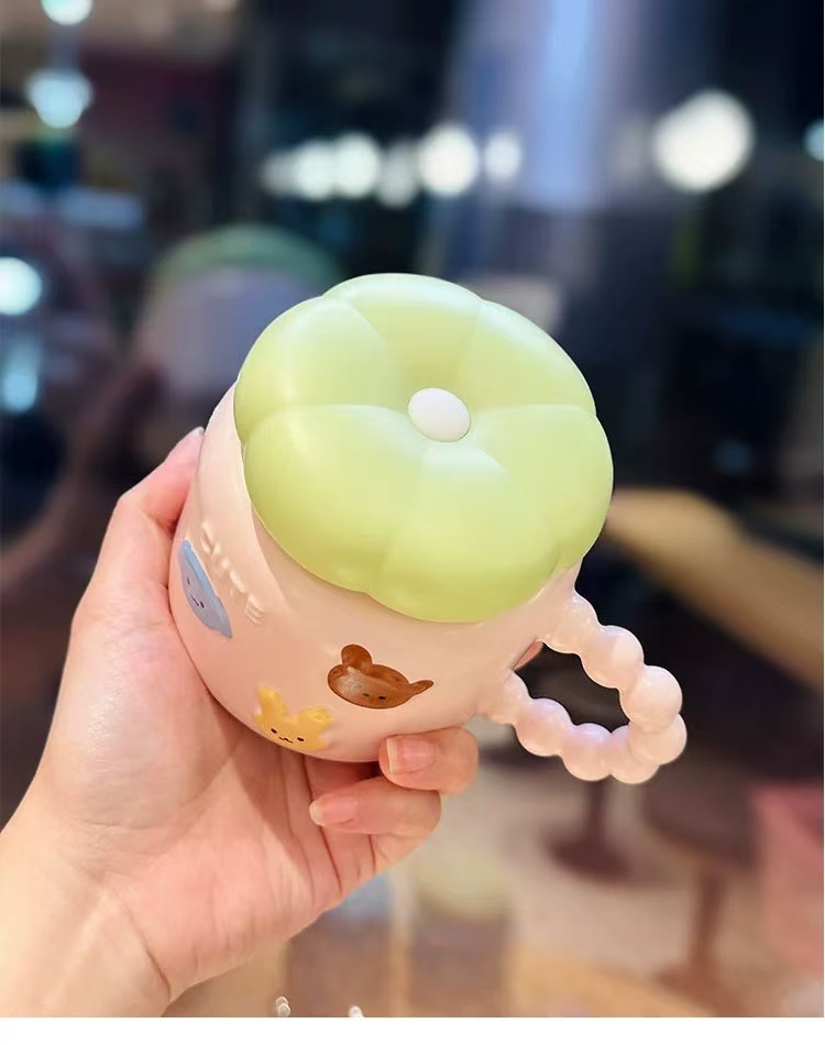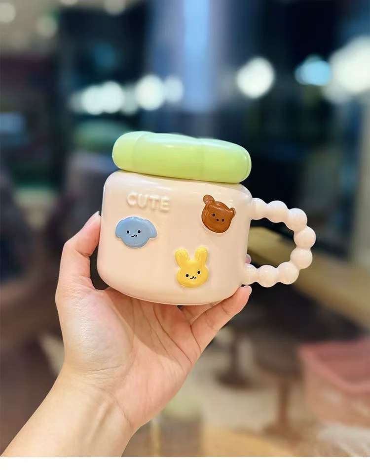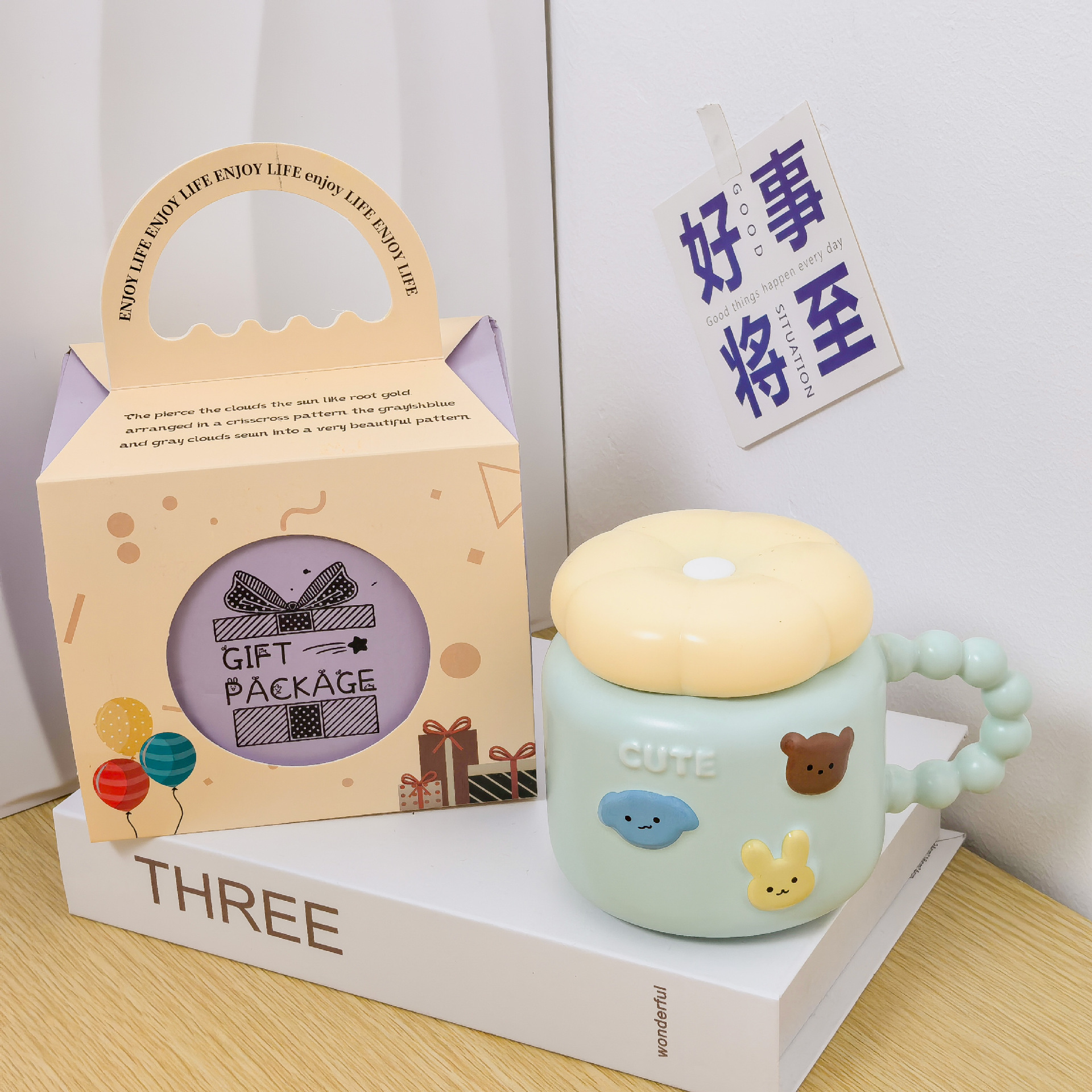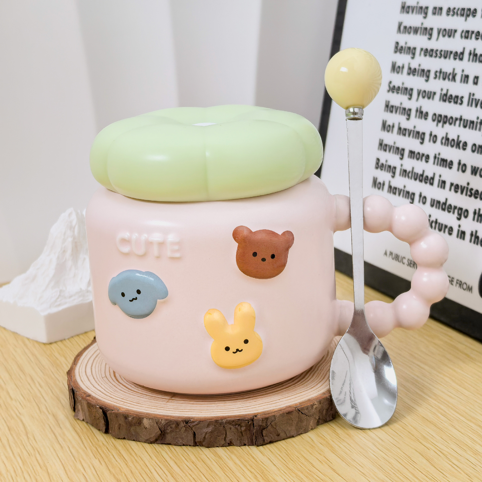 陶瓷马克杯可爱带盖勺女生杯子高颜值伴手礼生日礼物家用咖啡水杯