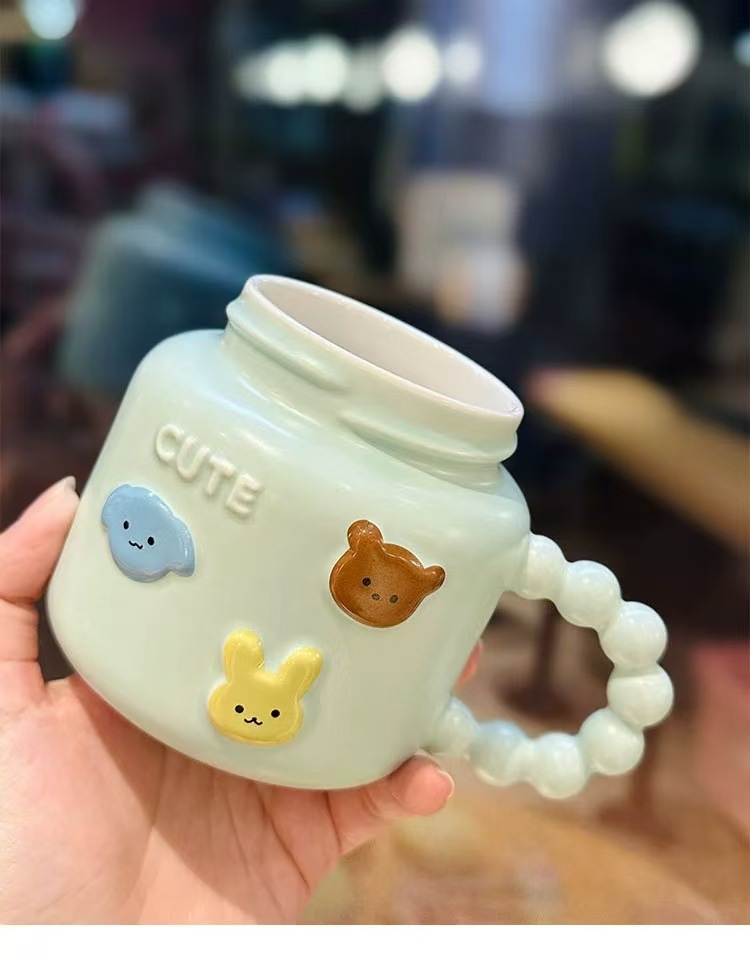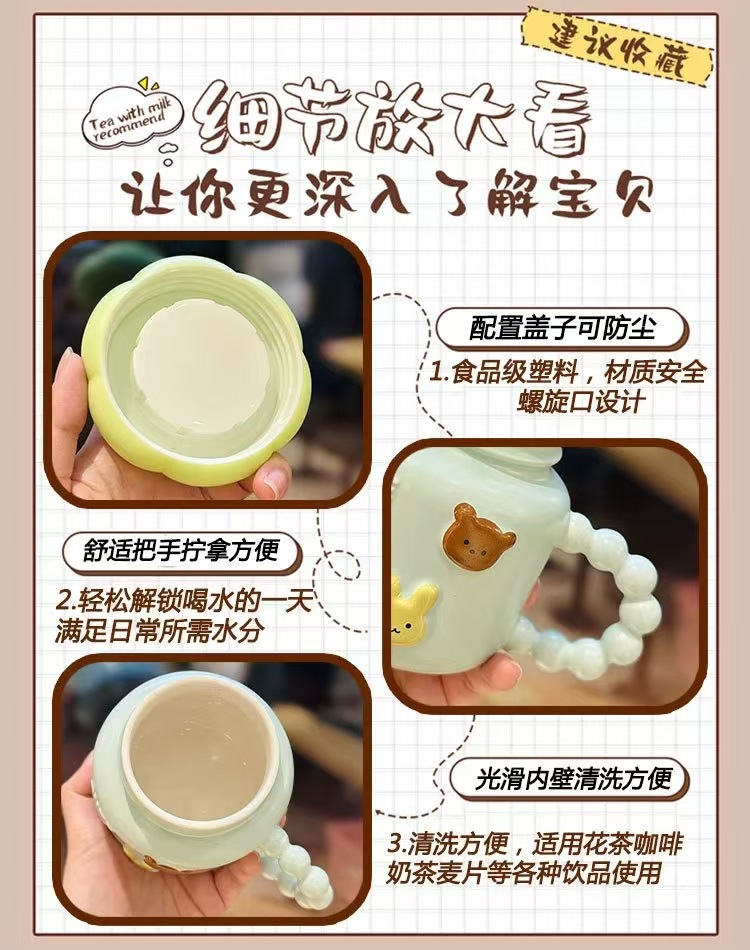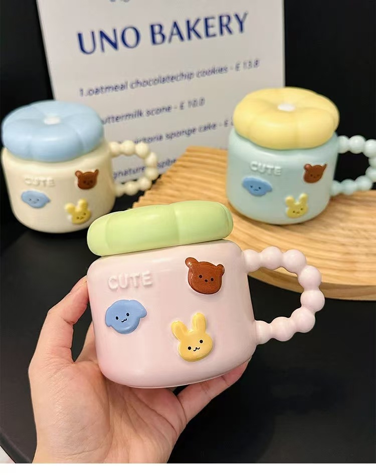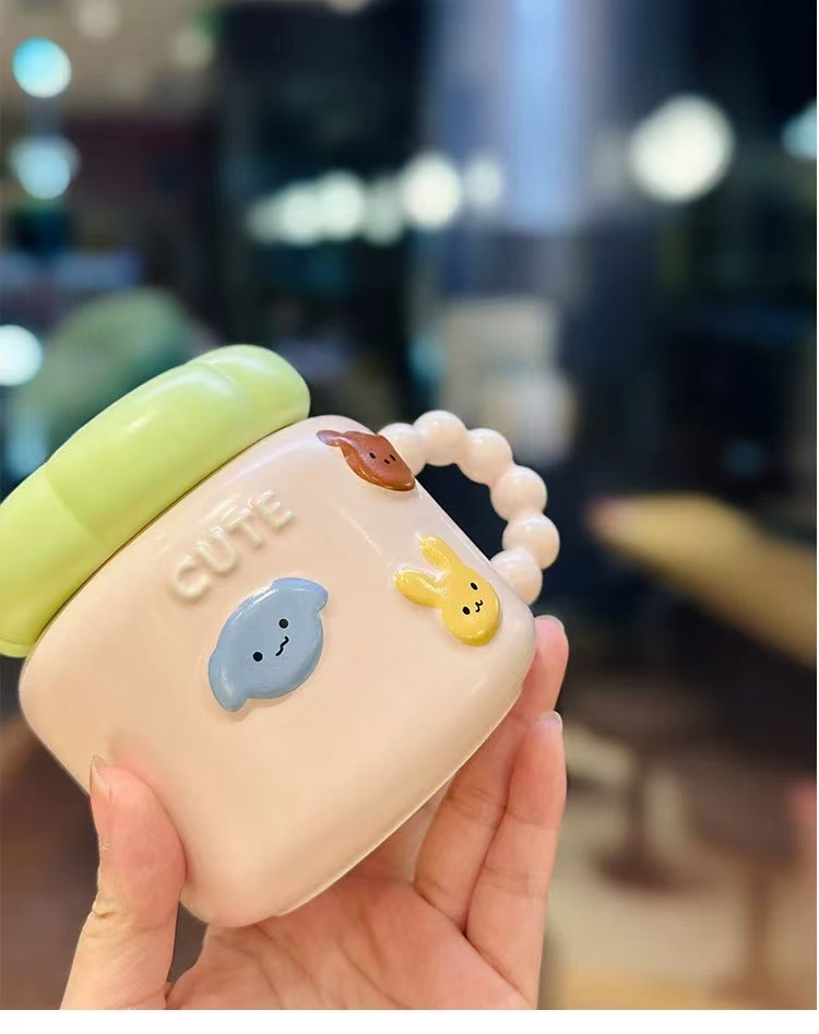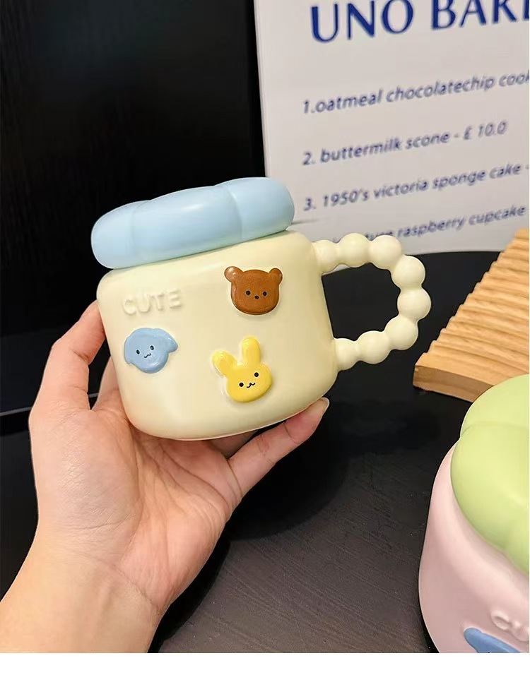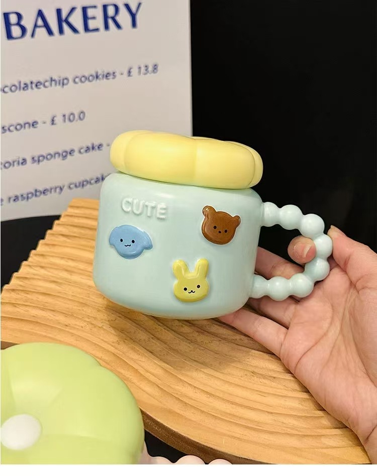 陶瓷马克杯可爱带盖勺女生杯子高颜值伴手礼生日礼物家用咖啡水杯