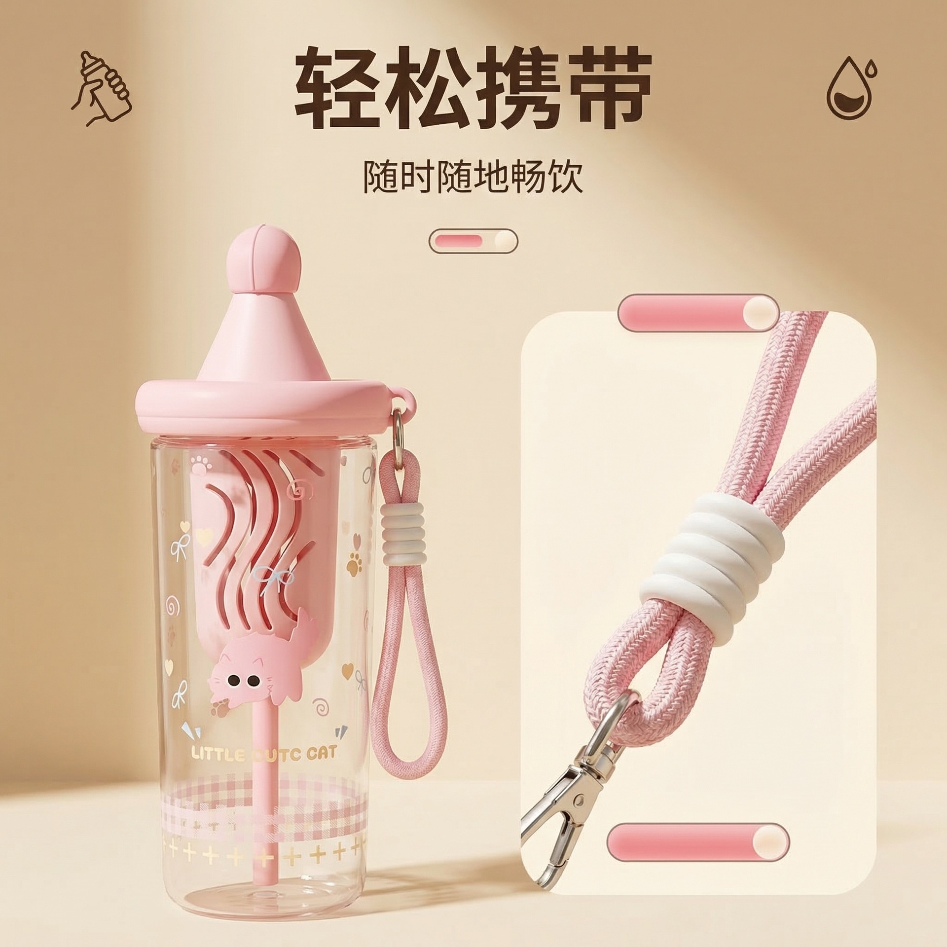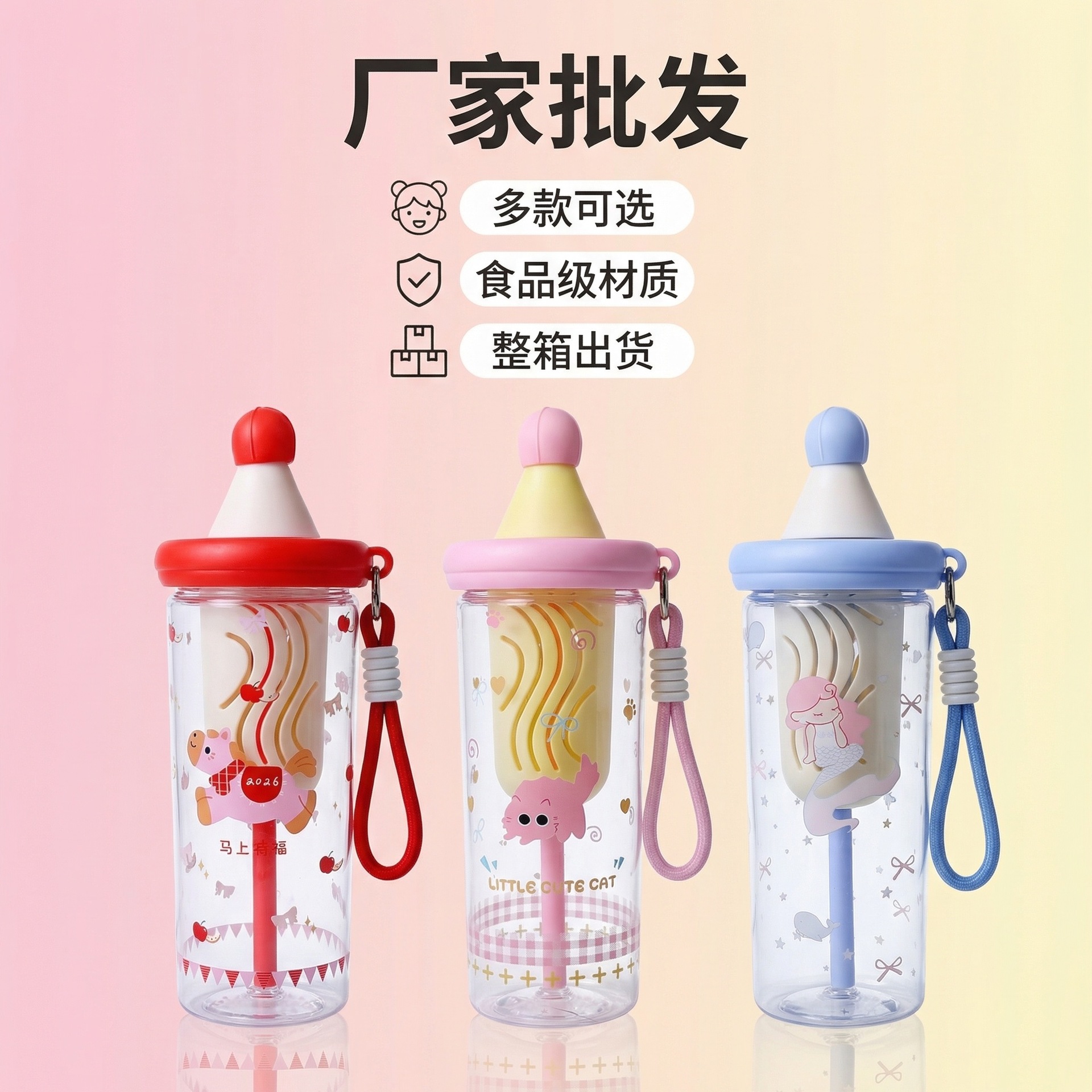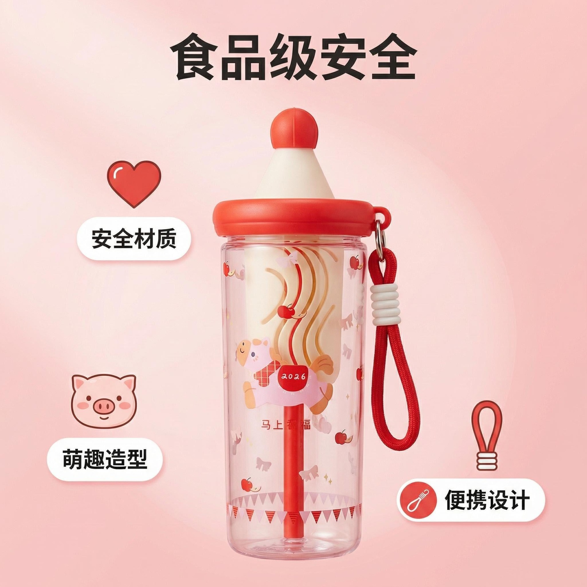 夏季塑料吸管水杯女士高颜值便携随行水杯可爱大容量学生运动水杯