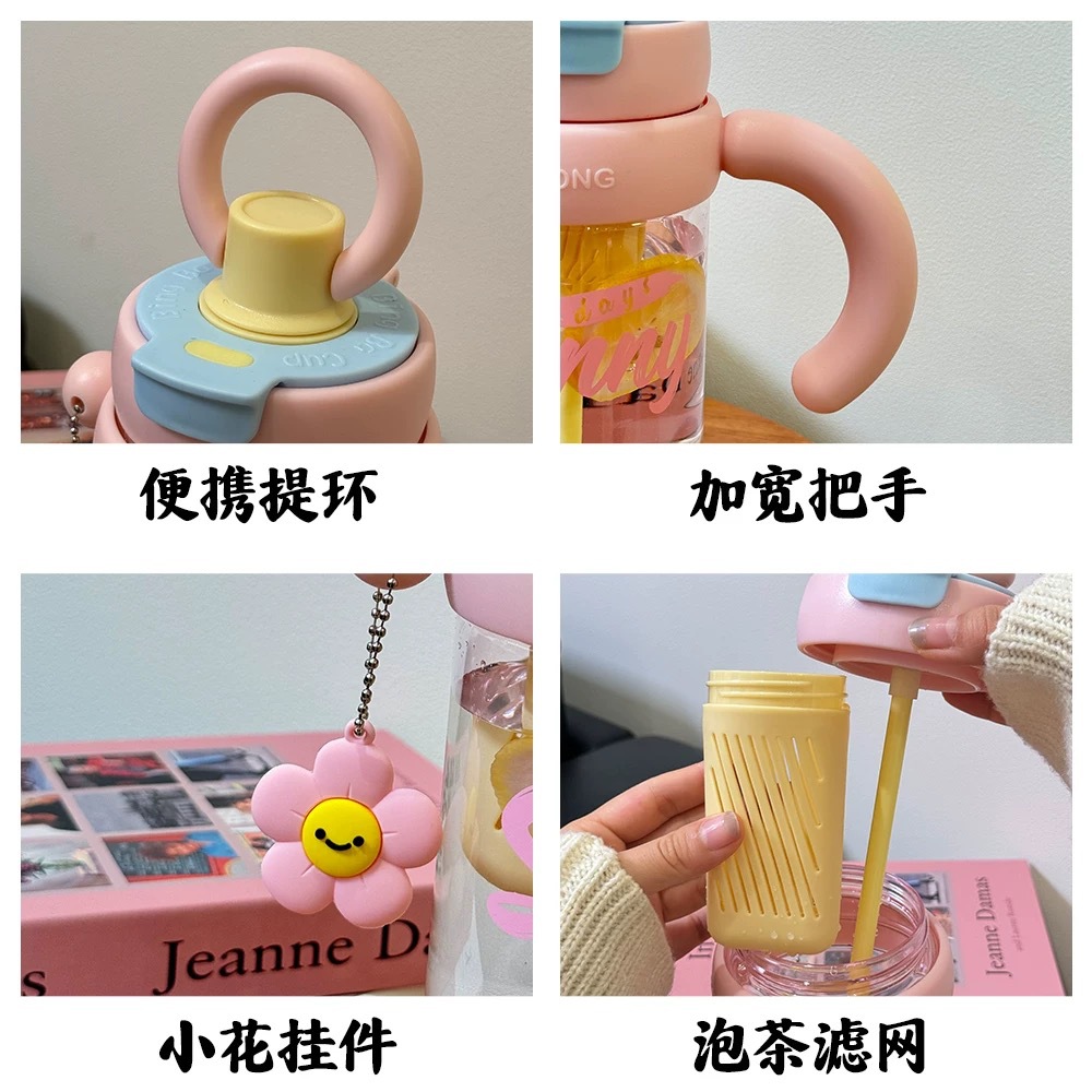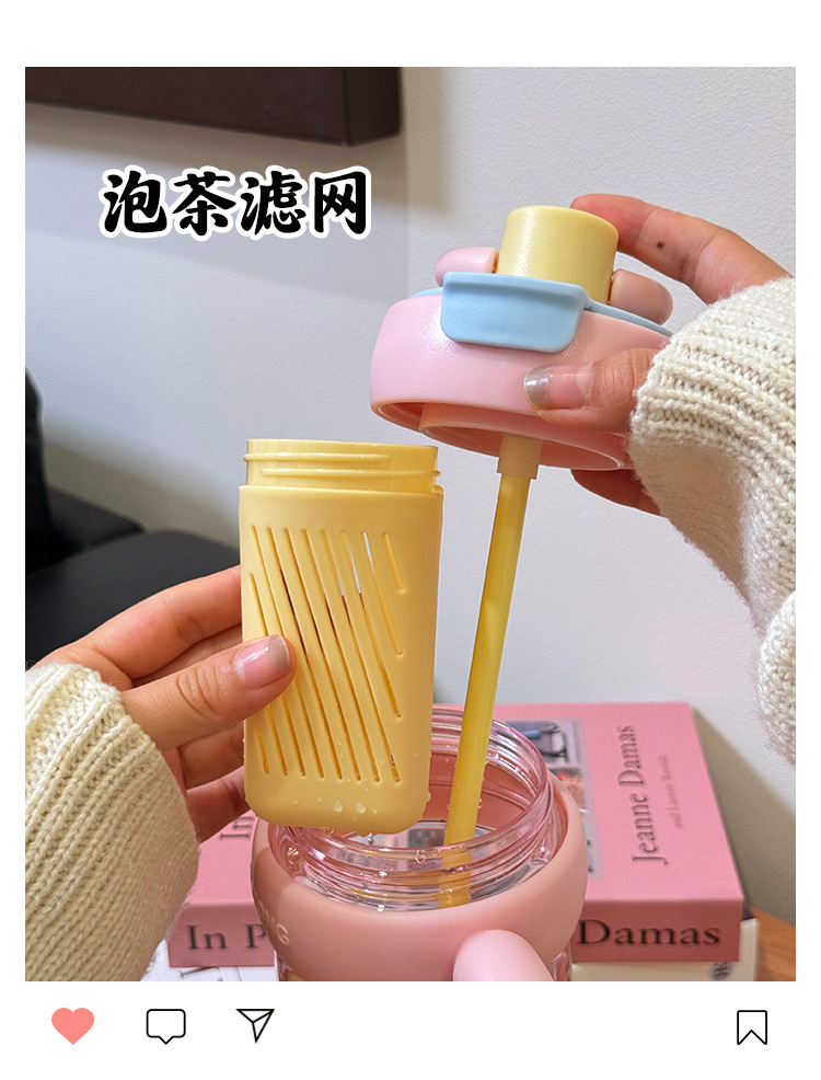 高颜值冰霸杯大容量耐高温茶水分离吸管水杯户外便携塑料杯水壶