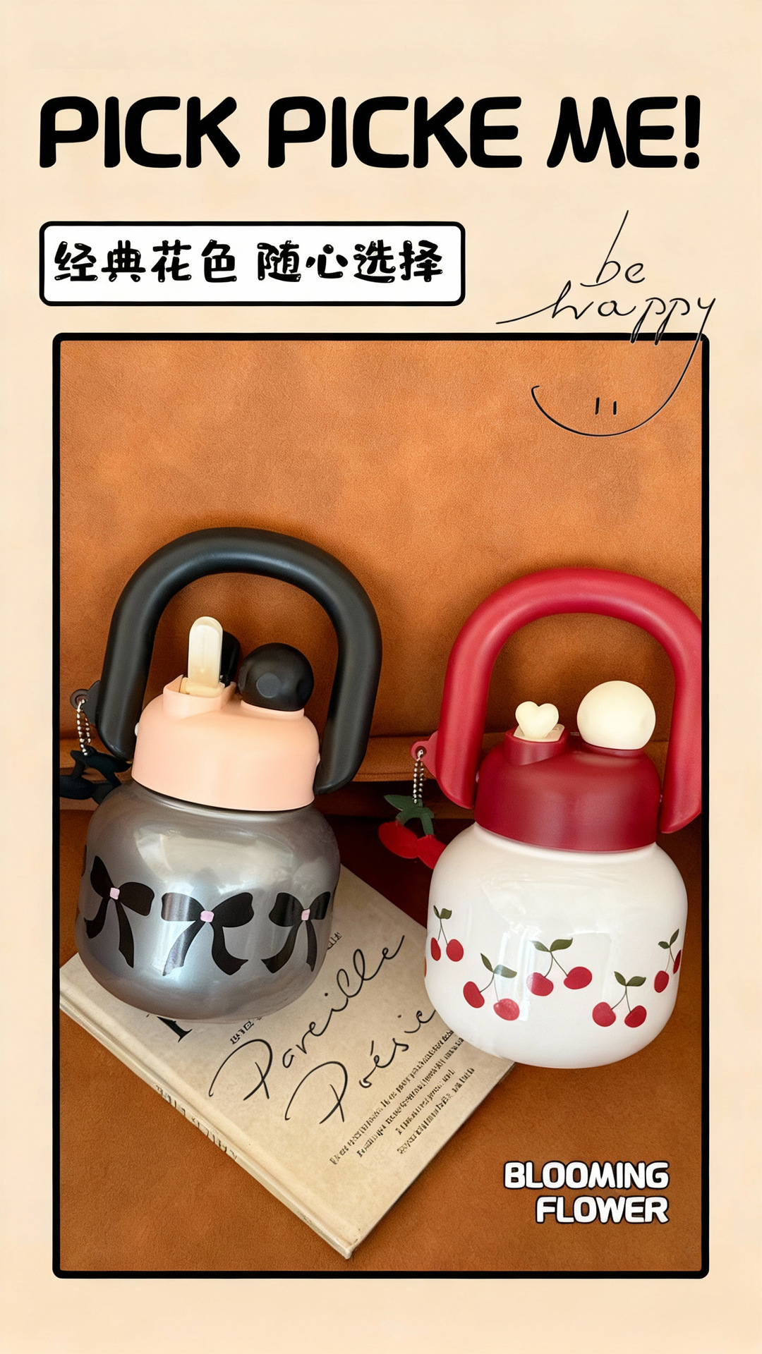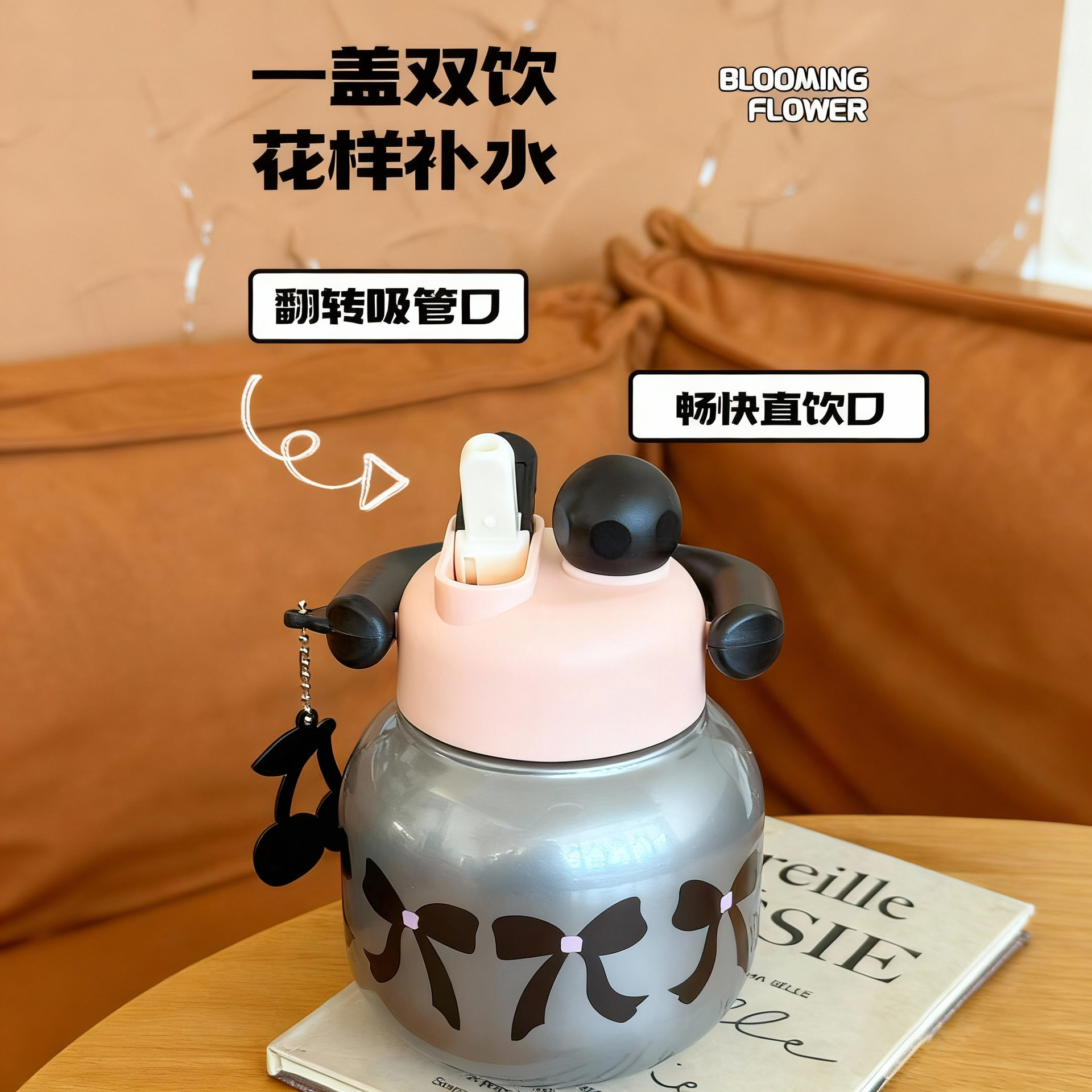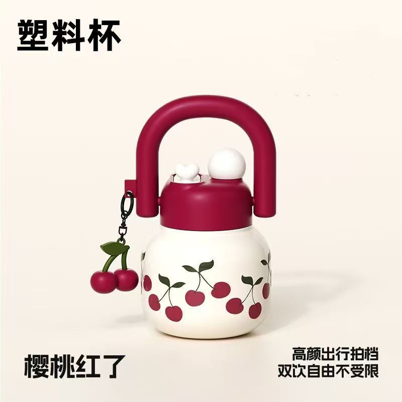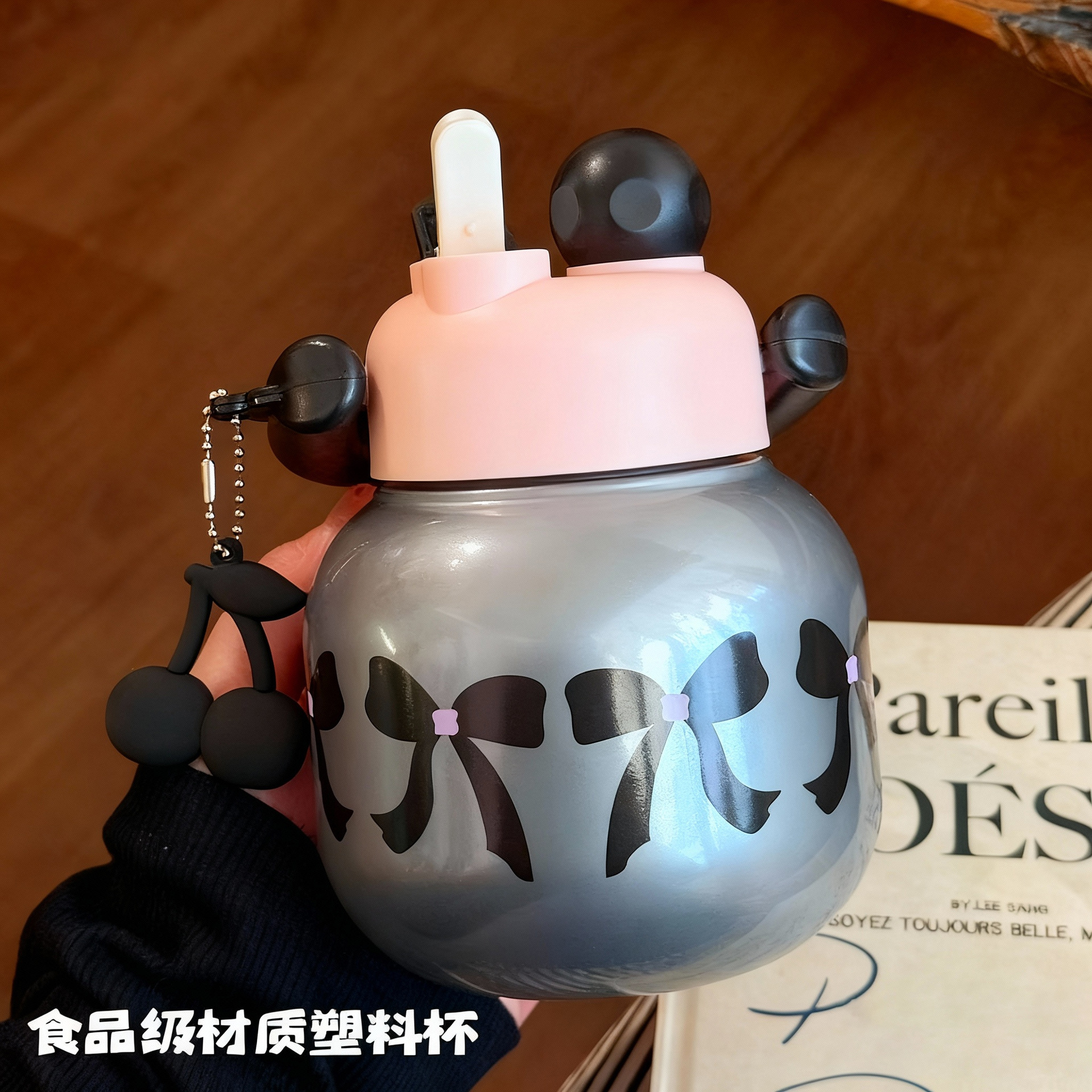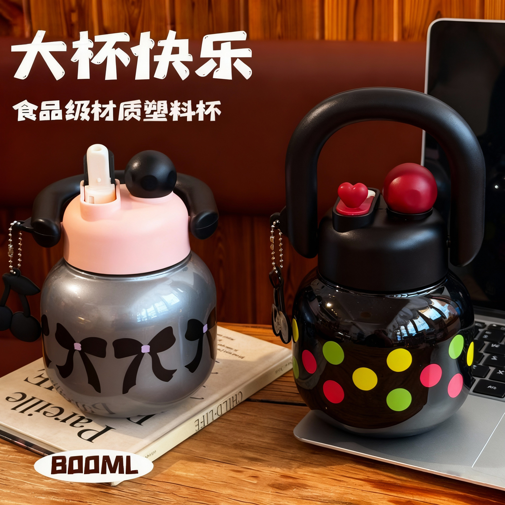 新款高颜值双饮拎拎壶大容量塑料杯便携学生手提大肚双饮水杯批发
