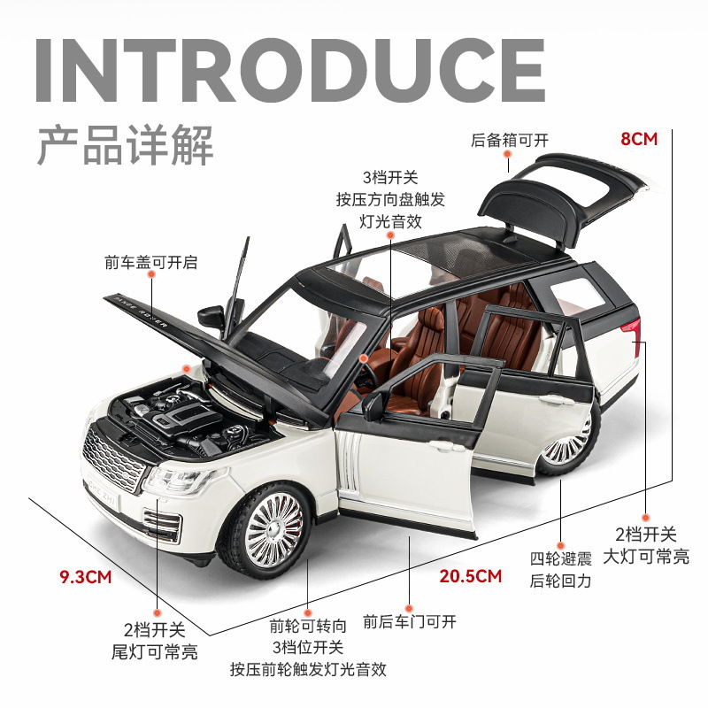 车致合金模型儿童玩具越野车1:24路虎揽胜SUV声光回力6开门泡沫盒