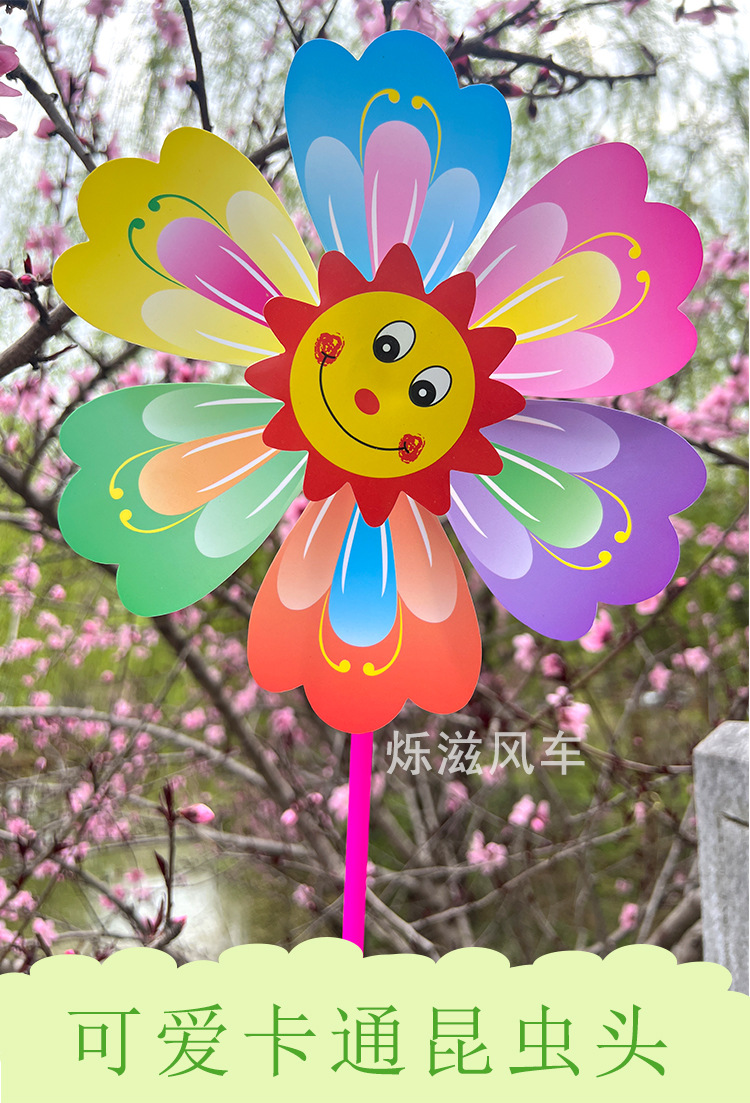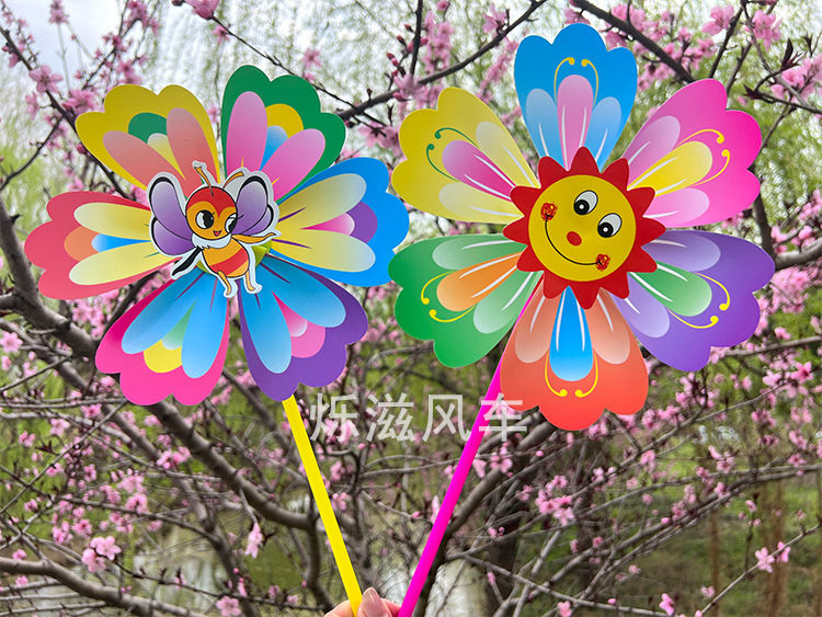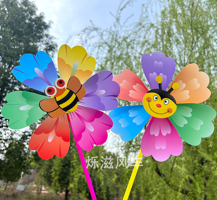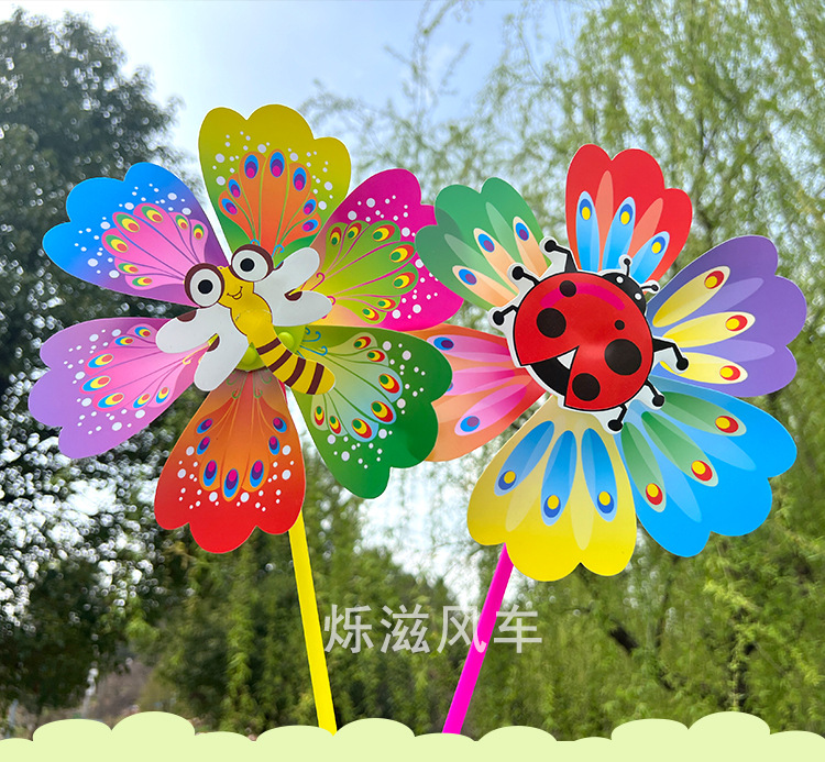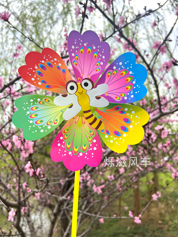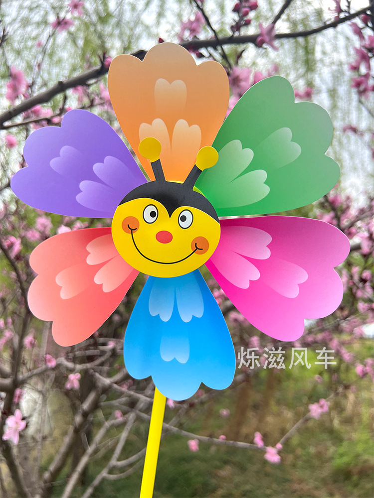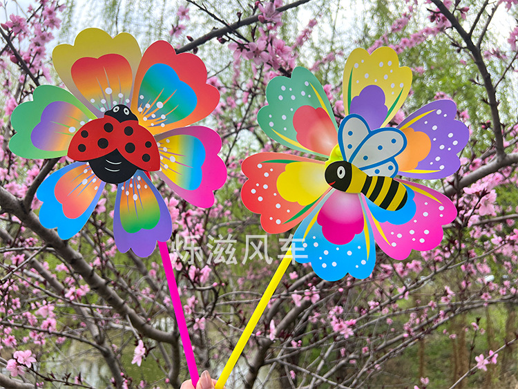 卡通花型昆虫风车厂家批发幼儿园儿童玩具手持户外地摊推礼品风车