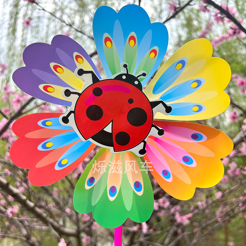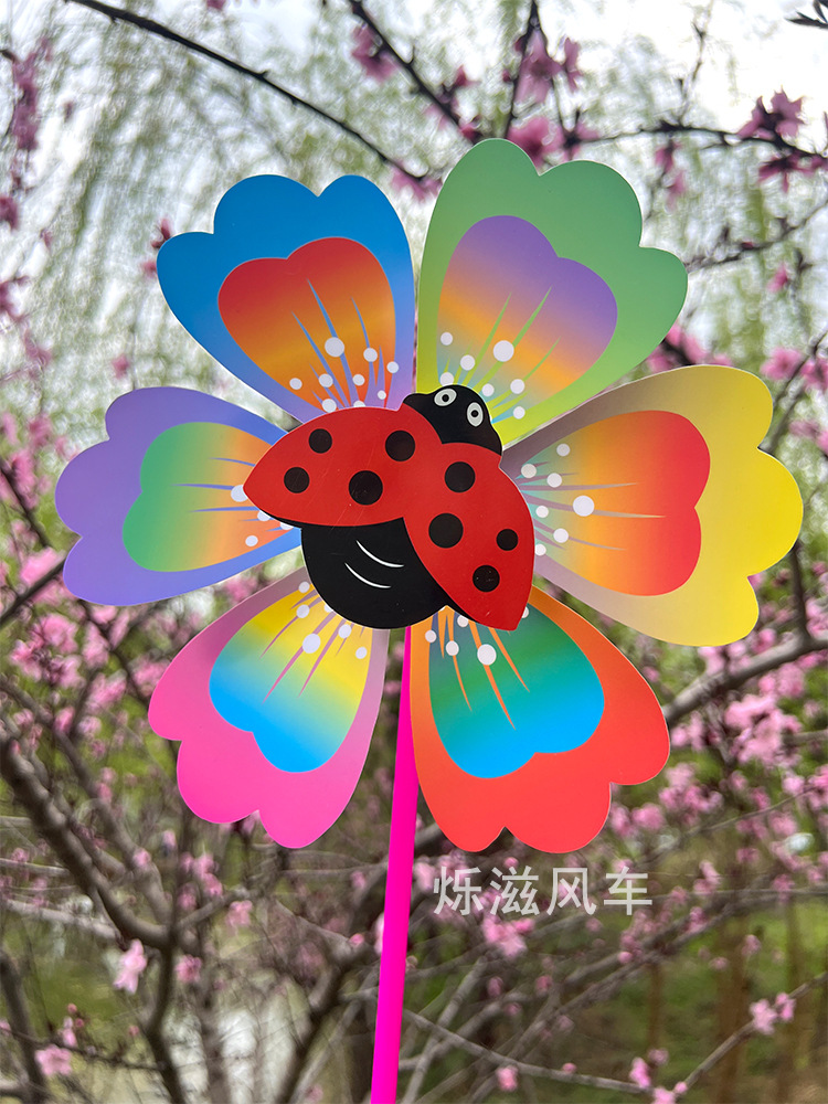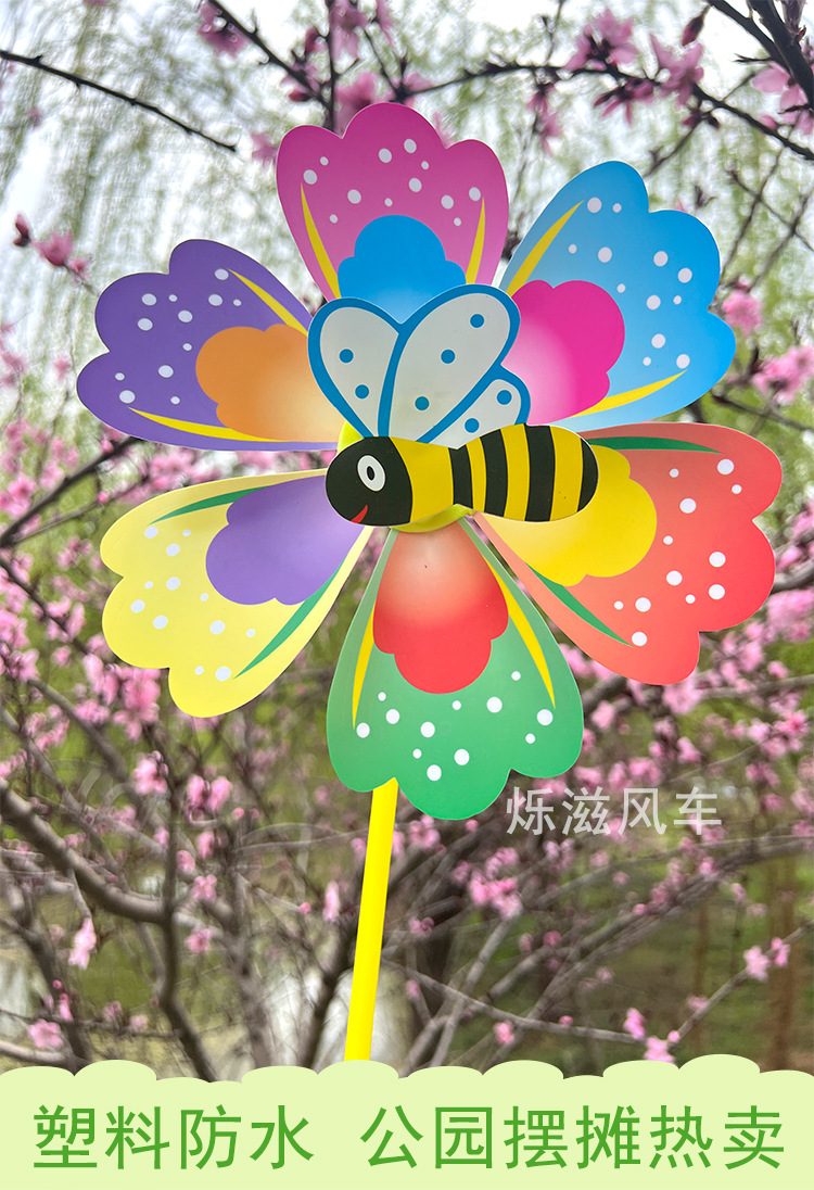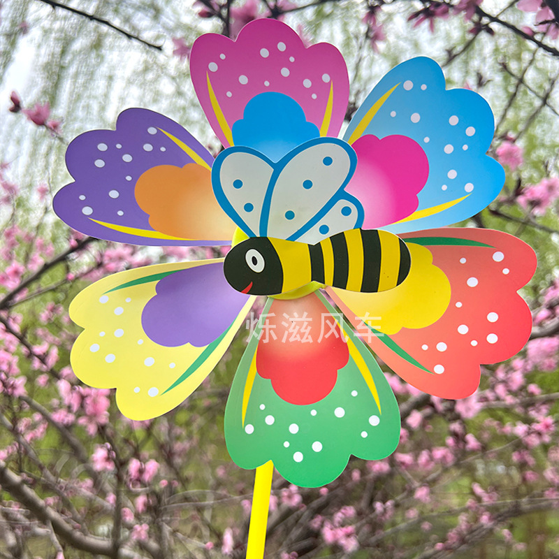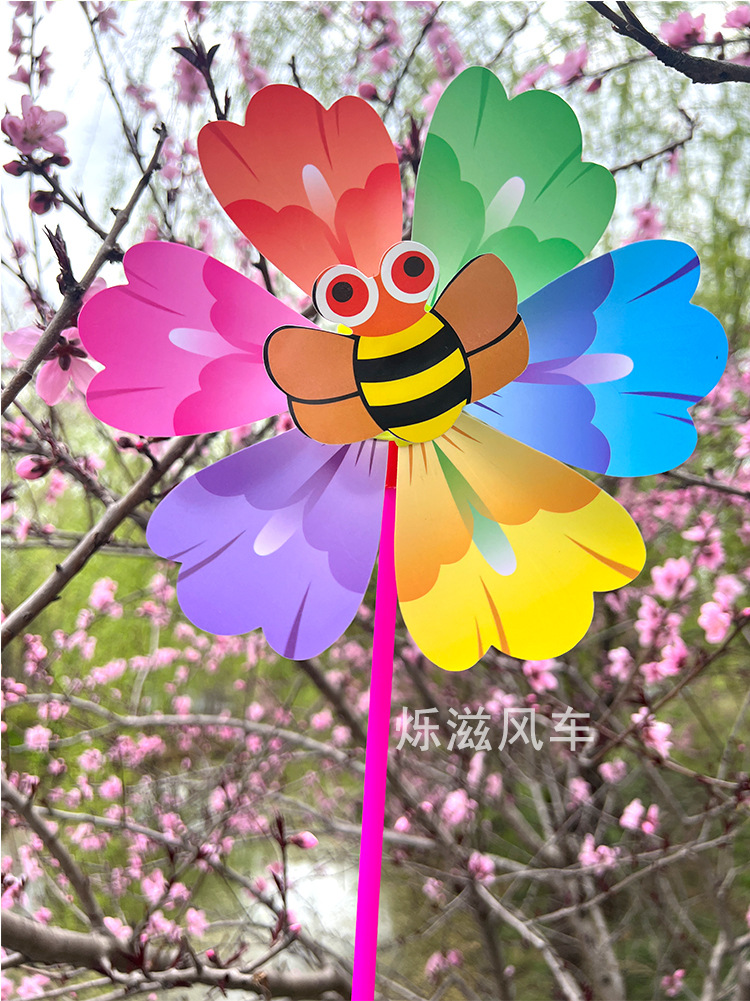 卡通花型昆虫风车厂家批发幼儿园儿童玩具手持户外地摊推礼品风车