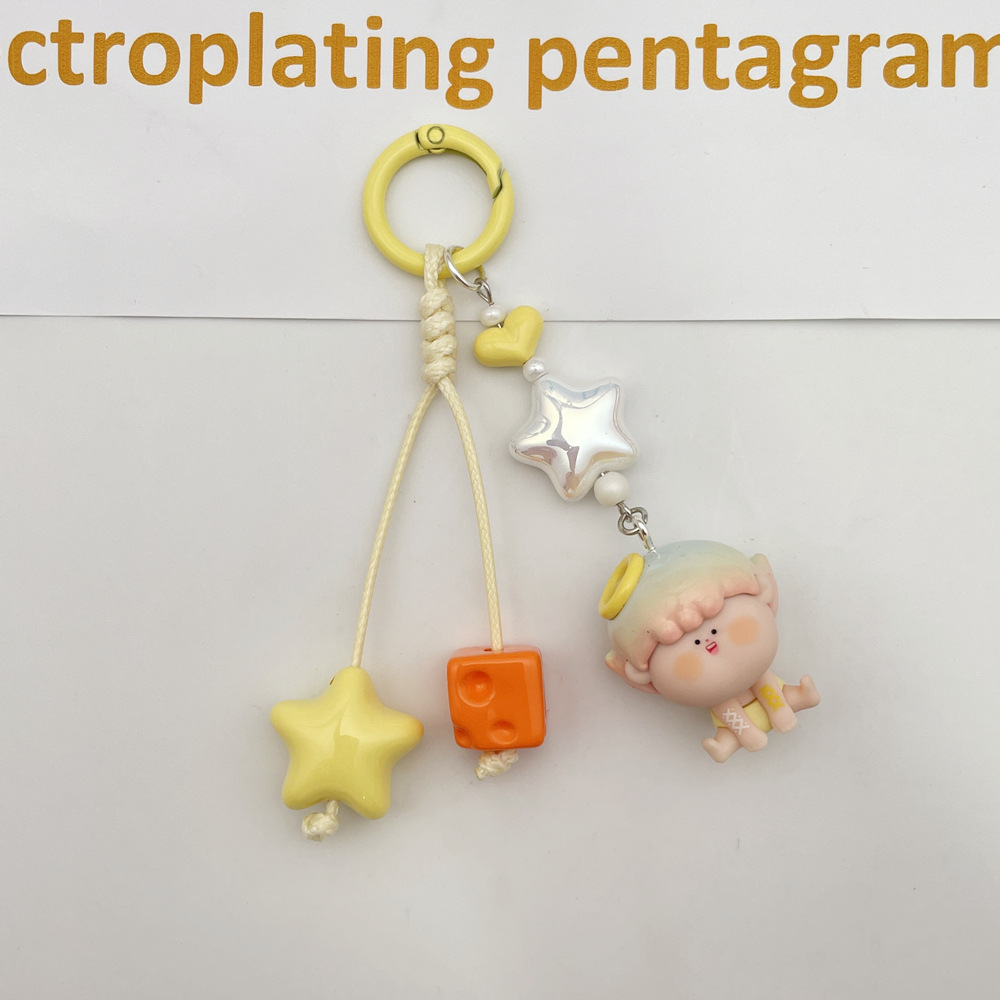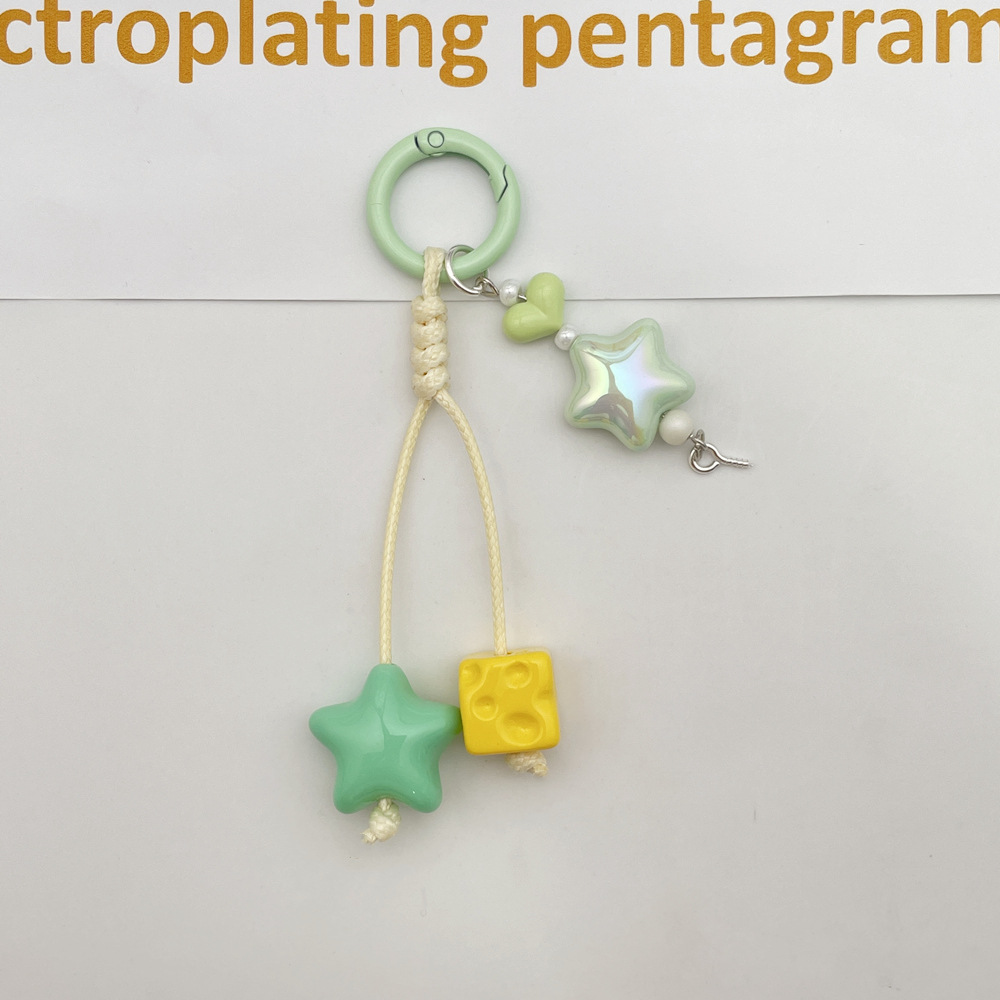 彩色UV镀五角星手工编绳钥匙扣手机包包DIY盲盒萌粒饰品配件挂件