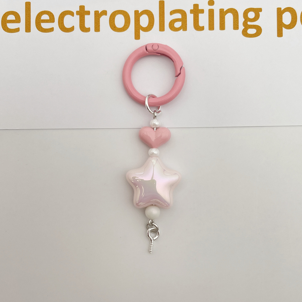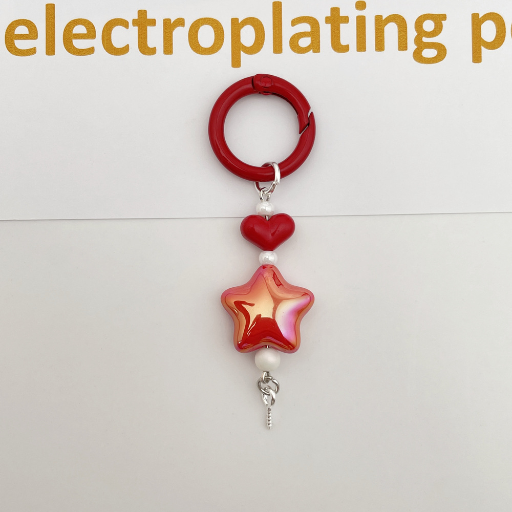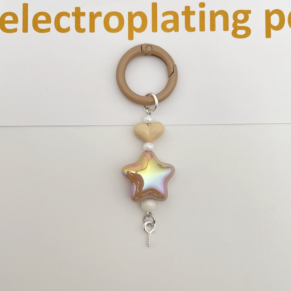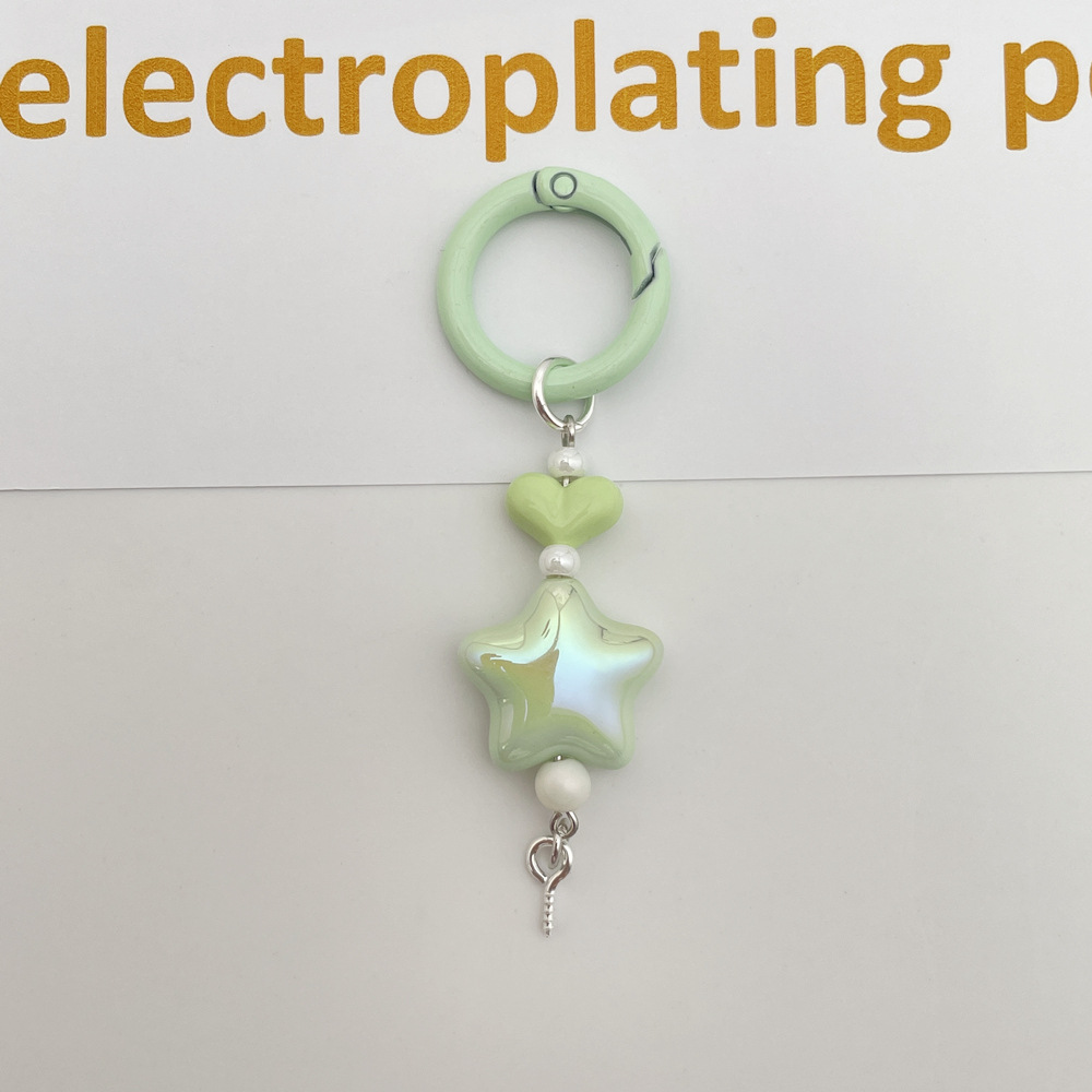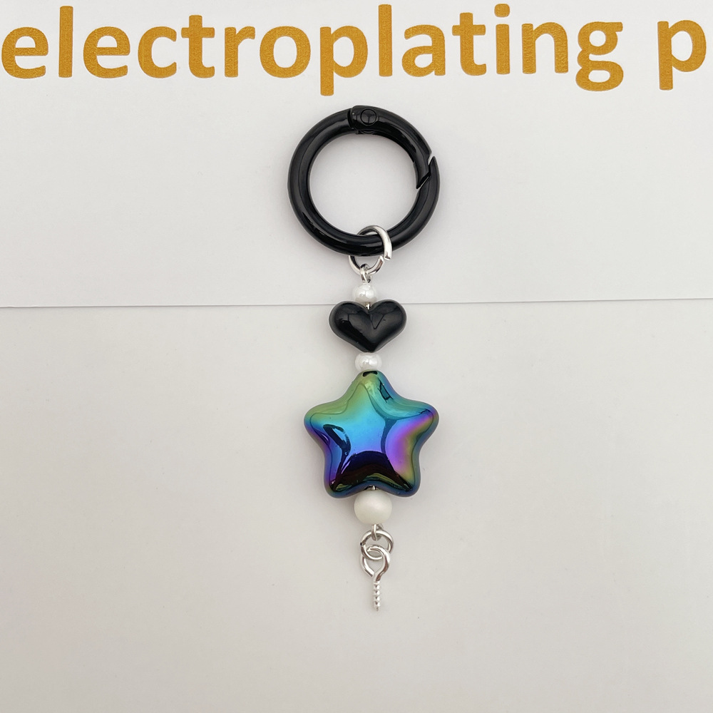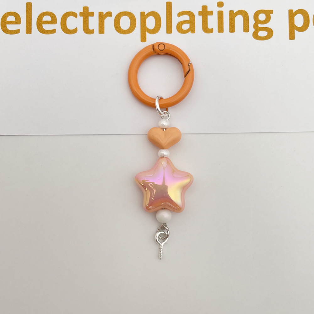 新款彩色光学电镀五角星钥匙扣手机链包包挂件DIY盲盒萌粒配饰件