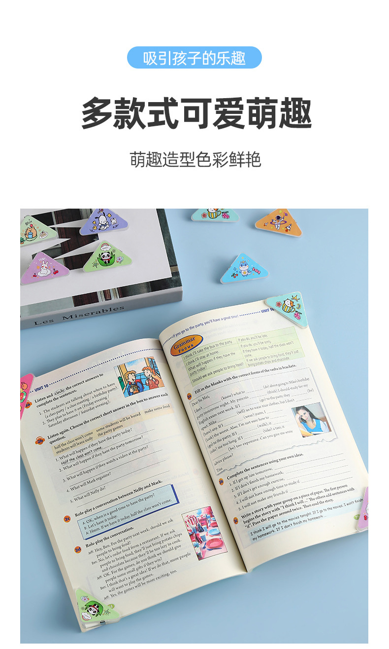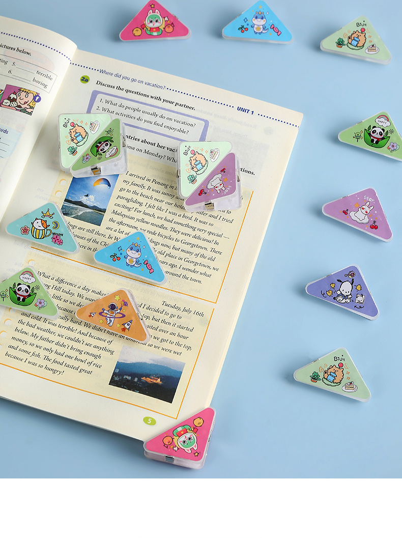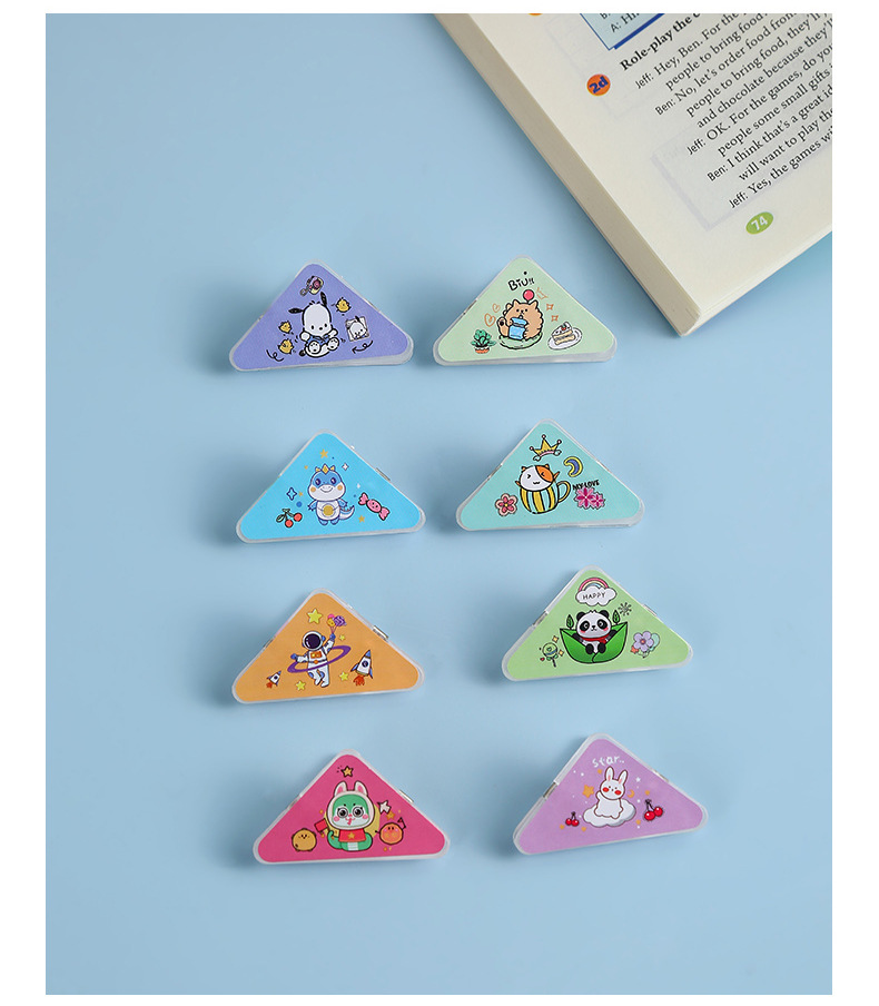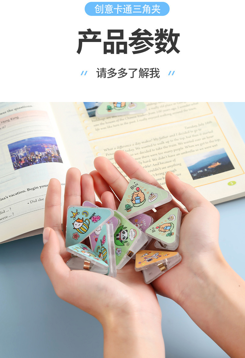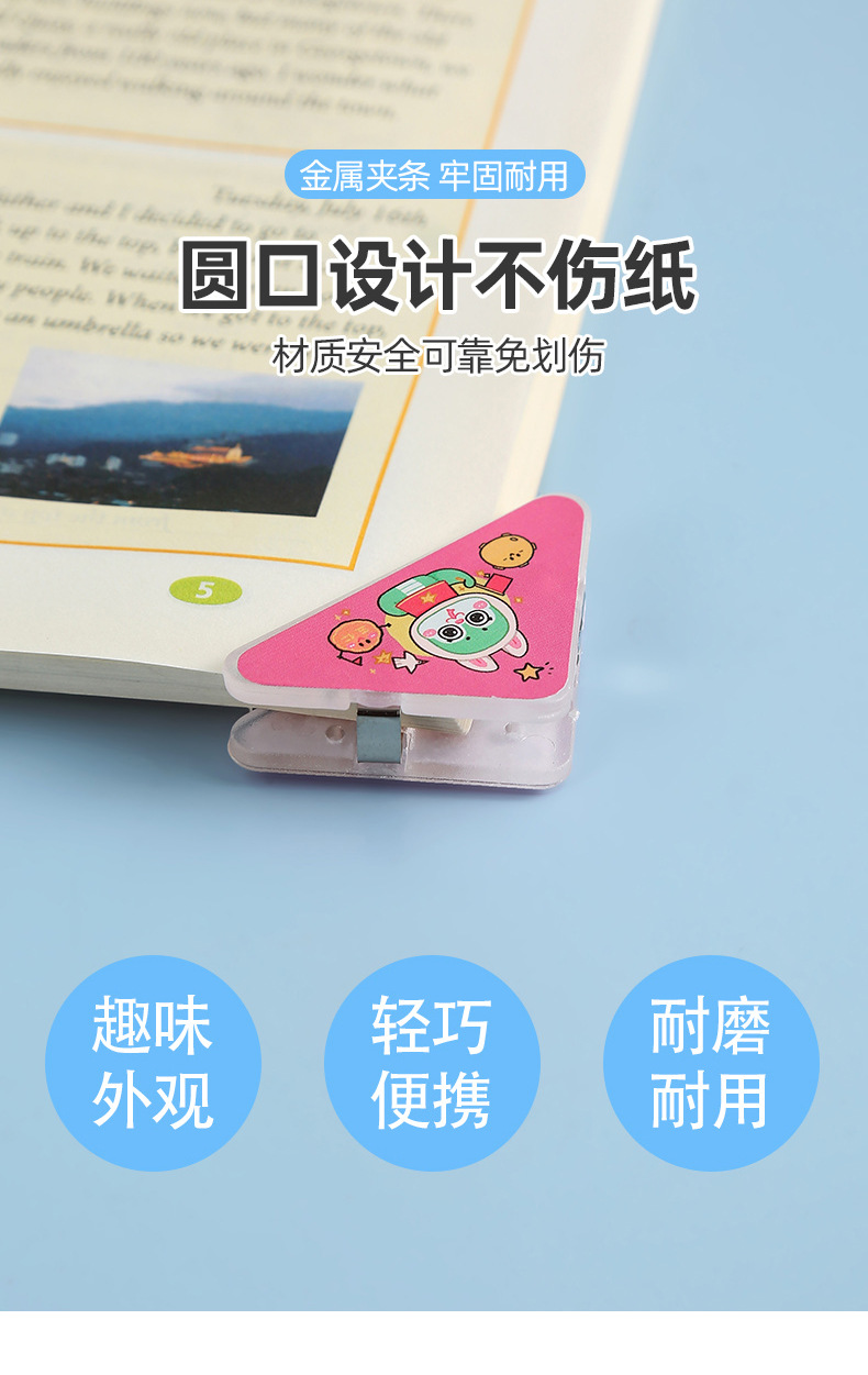 少女心卡通三角夹亚克力文件防卷夹学生pp便签夹办公试卷边角夹