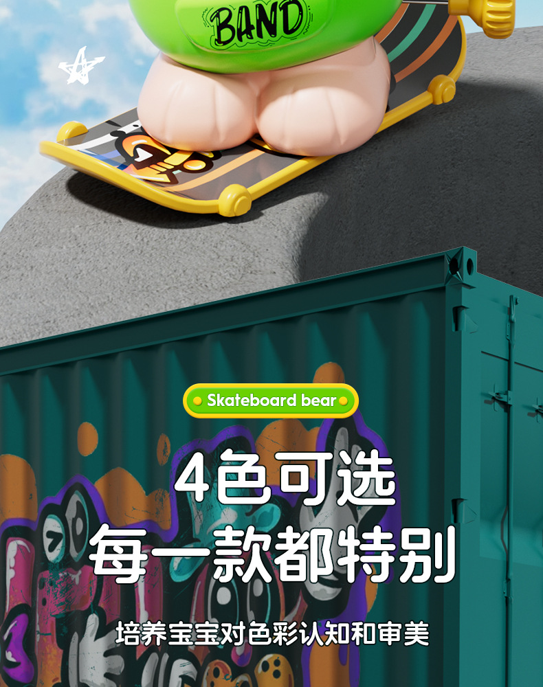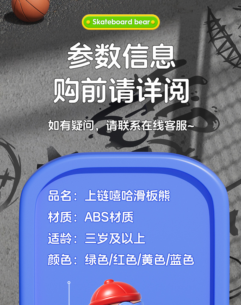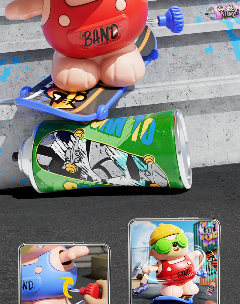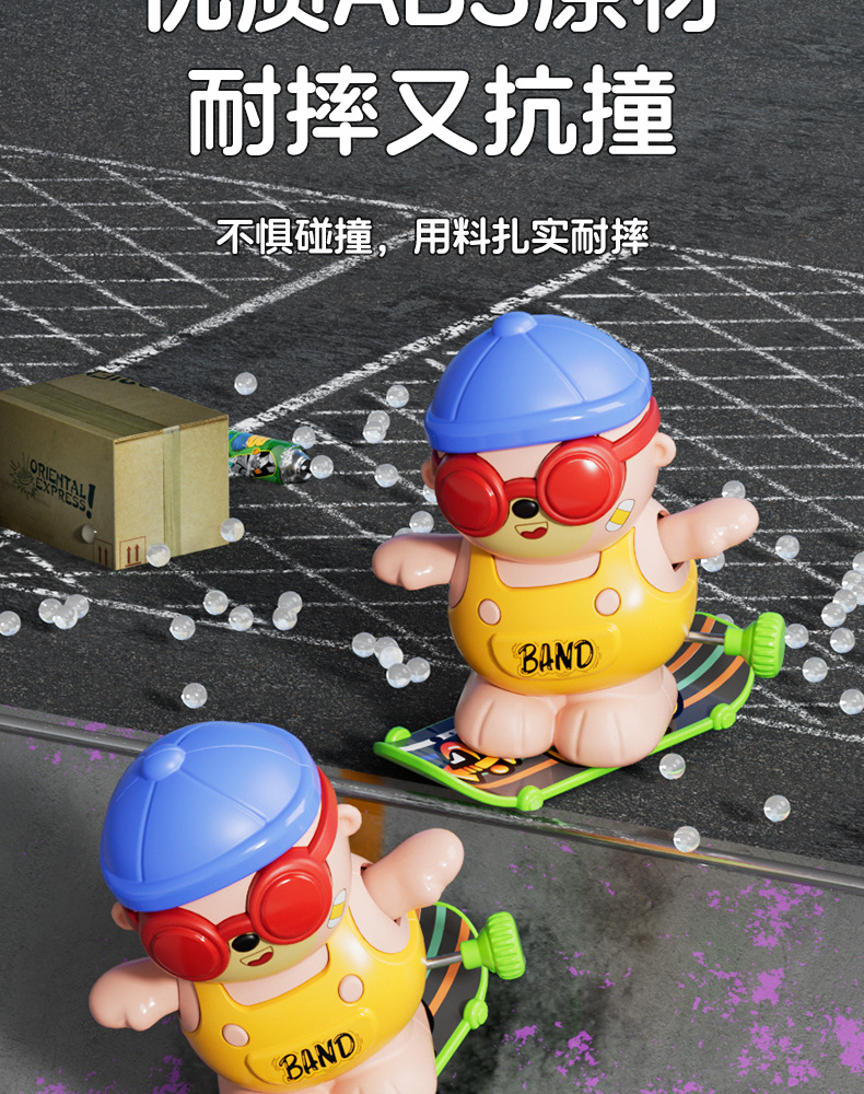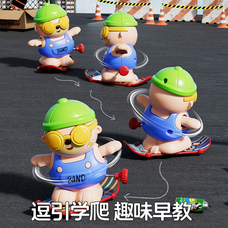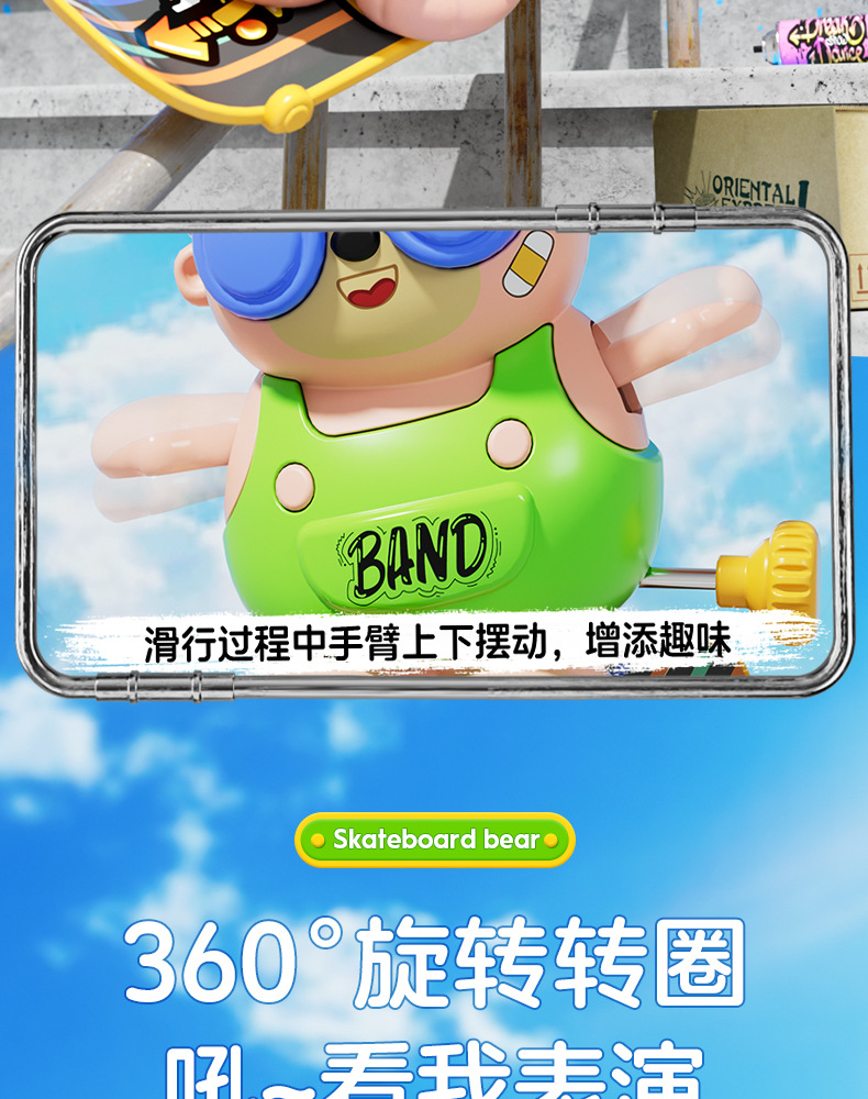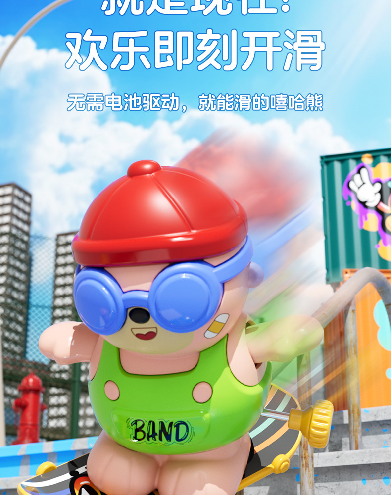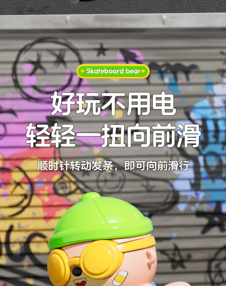 批发儿童发条上链旋转滑板嘻哈小熊玩具上弦卡通萌趣动物玩具益智