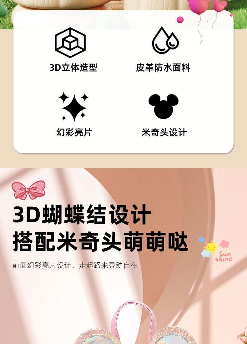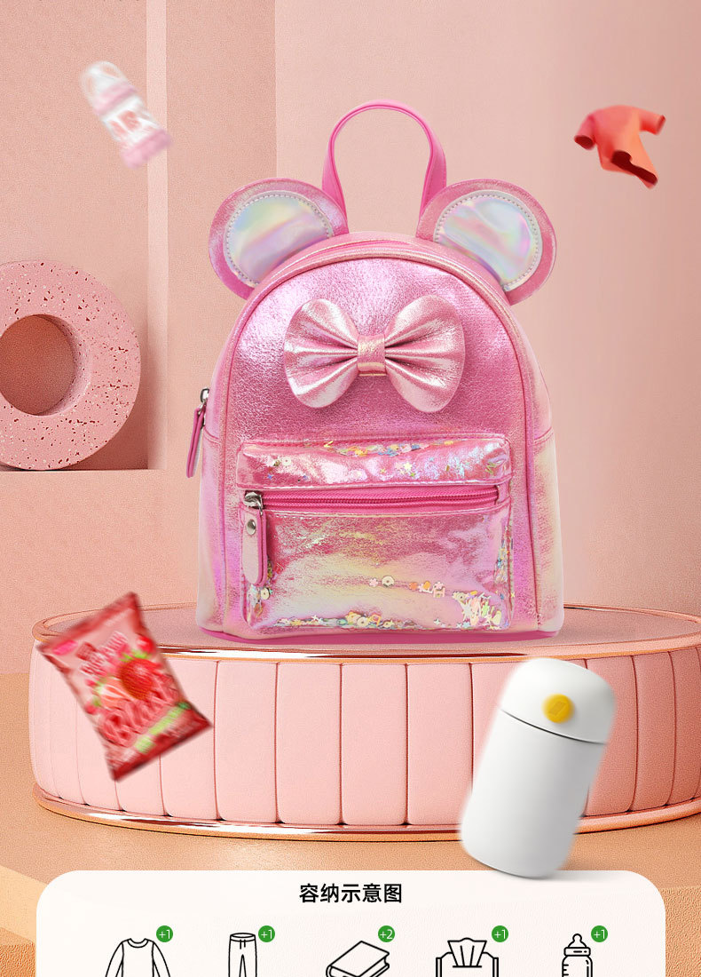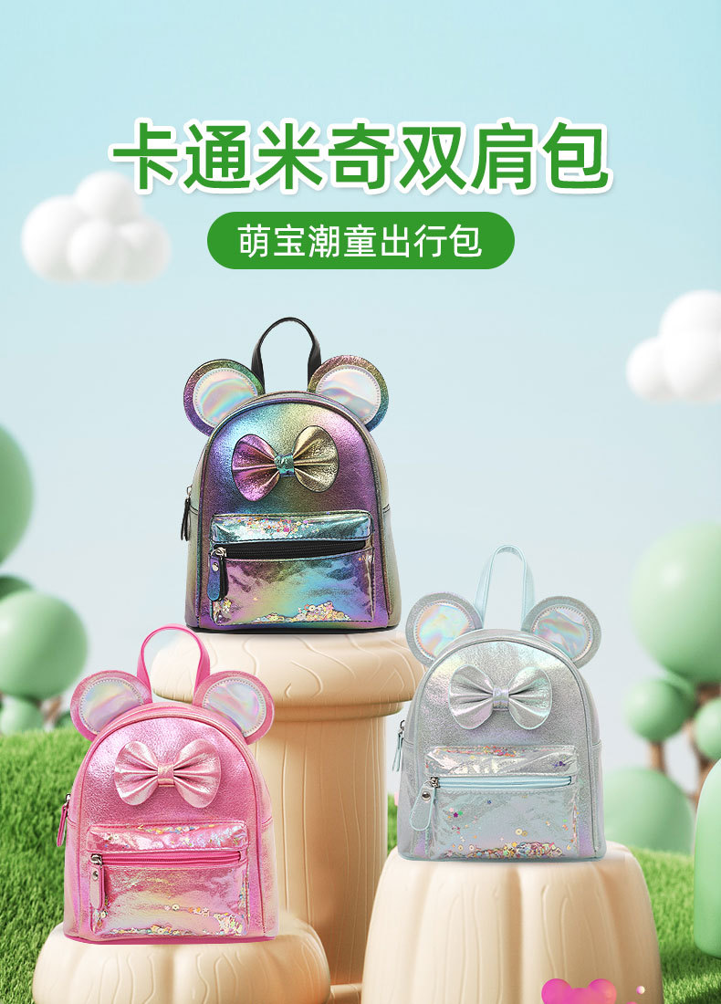 新款亮片儿童潮流双肩包米奇卡通蝴蝶结公主女童时尚可爱儿童包包