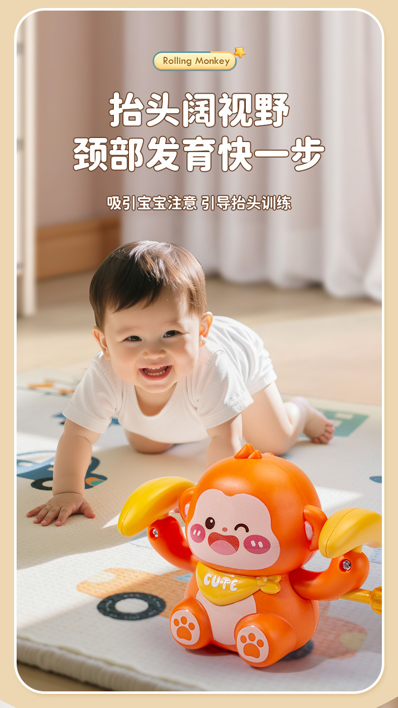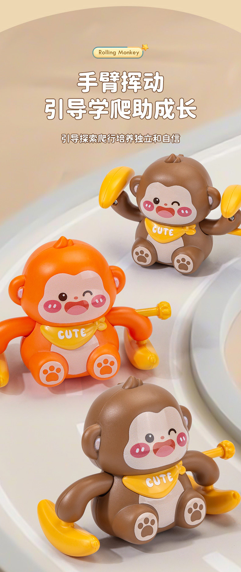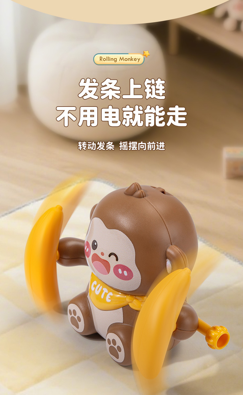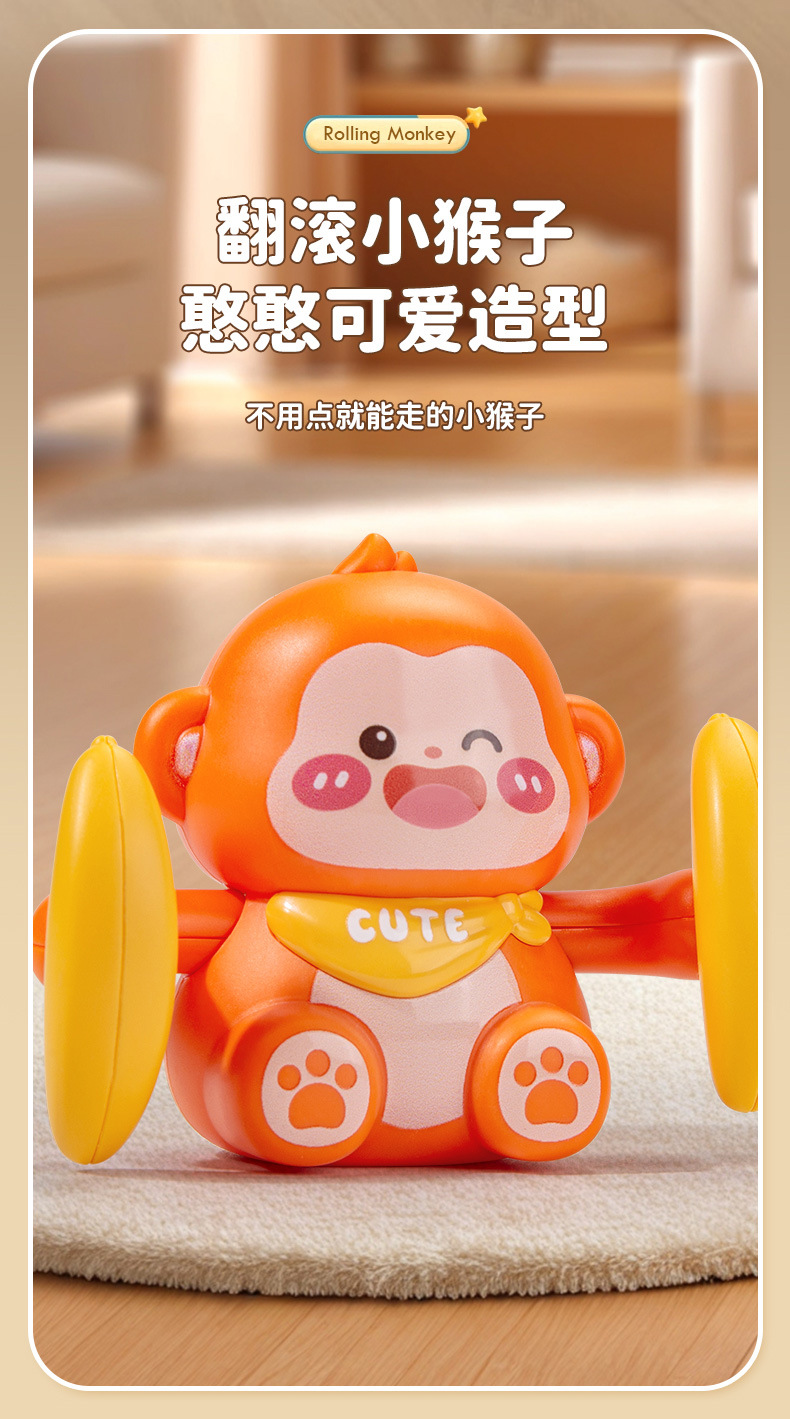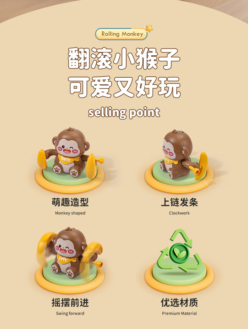 批发儿童翻滚猴子上链玩具会翻跟斗的小猴子婴儿抬头爬行发条