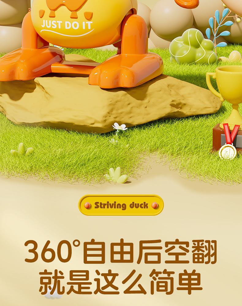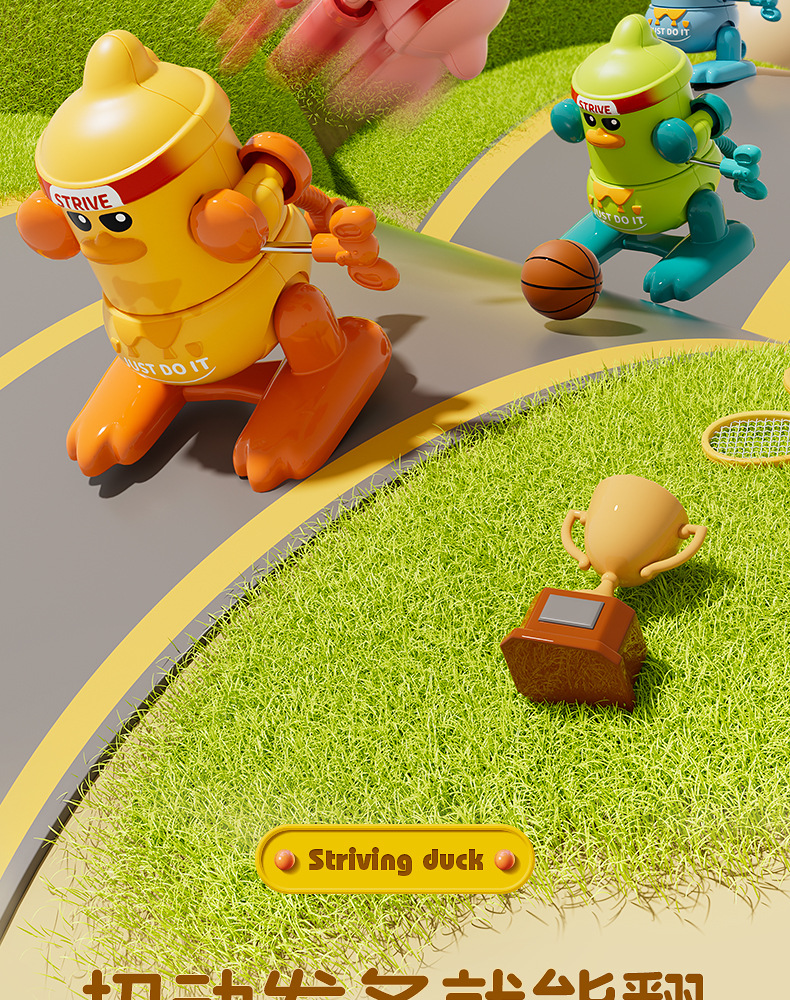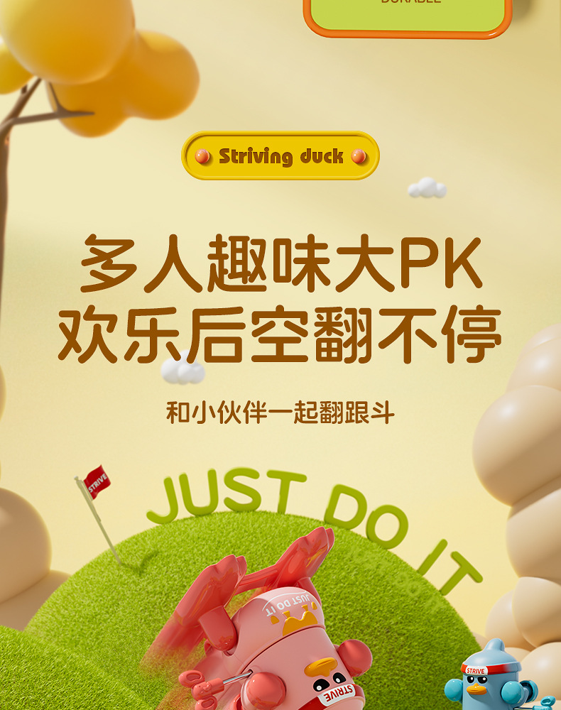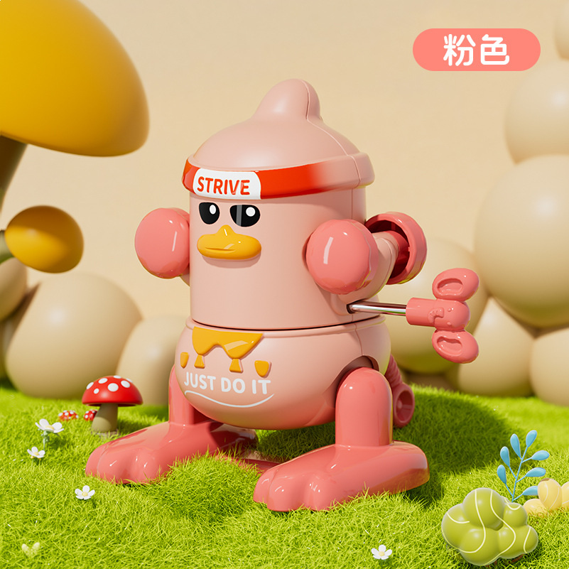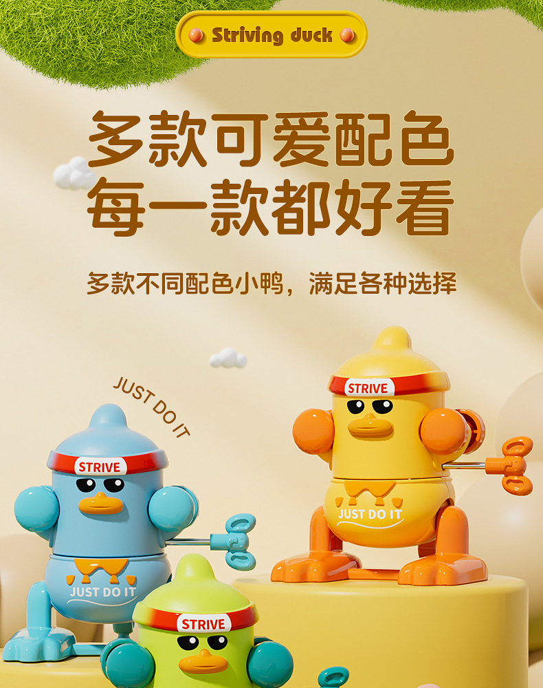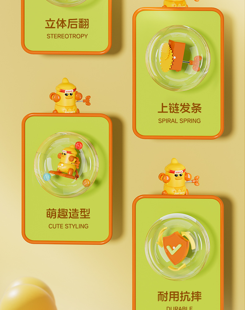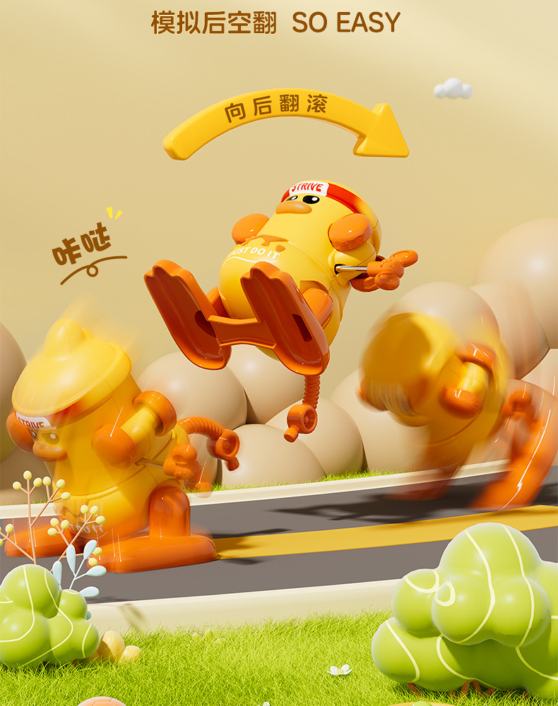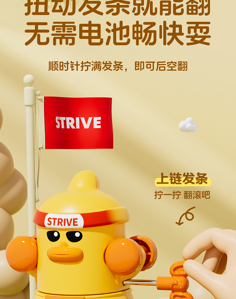 批发儿童发条上链翻跟斗小鸭玩具上弦会翻跟斗卡通萌趣动物益智代