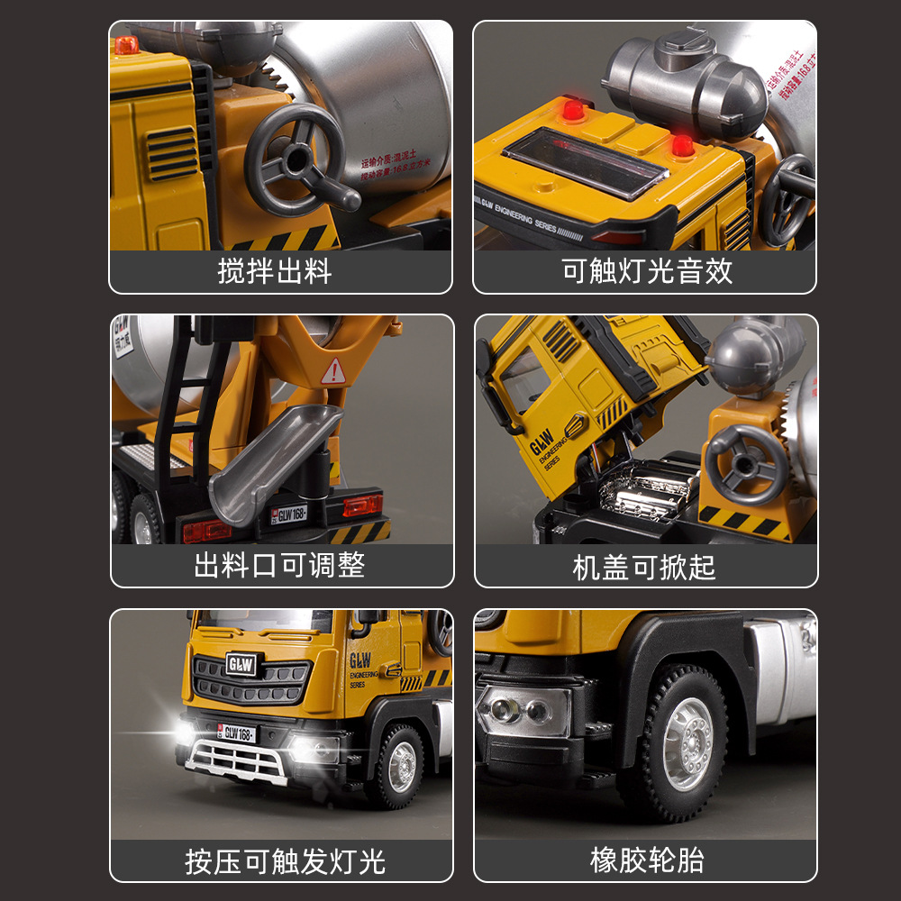 钢力威大号合金吊车玩具车儿童起重机模型工程车套装男孩搅拌车