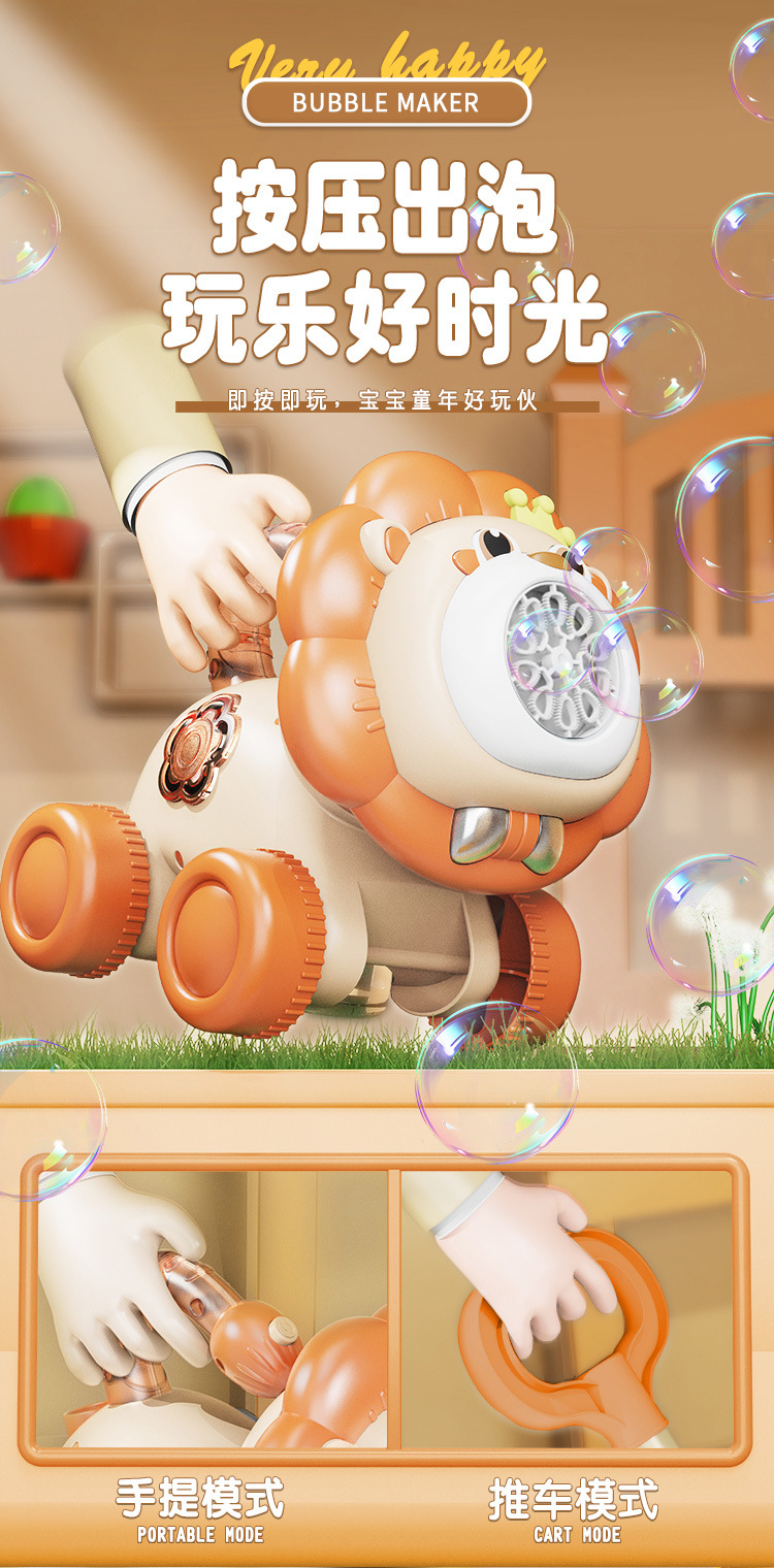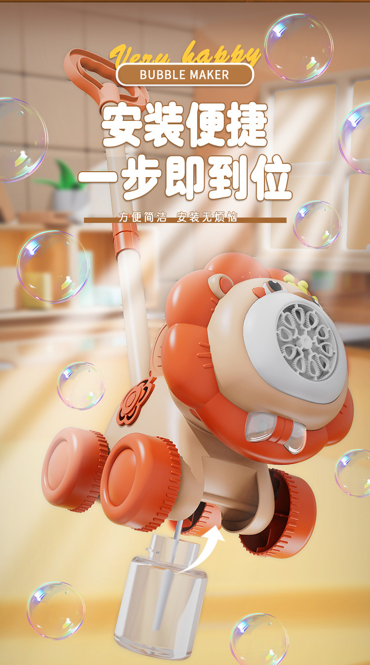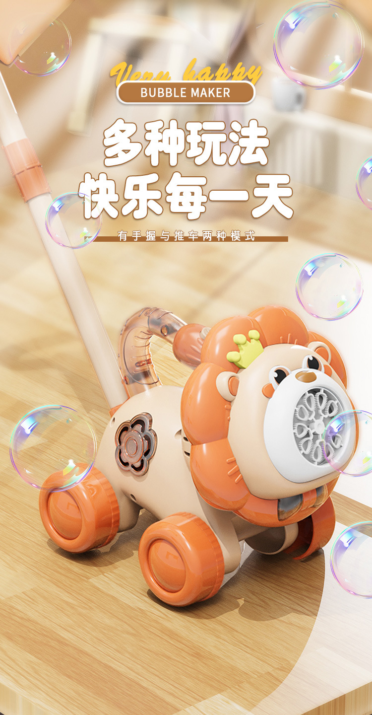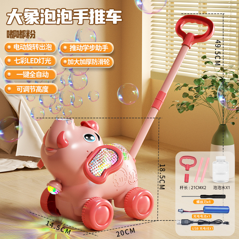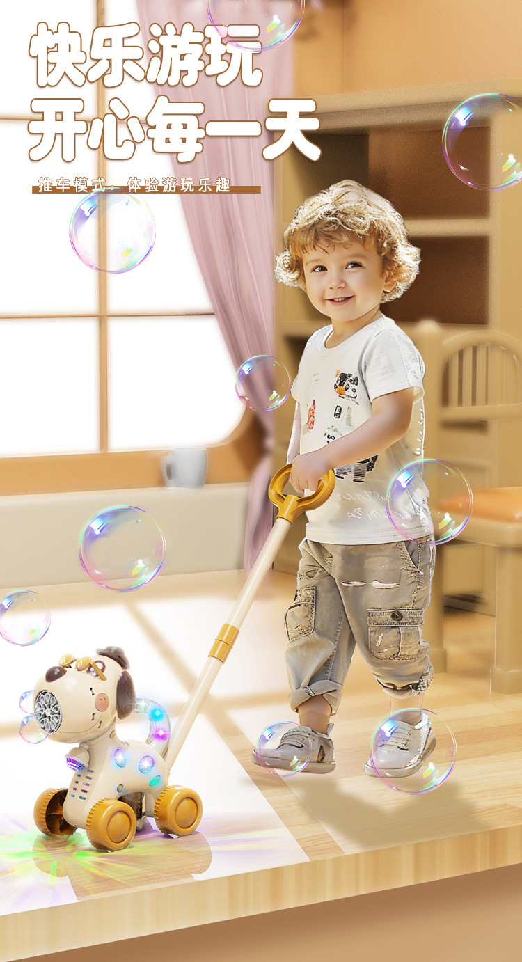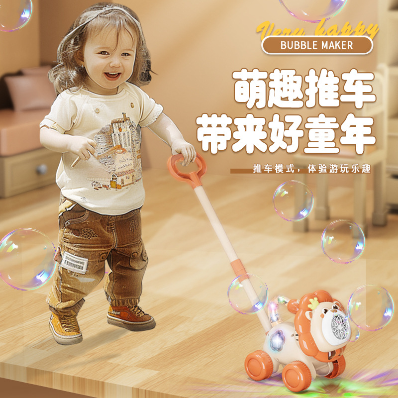 网红同款全自动手推吹泡泡机萌趣动物造型儿童学步车推推乐男孩女