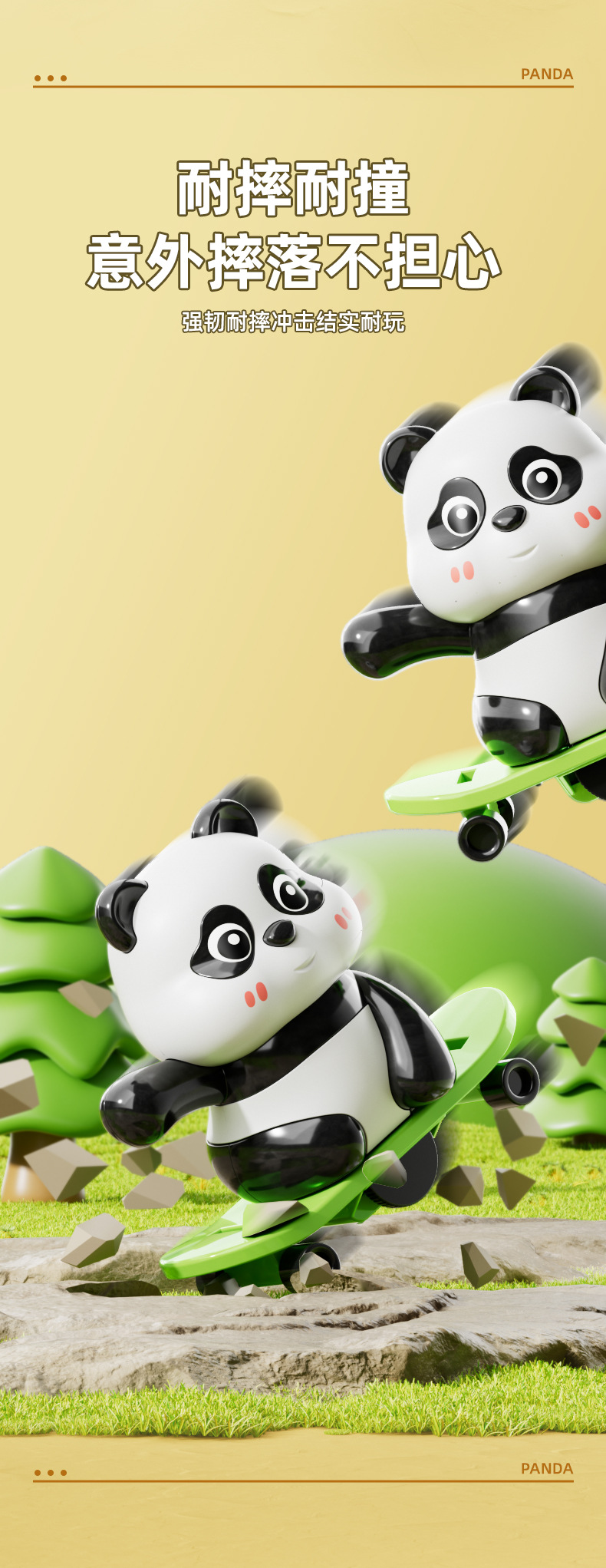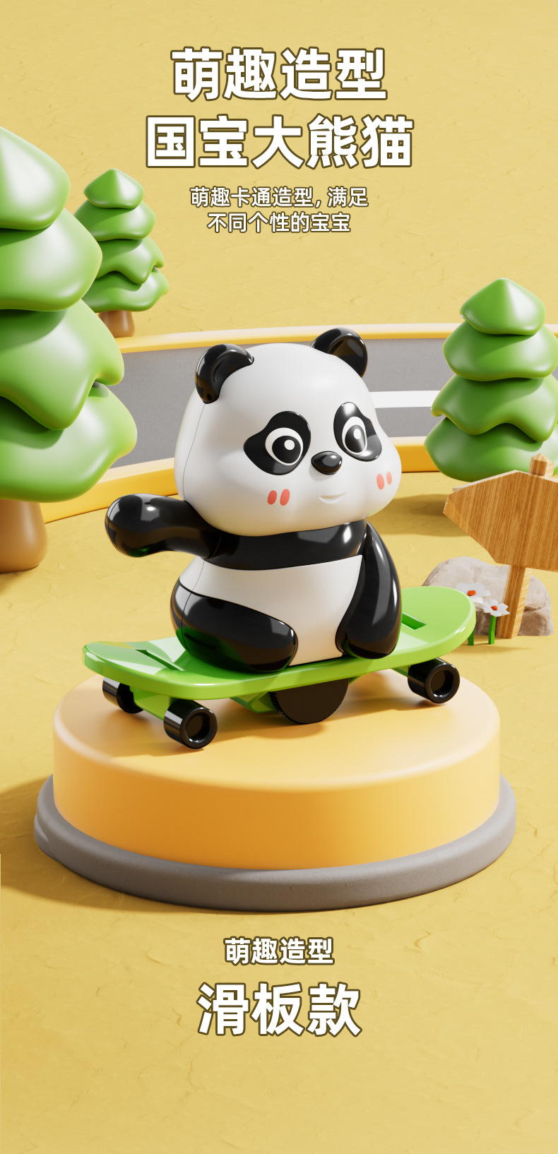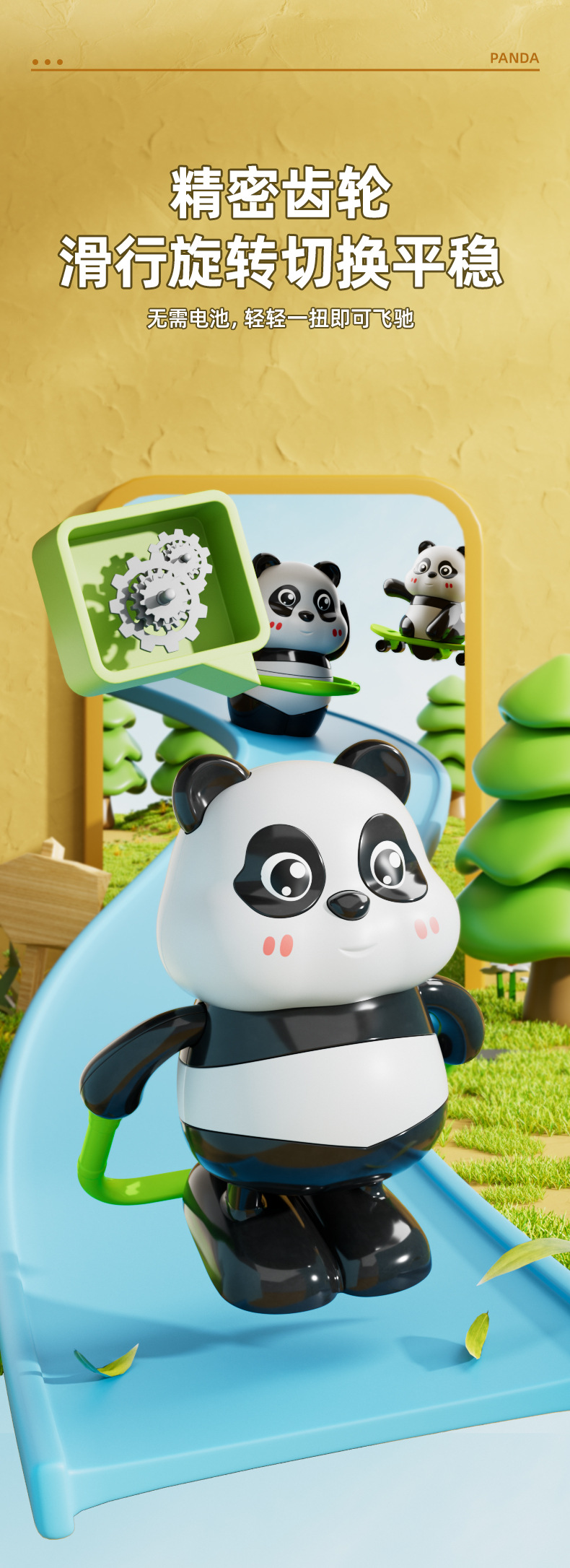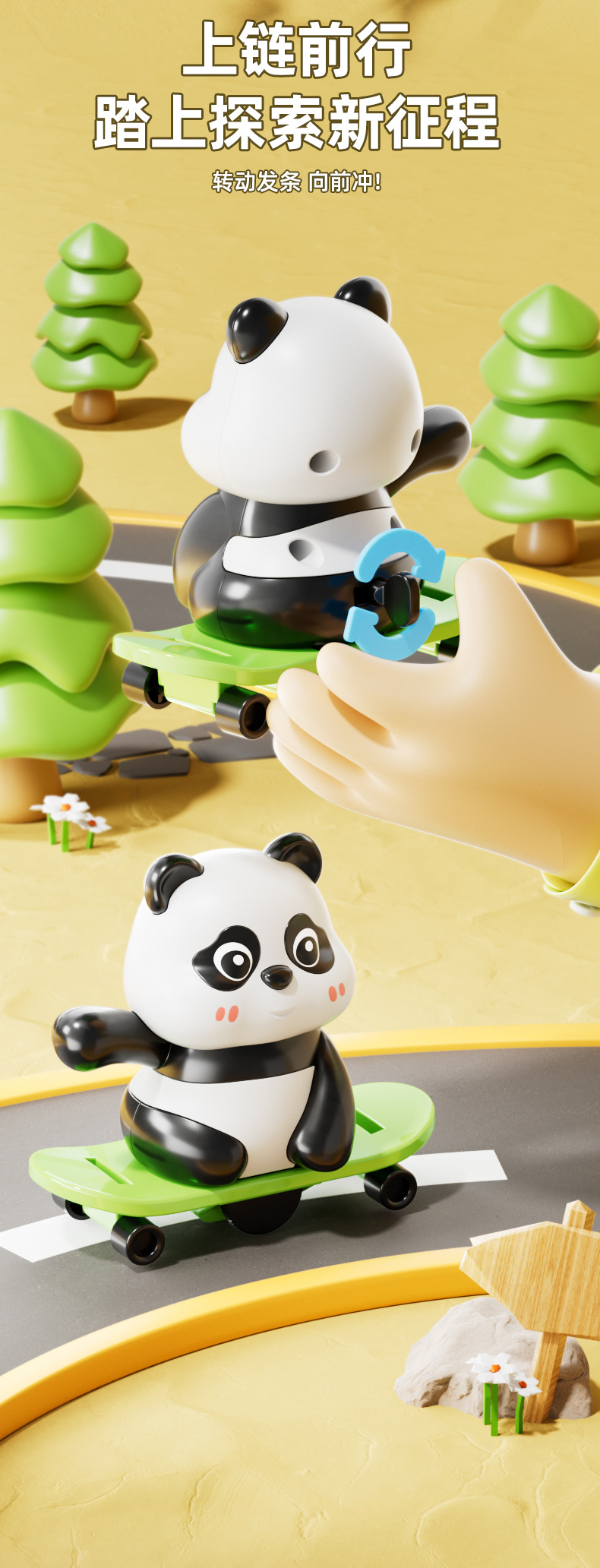 上链上弦发条卡通熊猫玩具呼啦圈跳绳滑板宝宝婴儿早教益智批发代