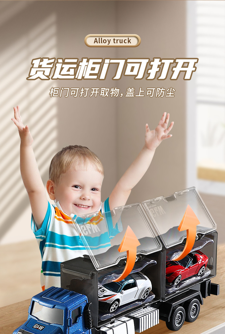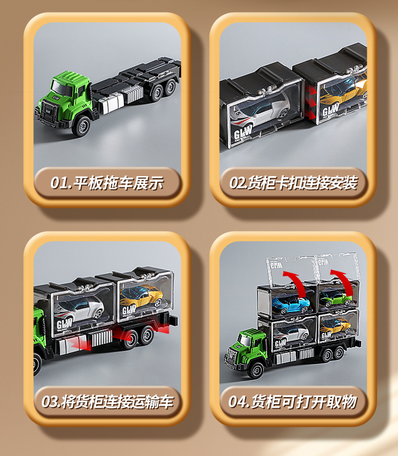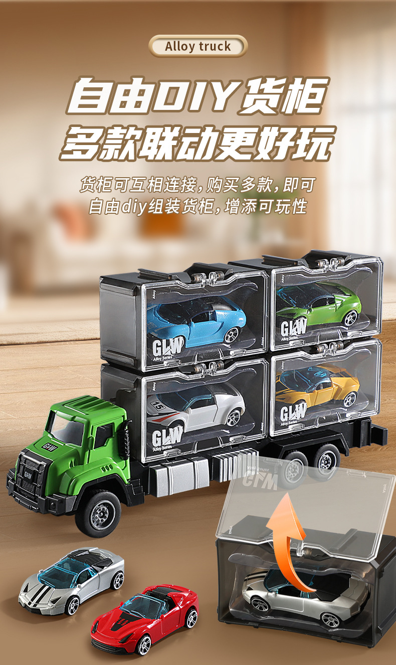 钢力威儿童合金货柜车拖车玩具集装收纳运输车宝宝卡车小汽车模型