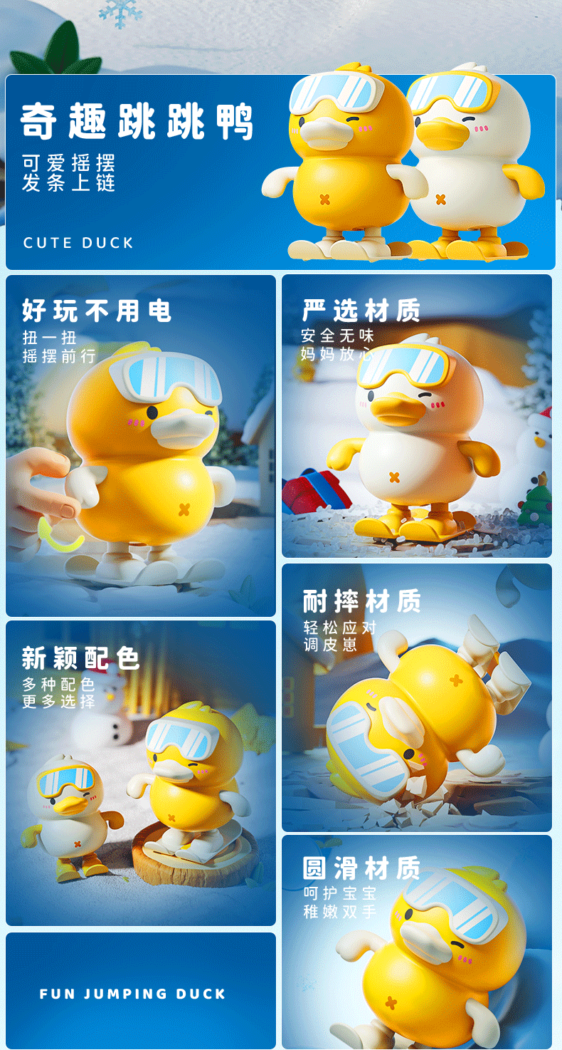 批发儿童上链发条跳跳鸭玩具卡通奇趣滑板小鸭宝宝婴儿早教益智代