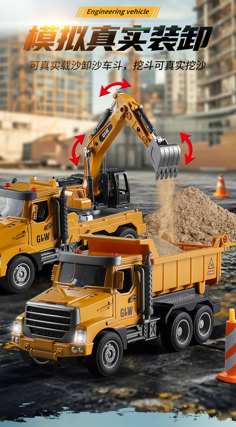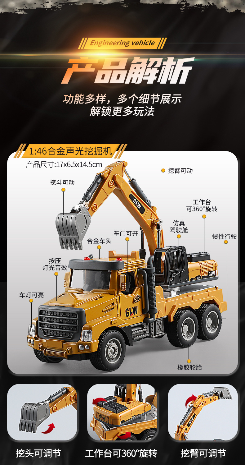 钢立威儿童合金钻地机玩具仿真挖掘机模型抓木挖机破拆机男孩子