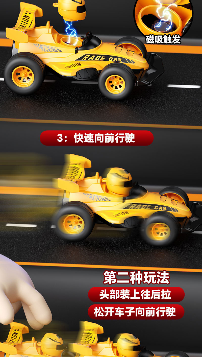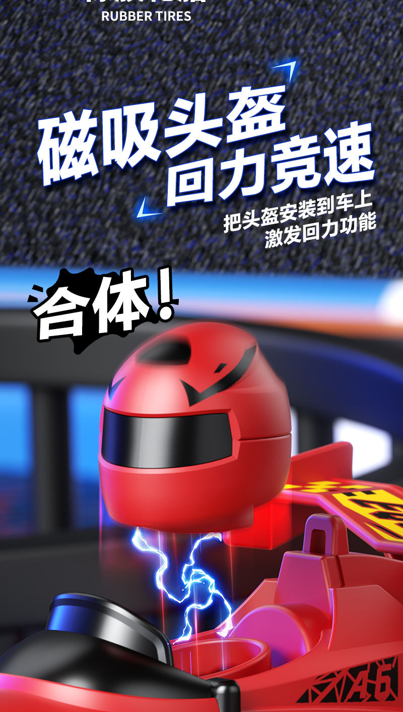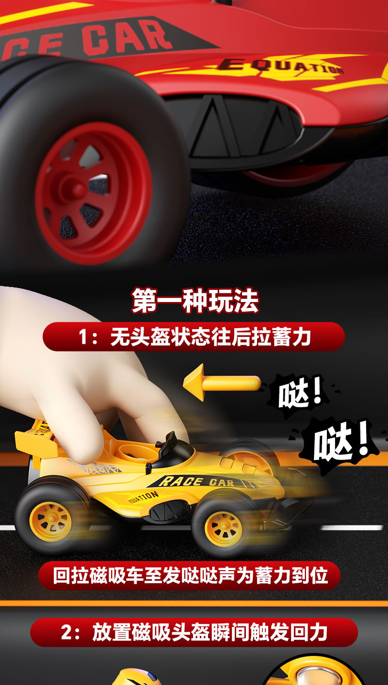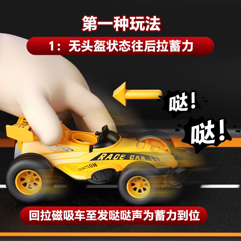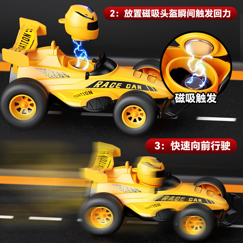 新品惯性回力磁力车功能赛车F1新奇玩法赠品玩具车头盔可摘