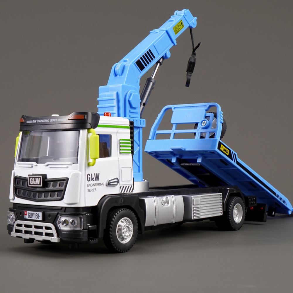 钢力威大号合金拖车玩具男孩平板运输车道路救援车仿真工程车模型