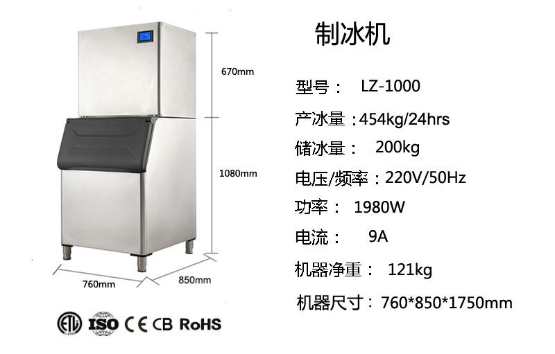 商用全自动500KG分体式制冰机方冰厂家餐饮奶茶店酒吧KTV外贸跨境