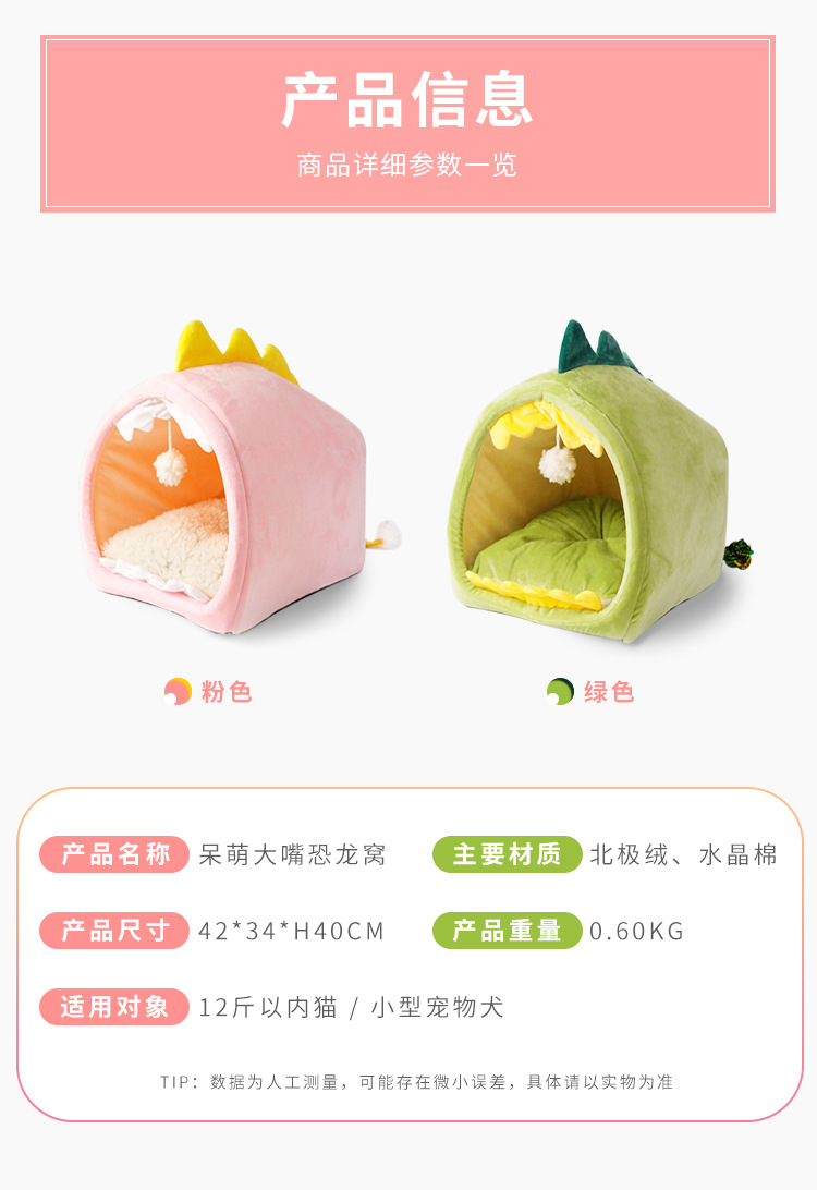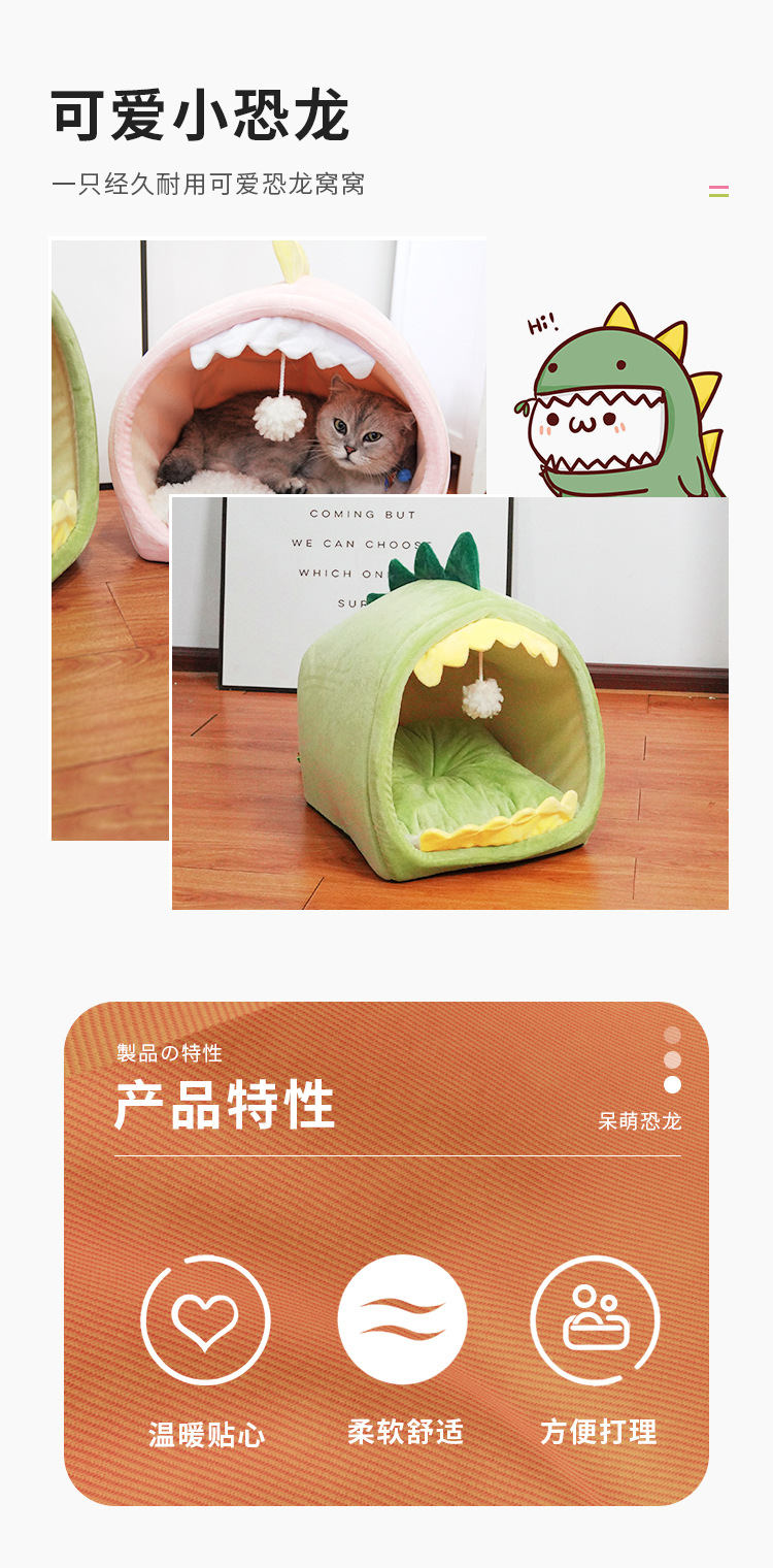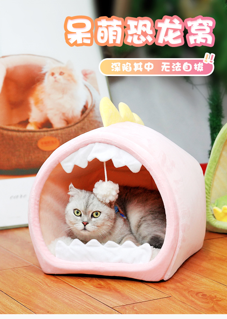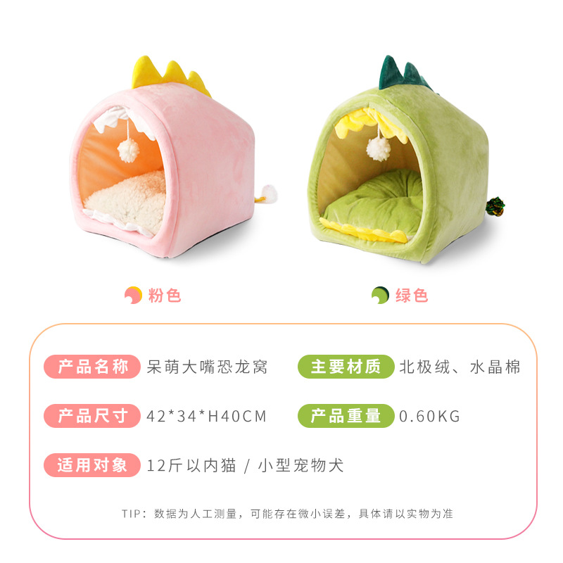 猫窝冬季保暖半封闭式恐龙造型猫屋狗窝四季通用可拆洗宠物用品