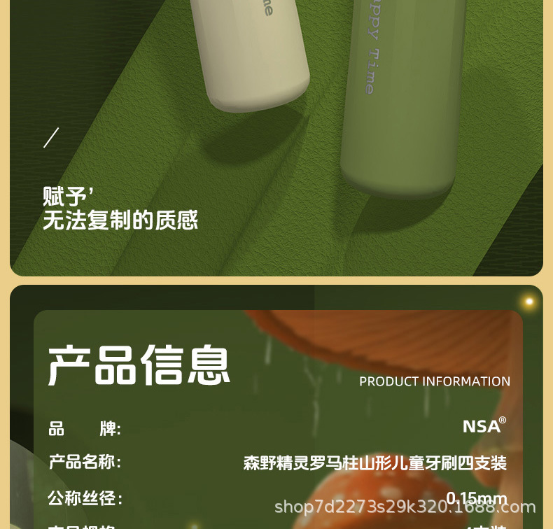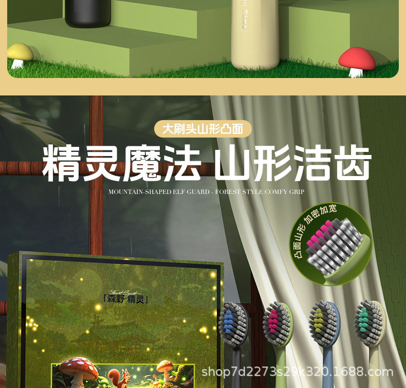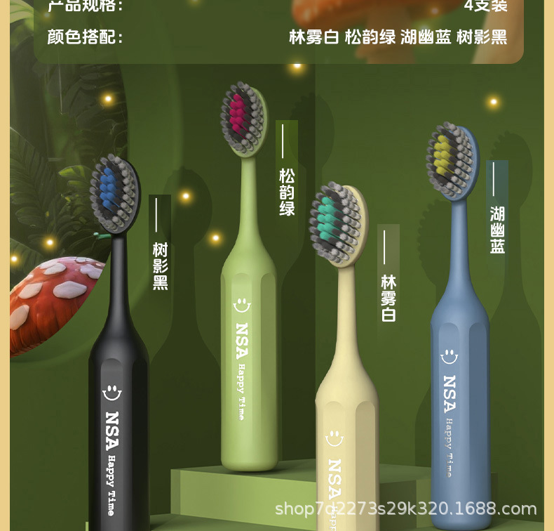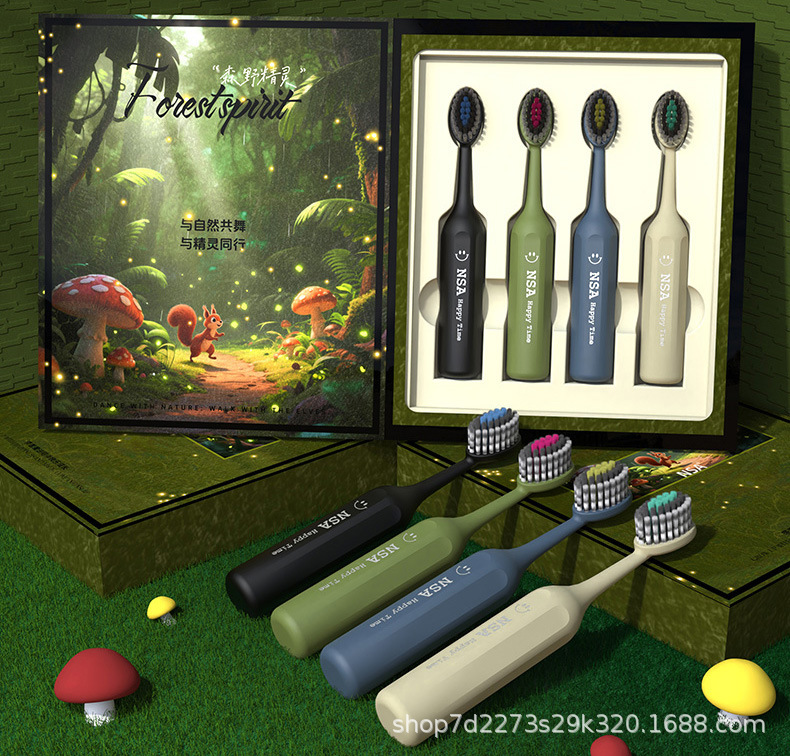 NSA【4支礼盒装】高档儿童软毛牙刷防滑可爱山型凸面洁齿护龈清洁