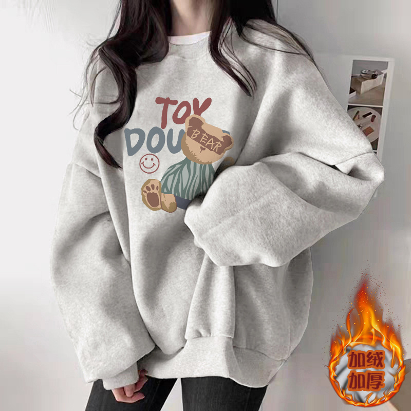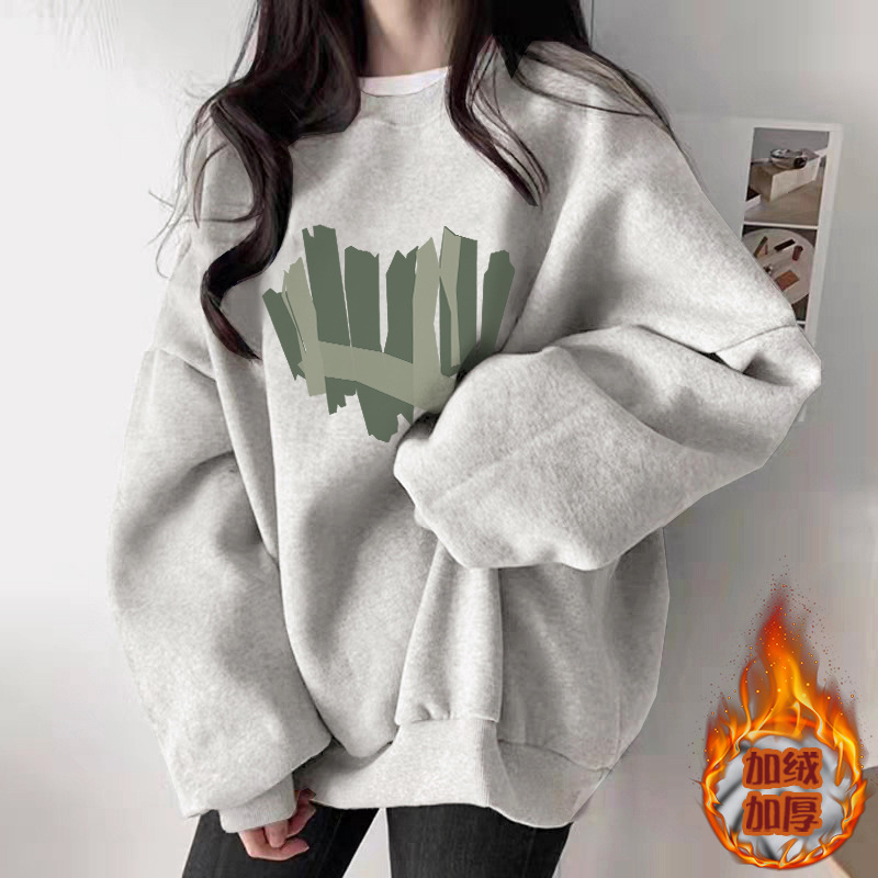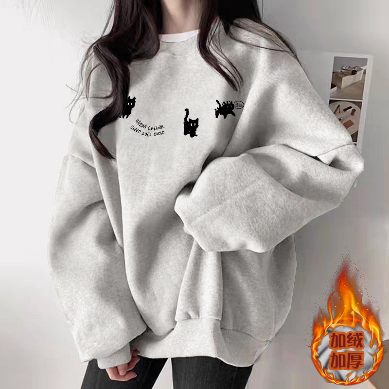 秋季白灰色圆领卫衣女2025新款爆款休闲百搭时尚洋气加绒加厚上衣
