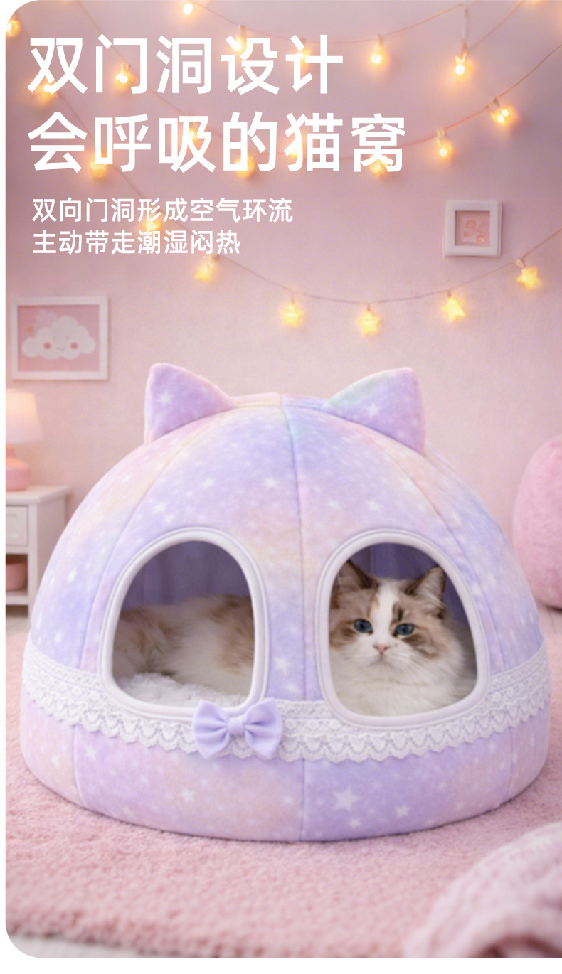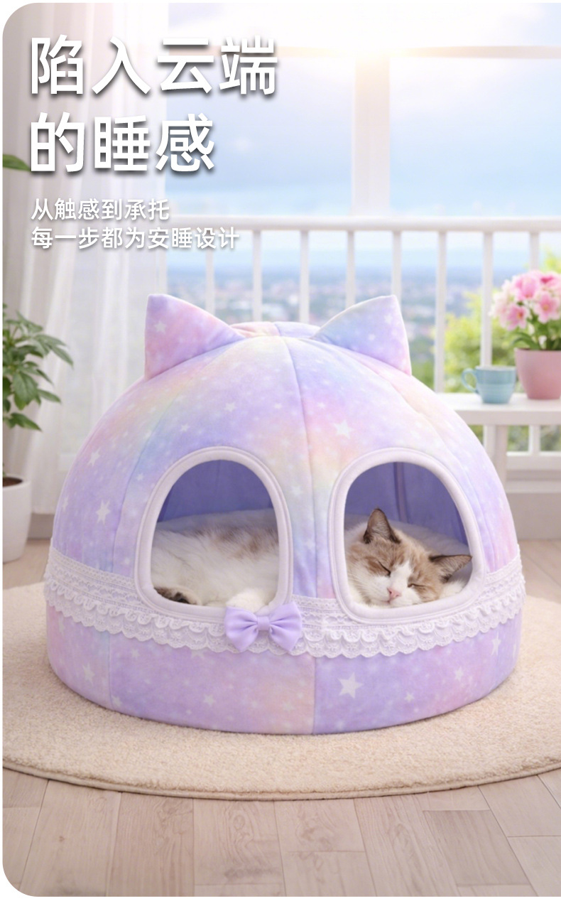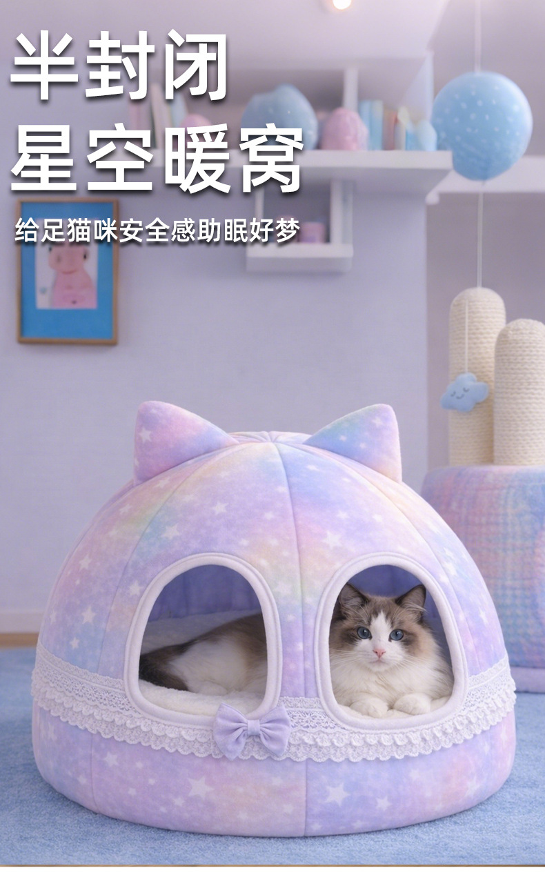 厂家直销宠物窝高颜值猫咪保暖半封闭猫窝可拆宠物用品舒适狗窝