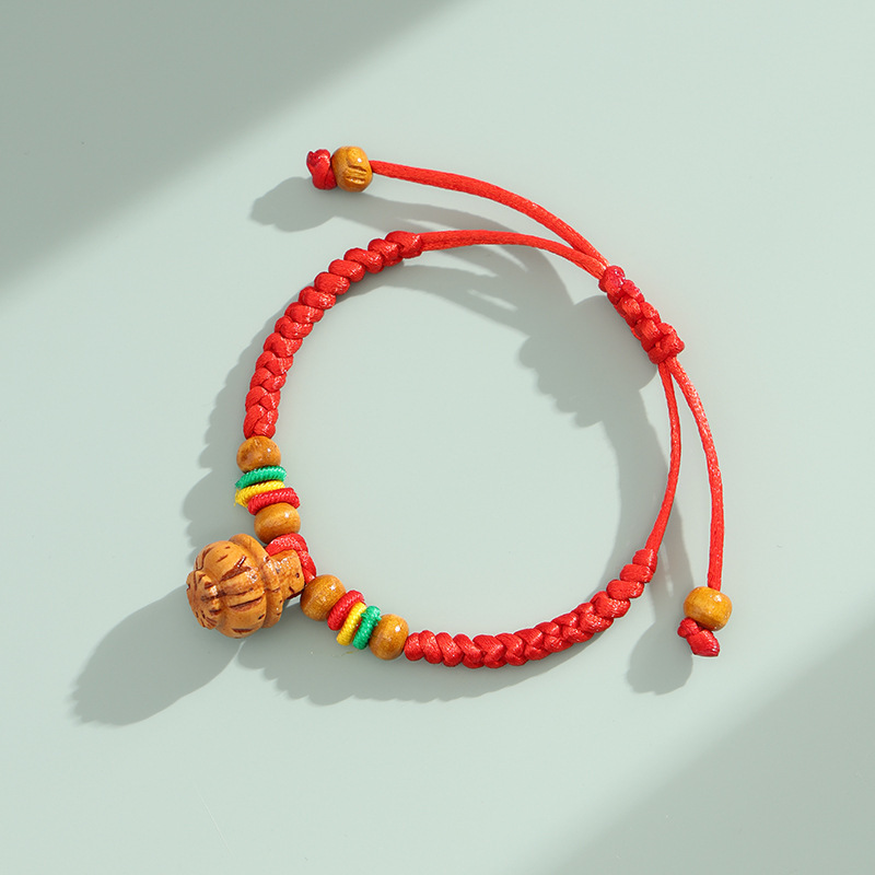 精品天然桃核手链宝宝婴儿手工金刚结编织桃蓝红绳儿童母婴店手绳