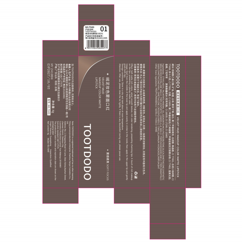 Toot Dodo绒泥妆色雾面口红哑光丝绒不易掉色秋冬提气色显白唇膏