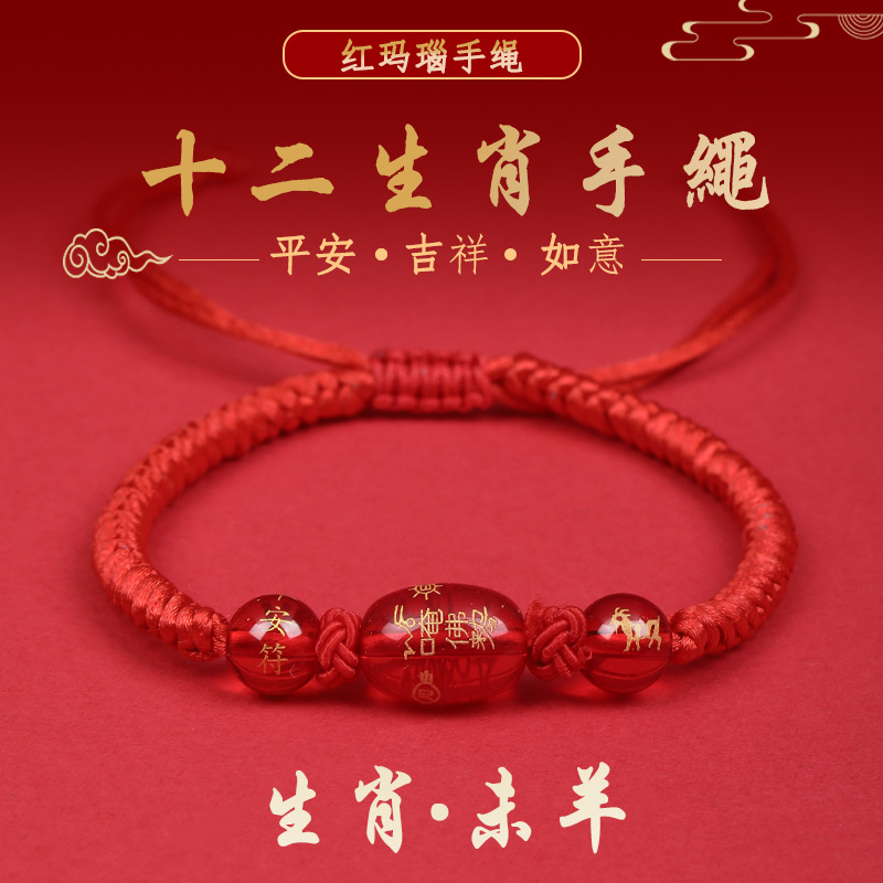 2026马年本命年红绳手链十二生肖马鼠兔牛编织玛瑙手绳男女款