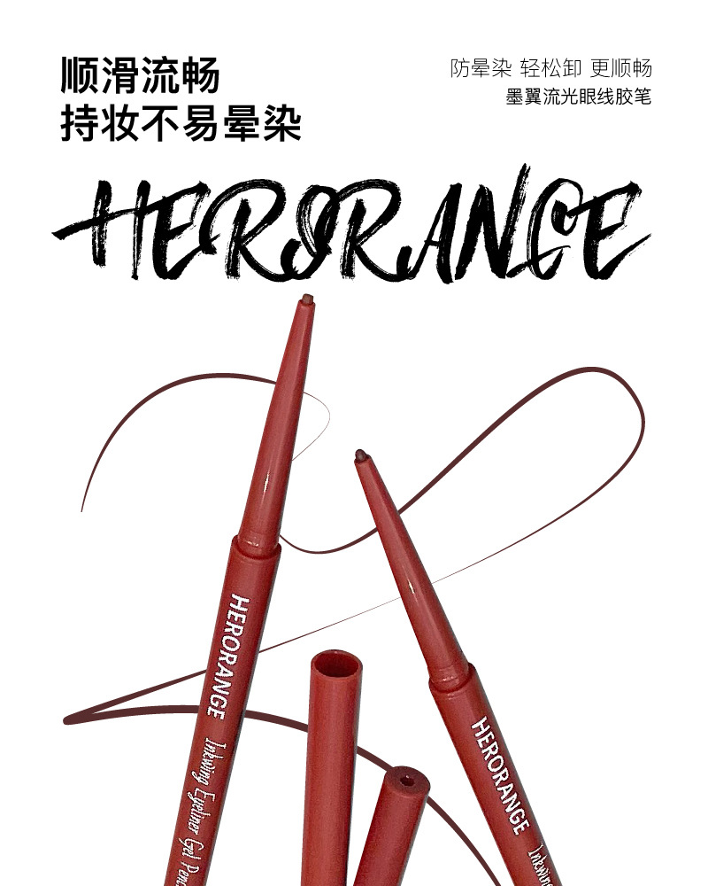 HERORANGE~墨翼流光眼线胶笔自然持久防水防汗卧蚕下至极细眼线笔