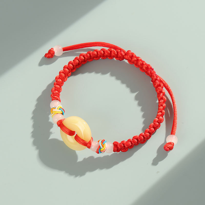 创意新款红绳手链男女仿玉平安扣手工编织情侣手链饰品地摊货源