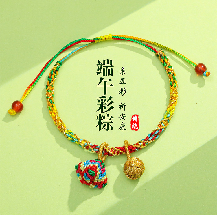端午节五彩绳手链儿童宝宝手工编织红绳成人老虎粽子香包手绳批发