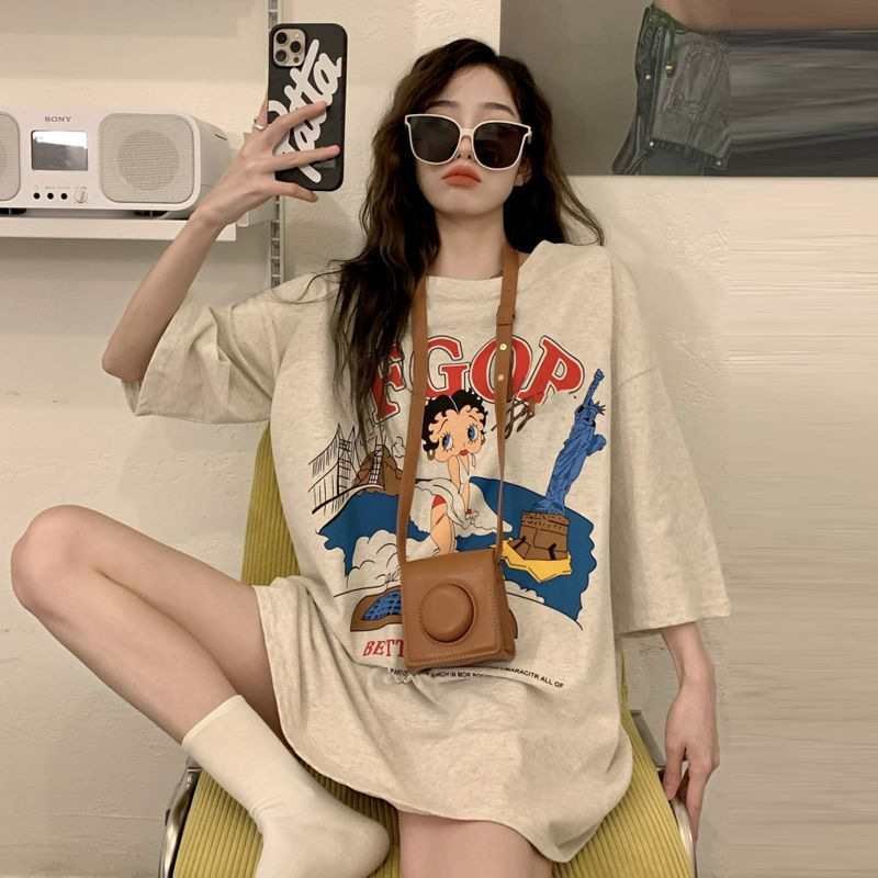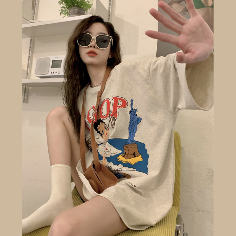 美式复古大码t恤女纯棉潮牌古着短袖ins2026新款夏季圆领上衣
