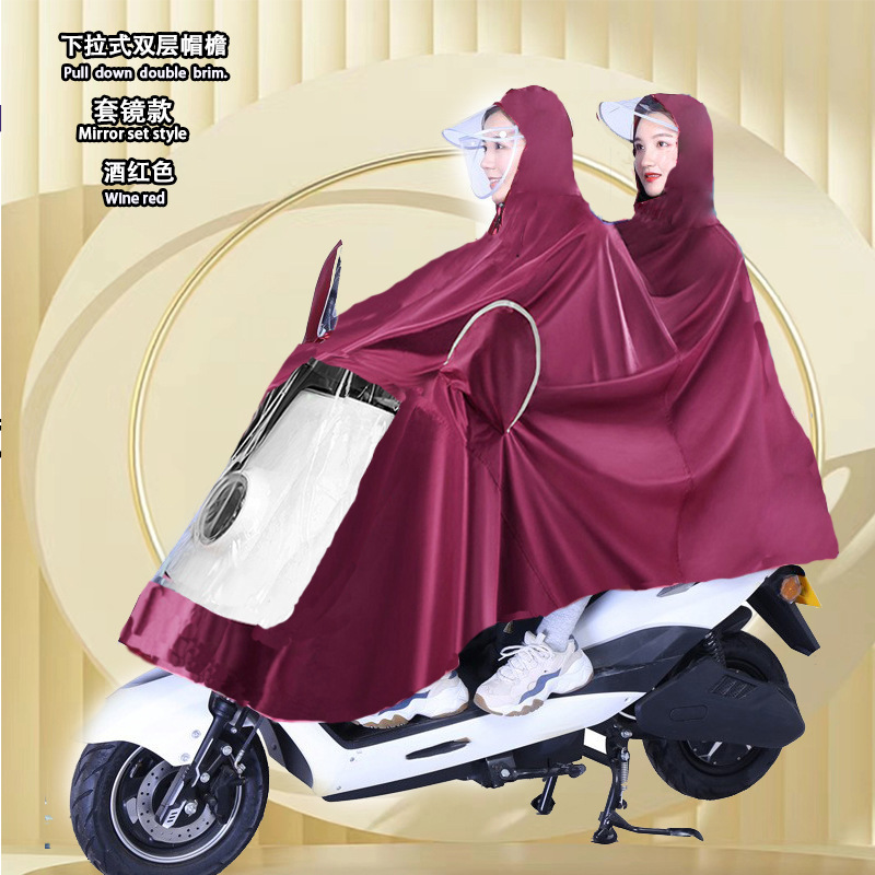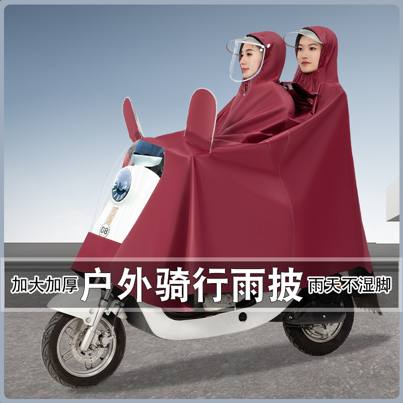 雨衣电动车摩托车雨披男女双人单人双帽檐加大加厚电瓶车骑行雨衣