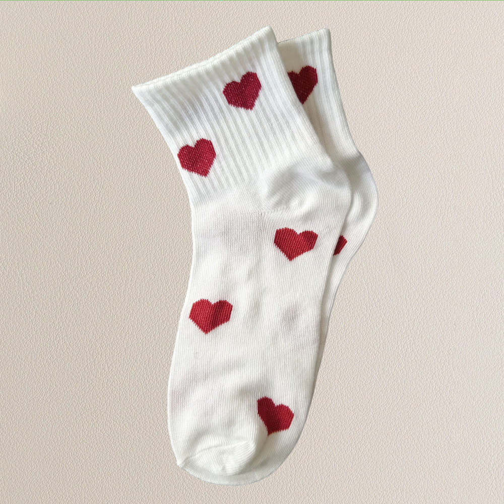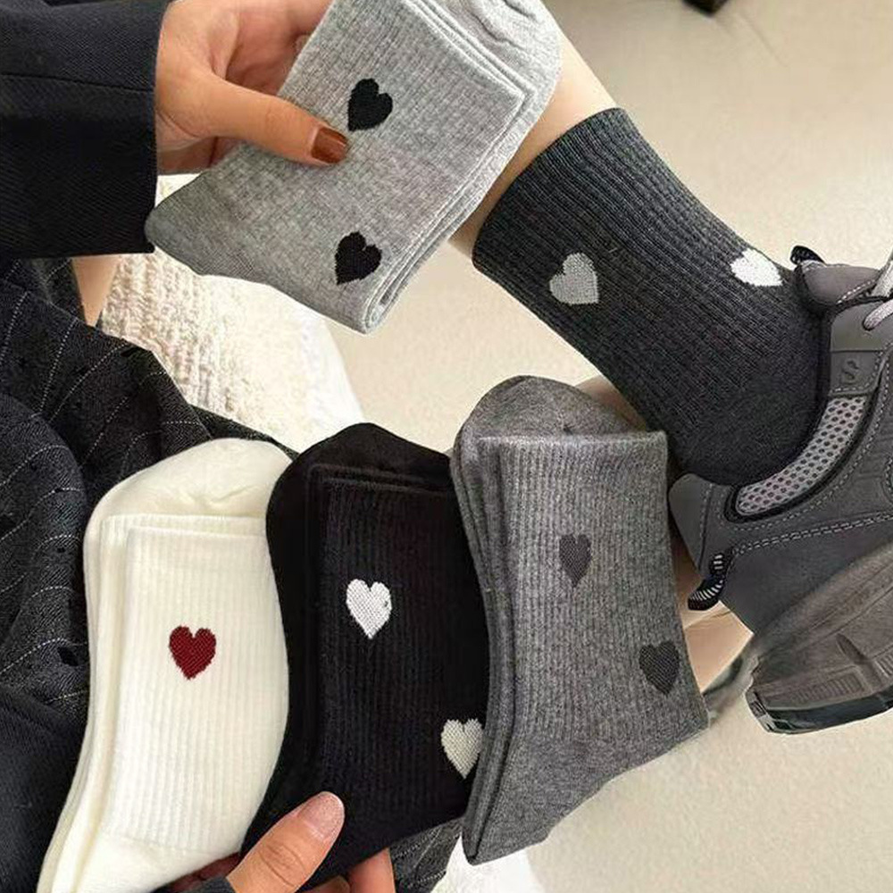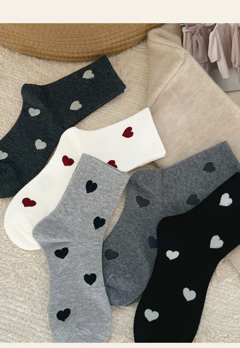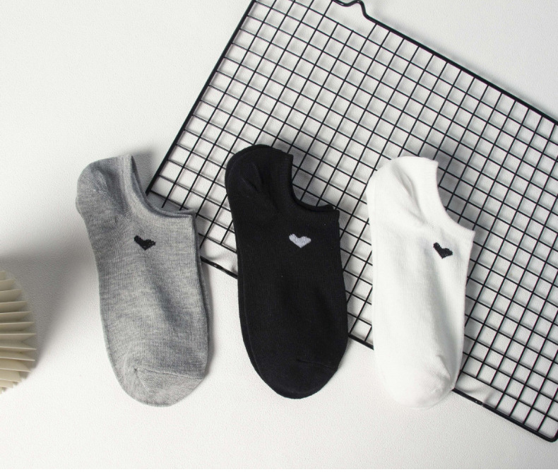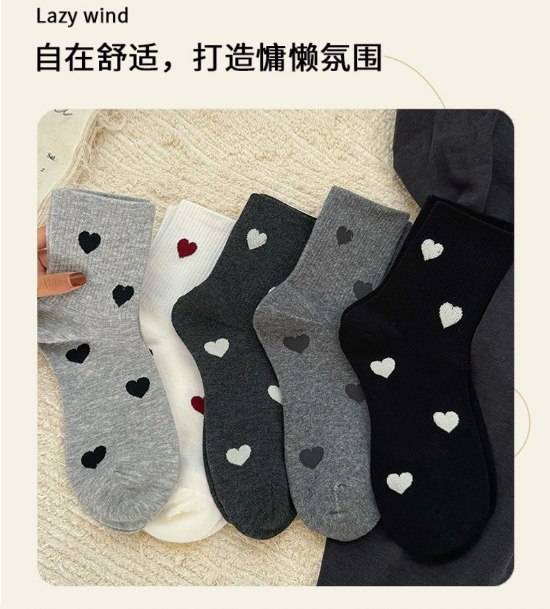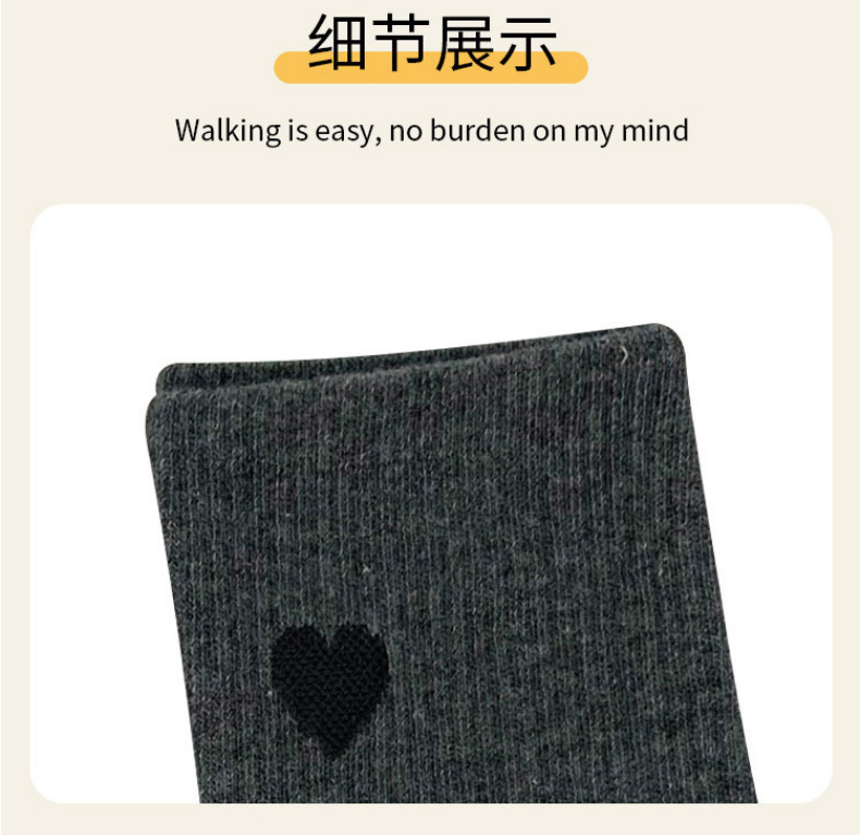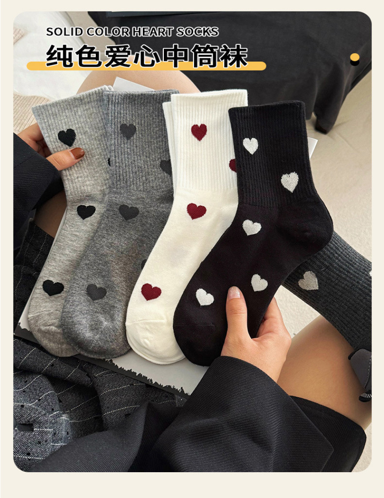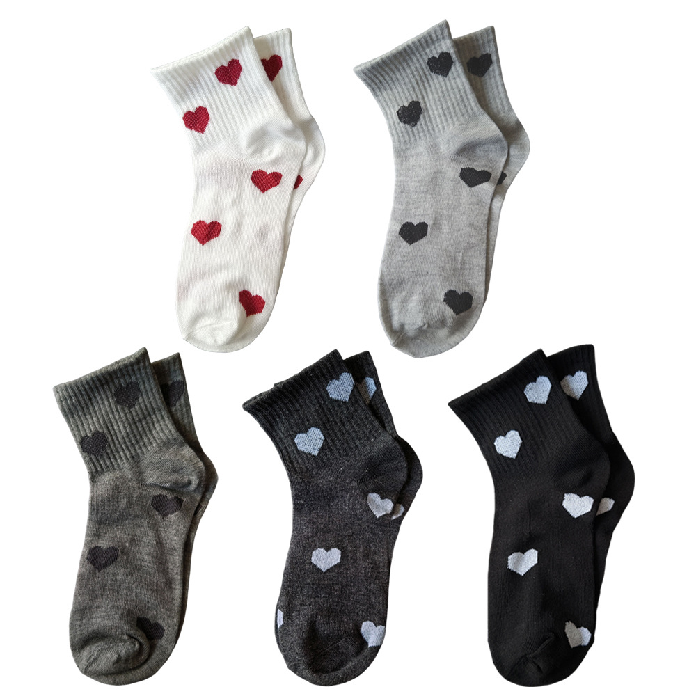 爱心中筒袜子女士批发春夏季学院风纯色运动袜透气船袜长袜诸暨袜